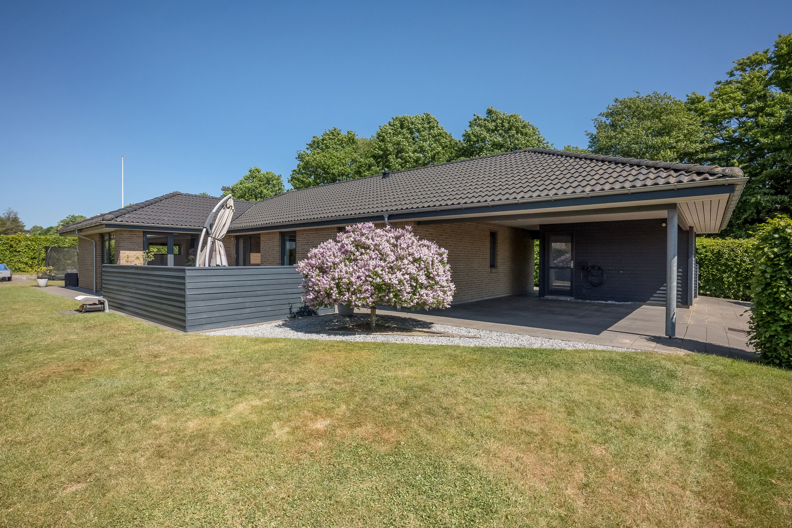 Moderne vinkelbygget villa i attraktivt kvarter - solrig terrasse og flot orangeri