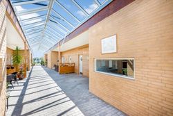 Boligen er praktisk indrettet på ét plan og ligger som en del af en bygning med seks boliger. Her finder du et skønt fællesareal i form af en overdækket arkade, der indbyder til hyggelige stunder med naboerne. Derudover har du brugsret til egen carport, hvilket gør hverdagen nemmere.