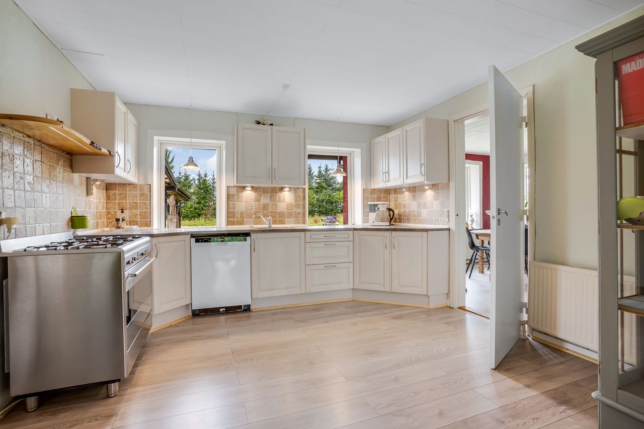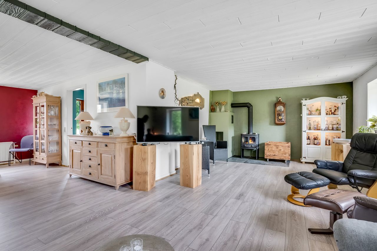 Velkommen til denne landlige ejendom, der kombinerer livet på landet med moderne bekvemmeligheder med det bynære. Villaen, oprindeligt bygget i 1909, strækker sig over et imponerende boligareal på 269 kvadratmeter. Beliggende på en stor grund på knap fire hektar, tilbyder ejendommen ubegrænsede muligheder for dem, der drømmer om at bo tæt på naturen uden at give afkald på byens bekvemmeligheder.