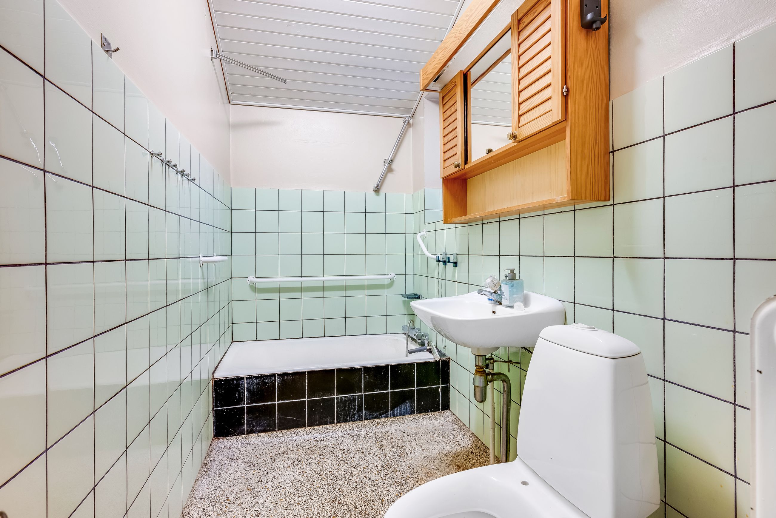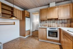 Køkkenet er et ældre spisekøkken, der tilbyder masser af plads til madlavning og samvær omkring spisebordet. Badeværelset er udstyret med karbad, hvilket giver mulighed for afslapning efter en lang dag. Flere rum i huset prydes af flotte parketgulve, som tilfører varme og elegance.