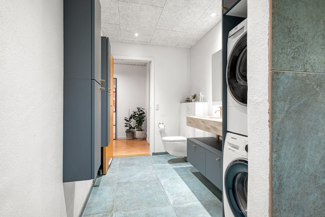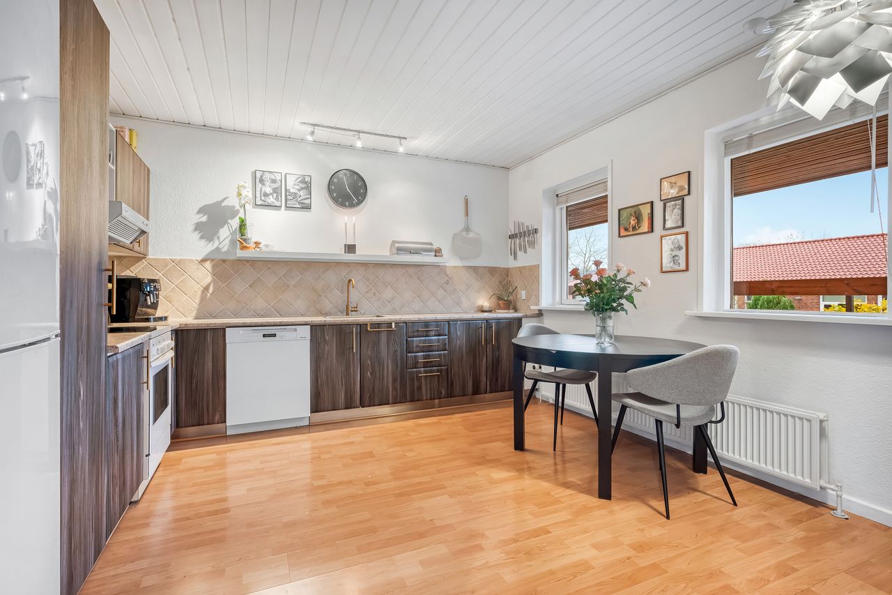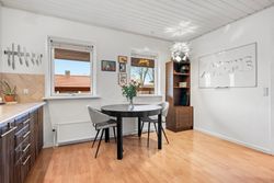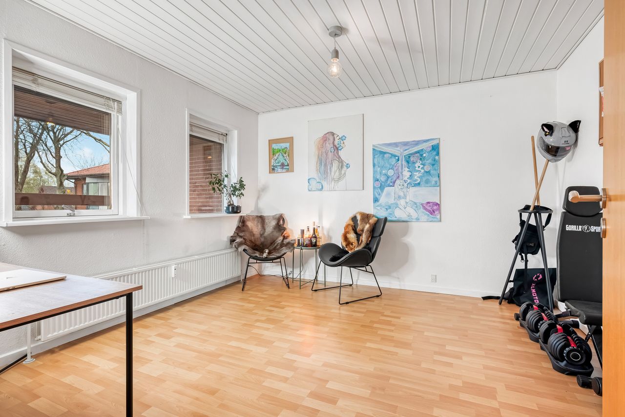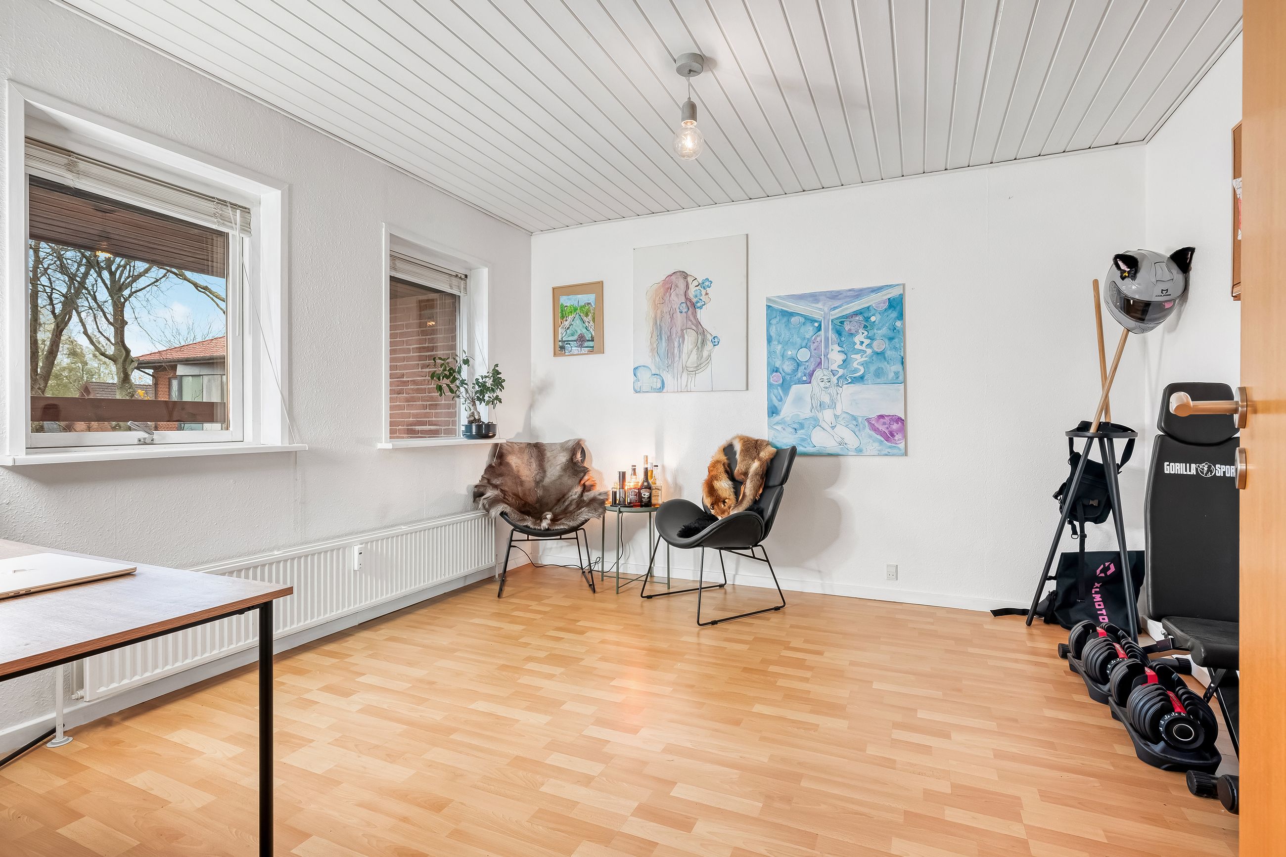 Ejendommen inkluderer også egen carport samt eget depotrum i kælderen for ekstra opbevaringsplads. Som beboer bliver du en del af en velfungerende ejerforening med adgang til fællesarealer såsom have og p-pladser – perfekt for dem der ønsker at bo roligt men stadig tæt på alle nødvendigheder.