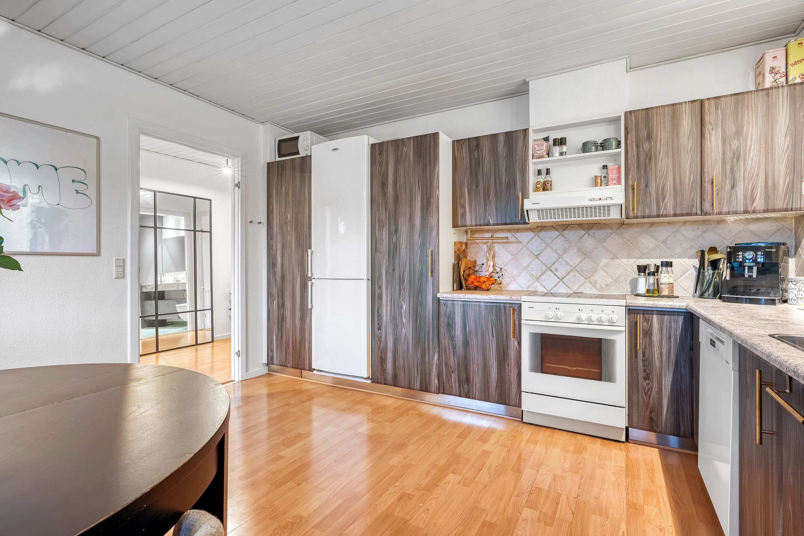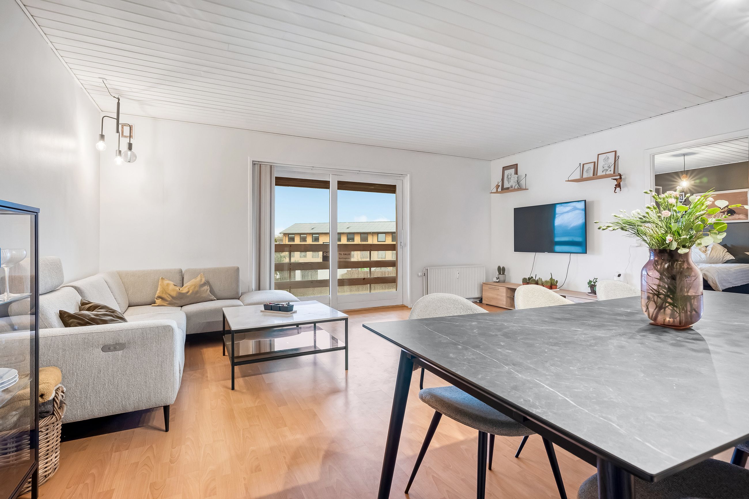 Når du træder ind gennem entréen, bliver du mødt af en varm atmosfære, der straks får dig til at føle dig hjemme. Lejligheden byder på et dejligt værelse samt et køkken med spiseplads udstyret med pænt inventar, som indbyder til hyggelige middage. Det nyrenoverede badeværelse er en sand perle med topmoderne design og gulvvarme, der sikrer komfort året rundt.