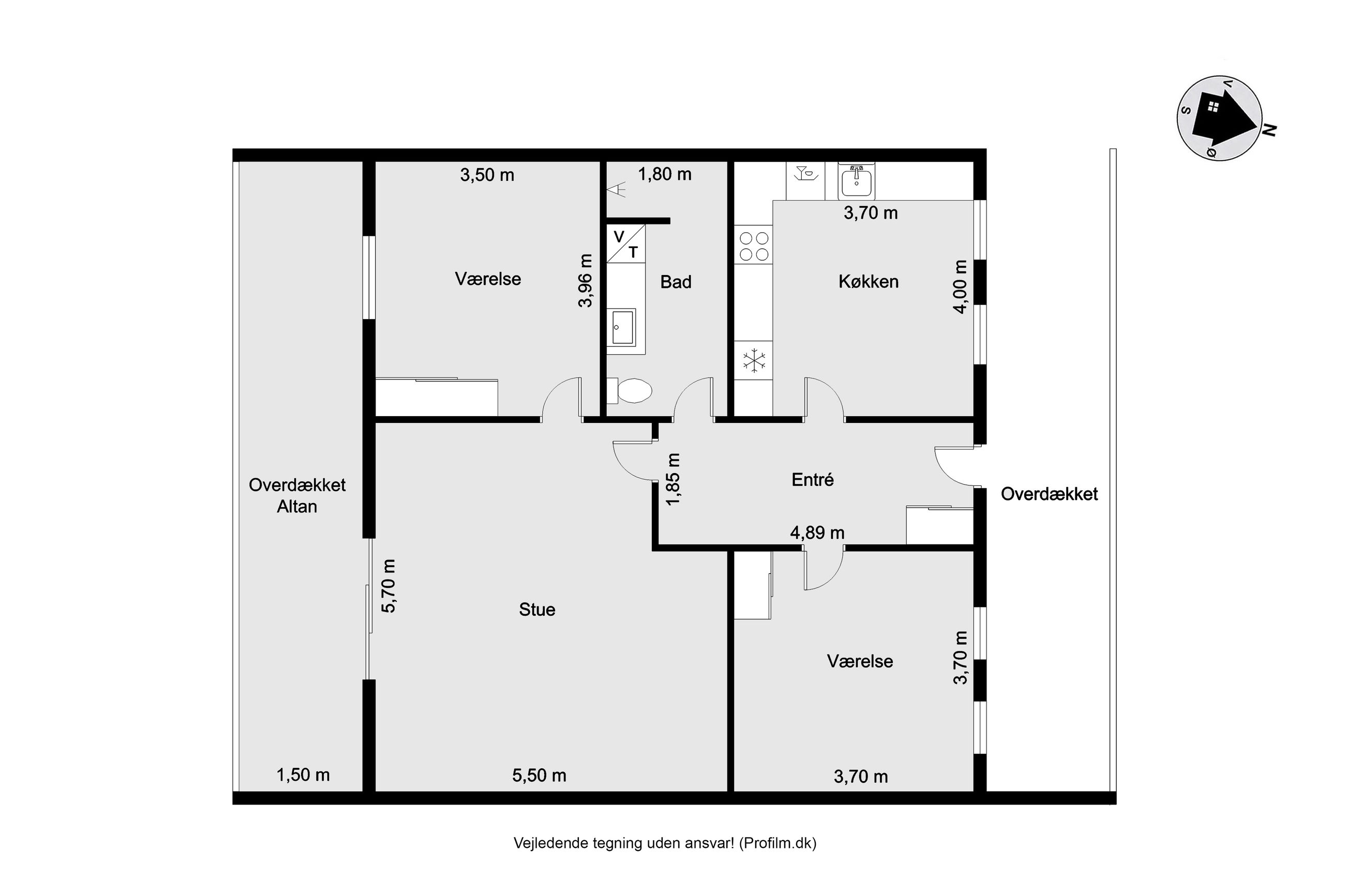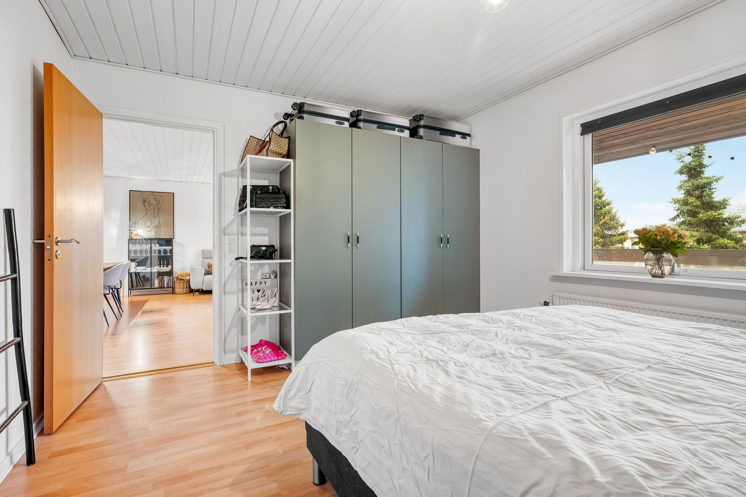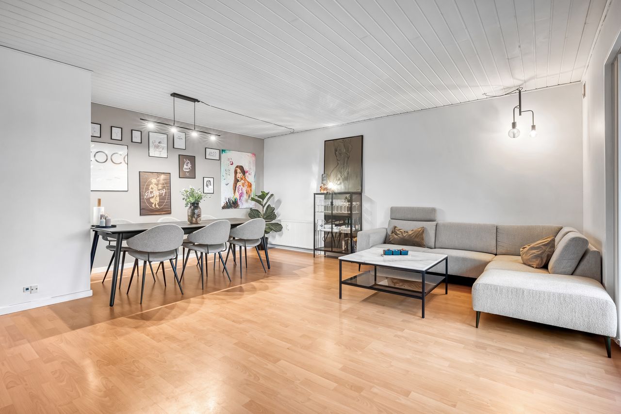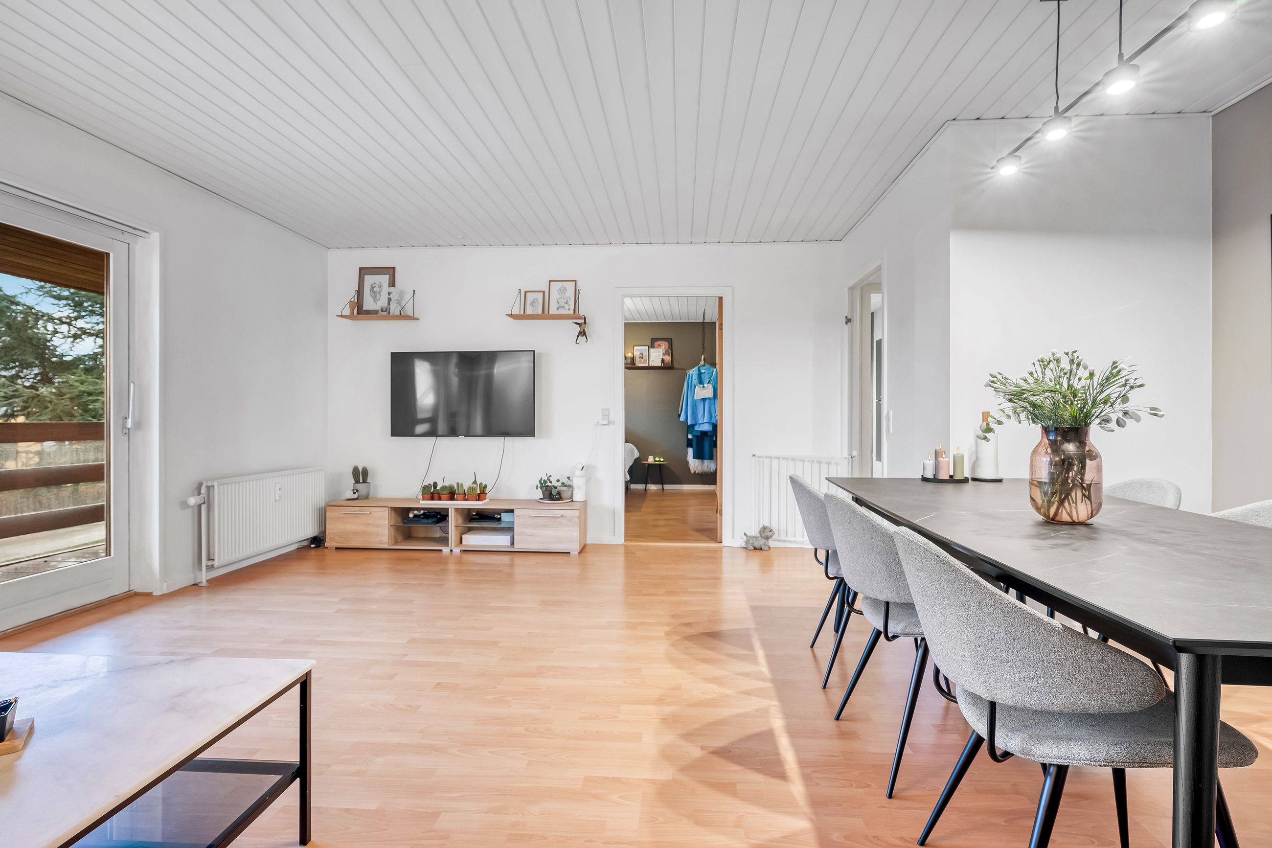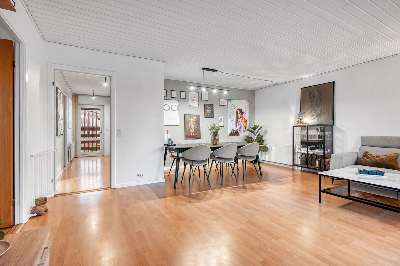 Den store stue er perfekt til afslapning og samvær med plads til både spiseafdeling og opholdsafdeling. Herfra har du direkte adgang til en stor sydvendt overdækket altan, hvor du kan nyde solens stråler fra morgen til aften eller slappe af under den overdækkede del uanset vejret.