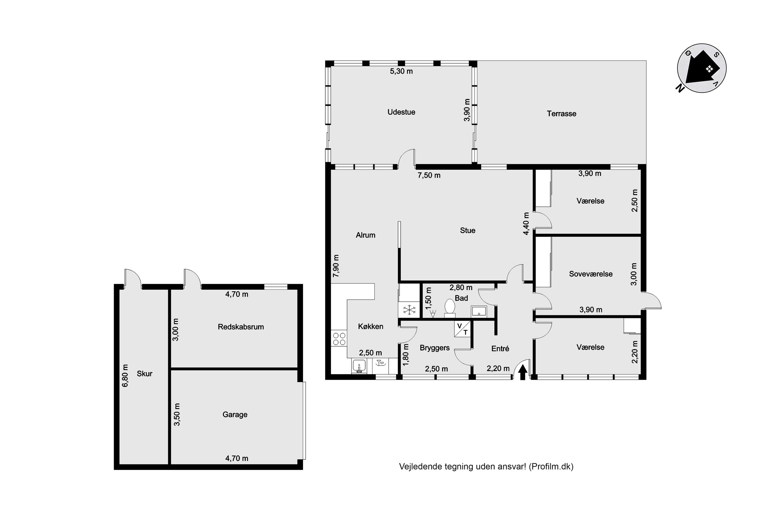 For gør-det-selv manden tilbyder ejendommen også en stor garage på hele 49 kvadratmeter, opført så sent som i 2020. Her er der rigelig plads til både bil og hobbyprojekter.