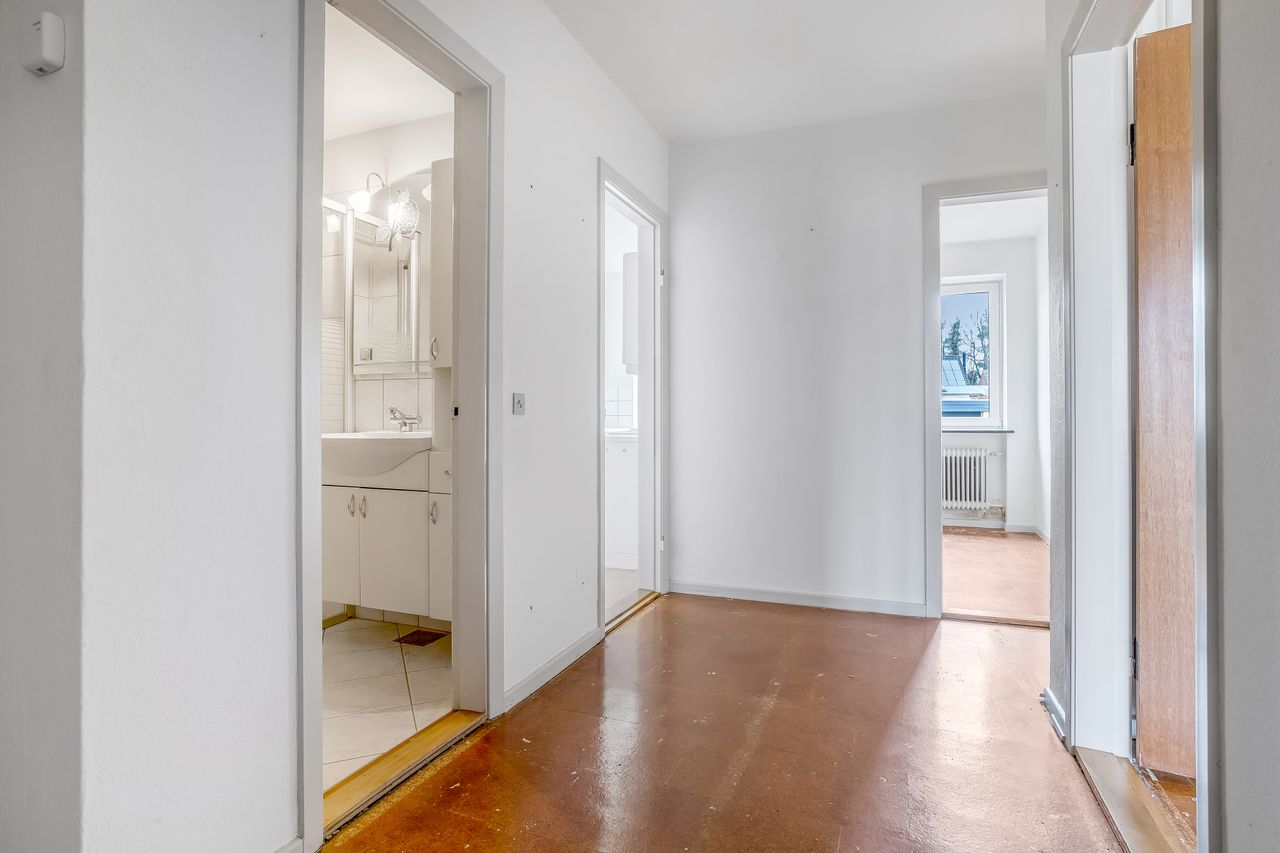 Indretningen er god med mulighed for 3 soverum. Stor stue, lyst køkken samt pænt badeværelse.
