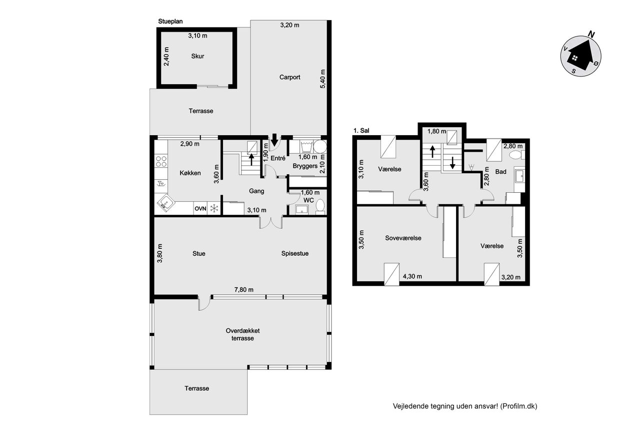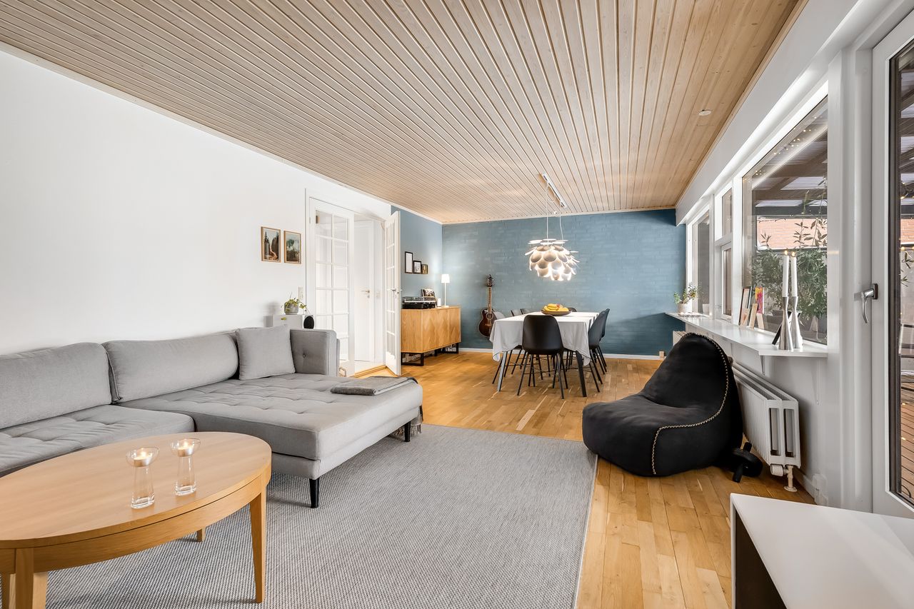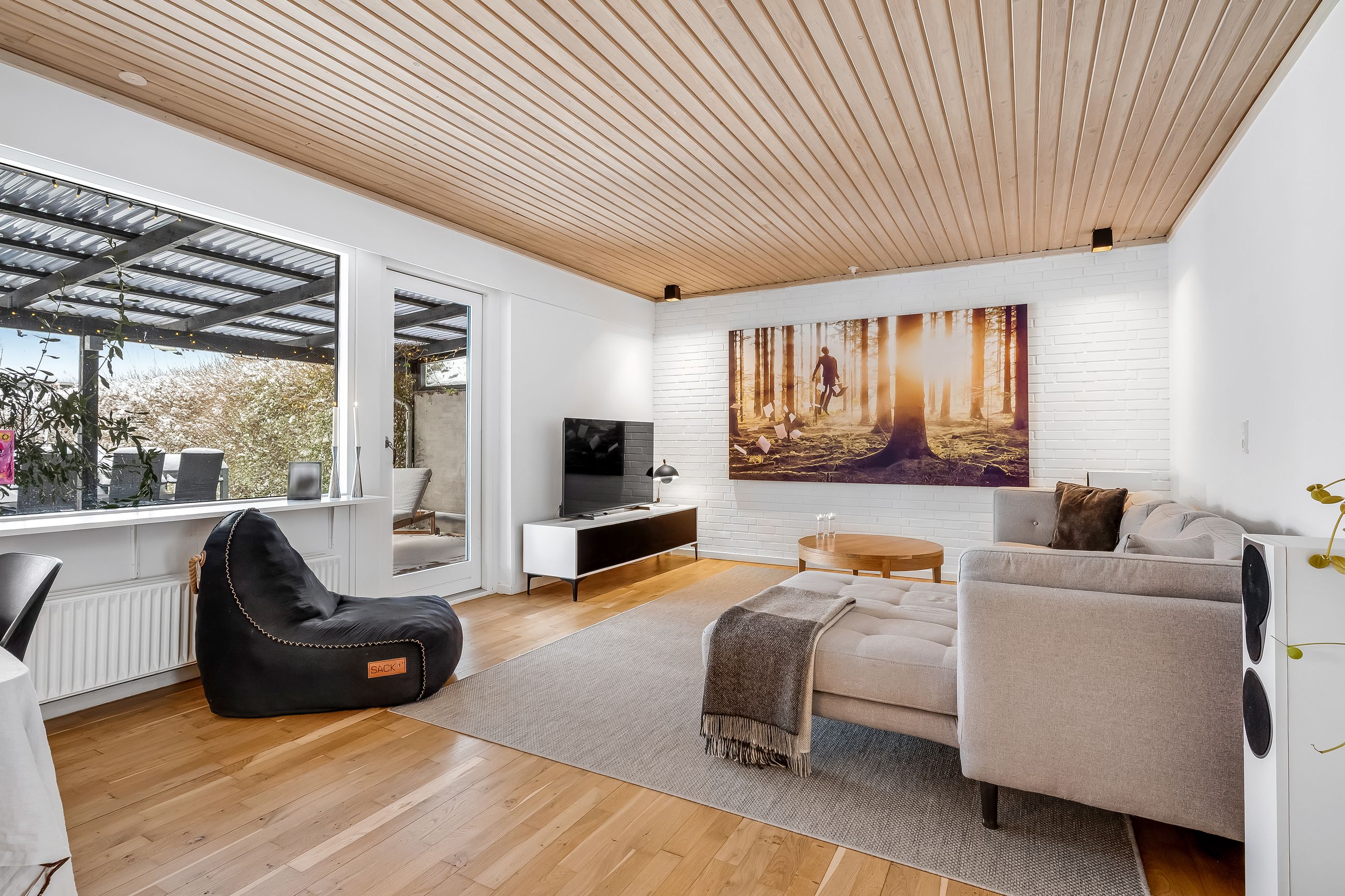 Stueetagen præsenterer et rummeligt spisekøkken, hvor madlavning og samvær går hånd i hånd. Videre ind til den lyse opholdsstue, som har plads til både spisebord og sofaafdeling. Stuen åbner op mod en overdækket terrasse, hvor du kan nyde de lune sommeraftener eller betragte børnene lege i den sydvendte have.