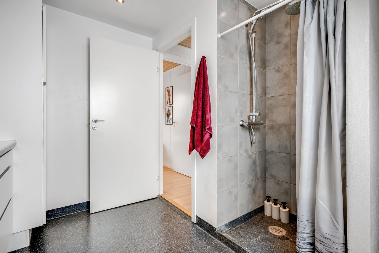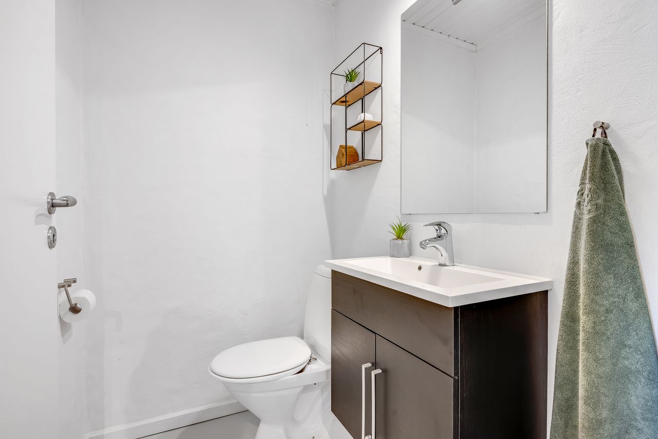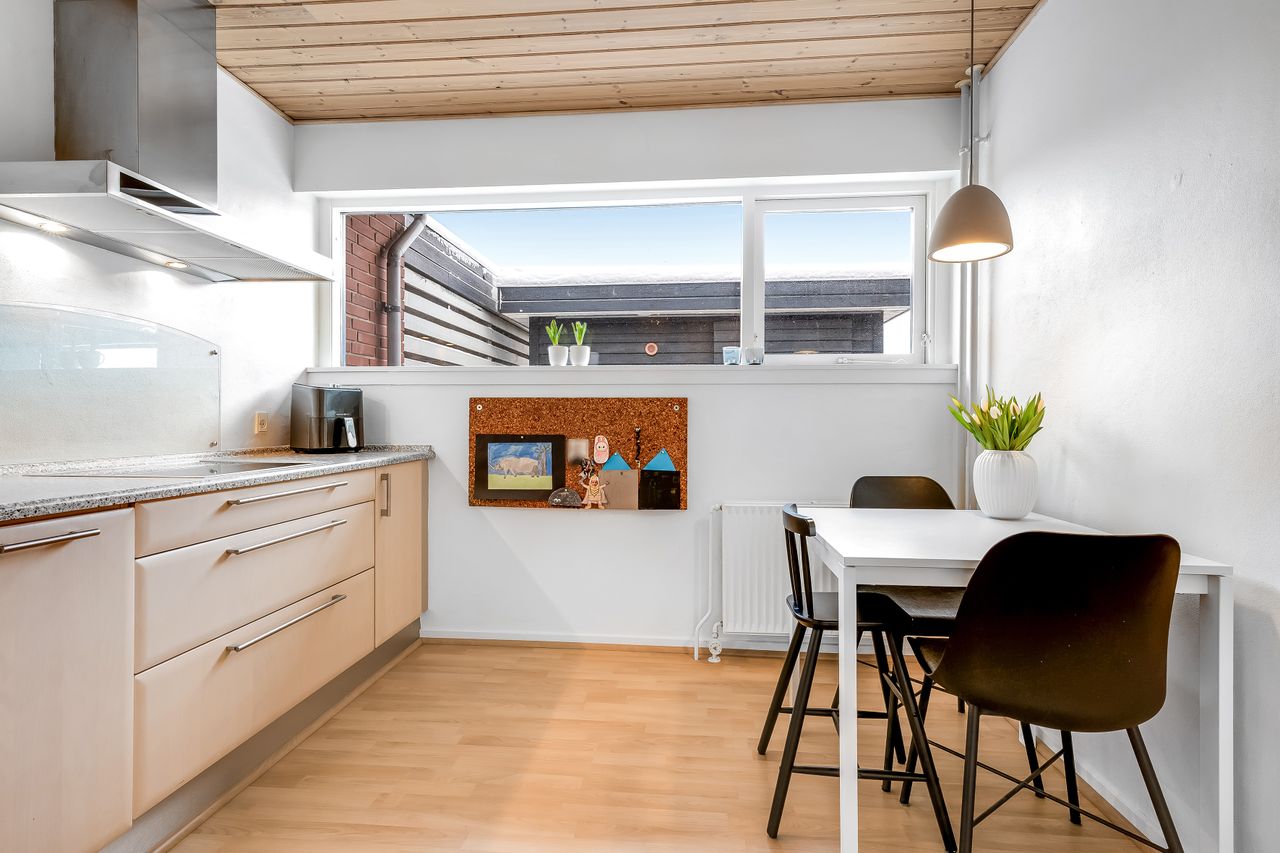 Velkommen til dette indbydende enderækkehus beliggende i det eftertragtede Toftekvarteret i Lind. Denne bolig fra 1977 byder på et boligareal på 126 kvadratmeter, der er blevet nænsomt moderniseret for at imødekomme nutidens krav til komfort og stil. Når du træder ind gennem hoveddøren, mødes du af et praktisk bryggers, der giver adgang til en fordelingsgang med trappe til første sal.