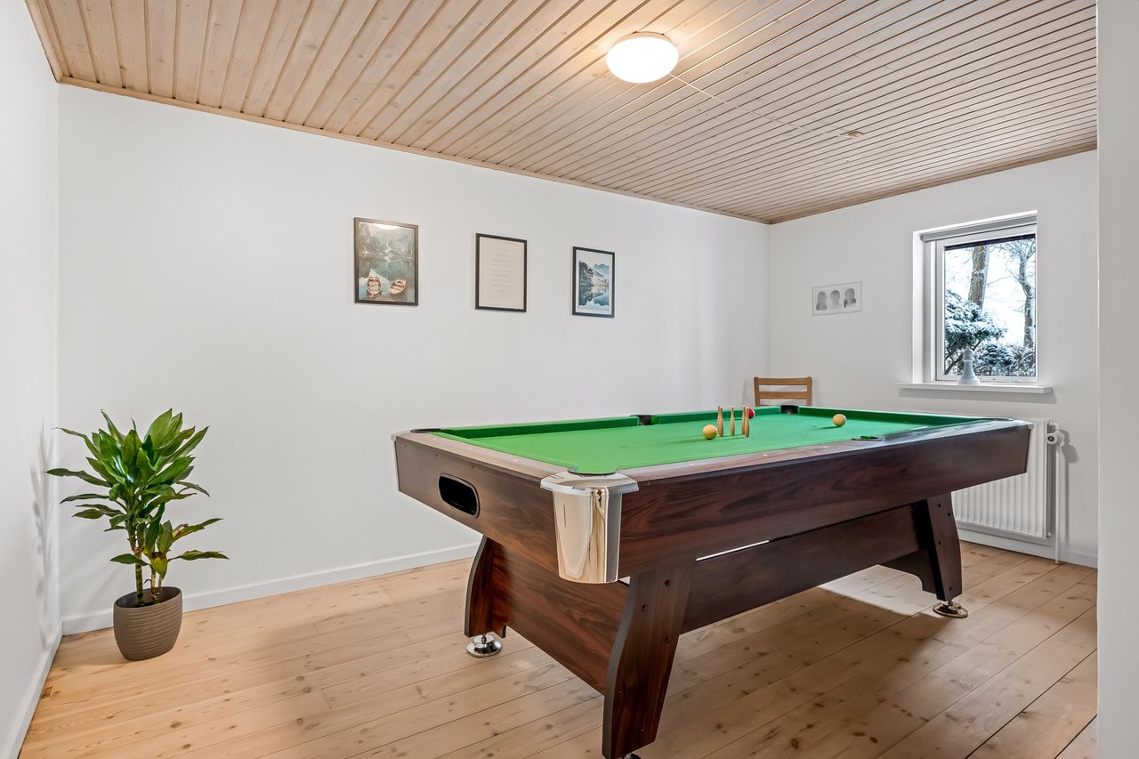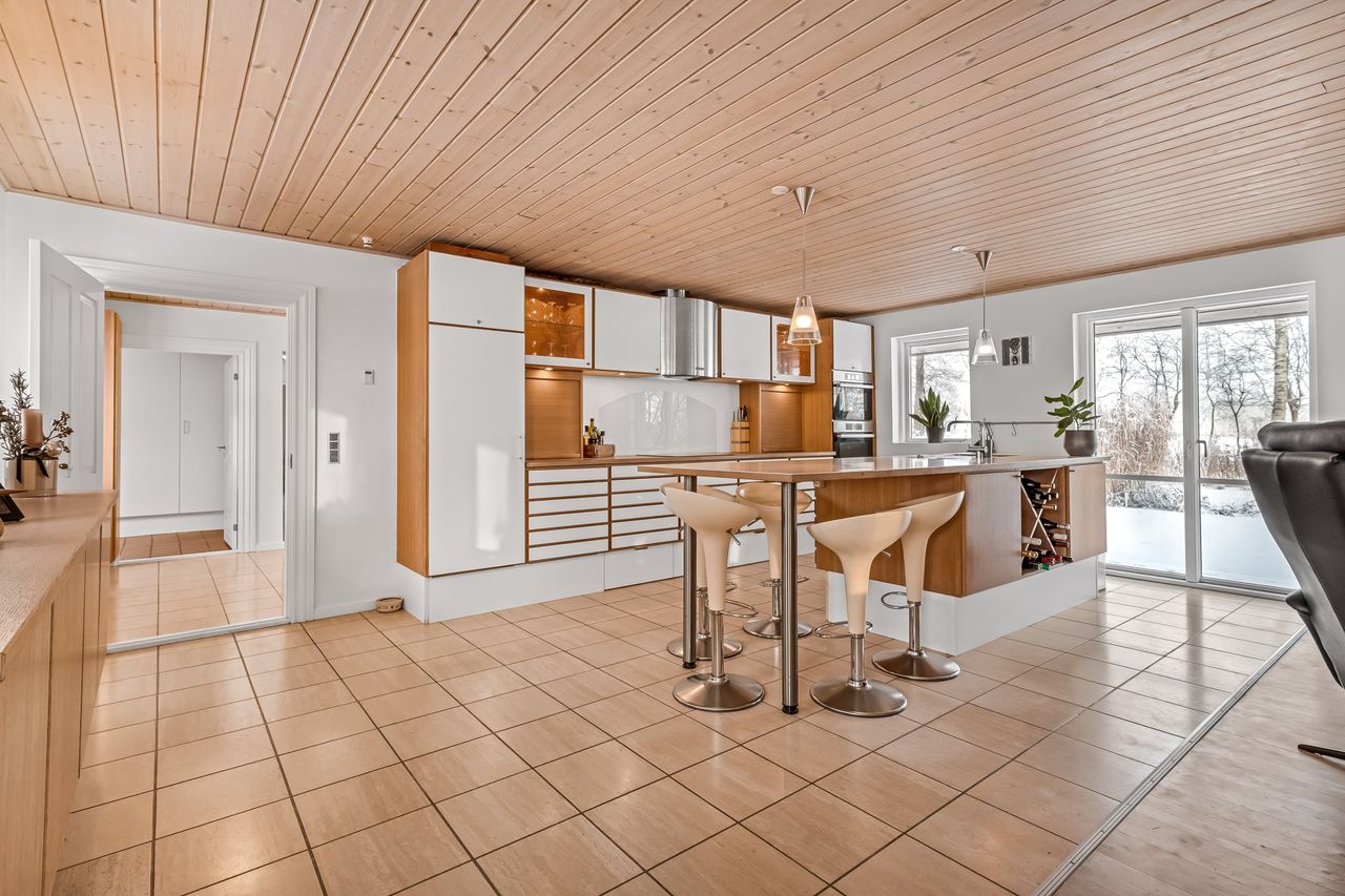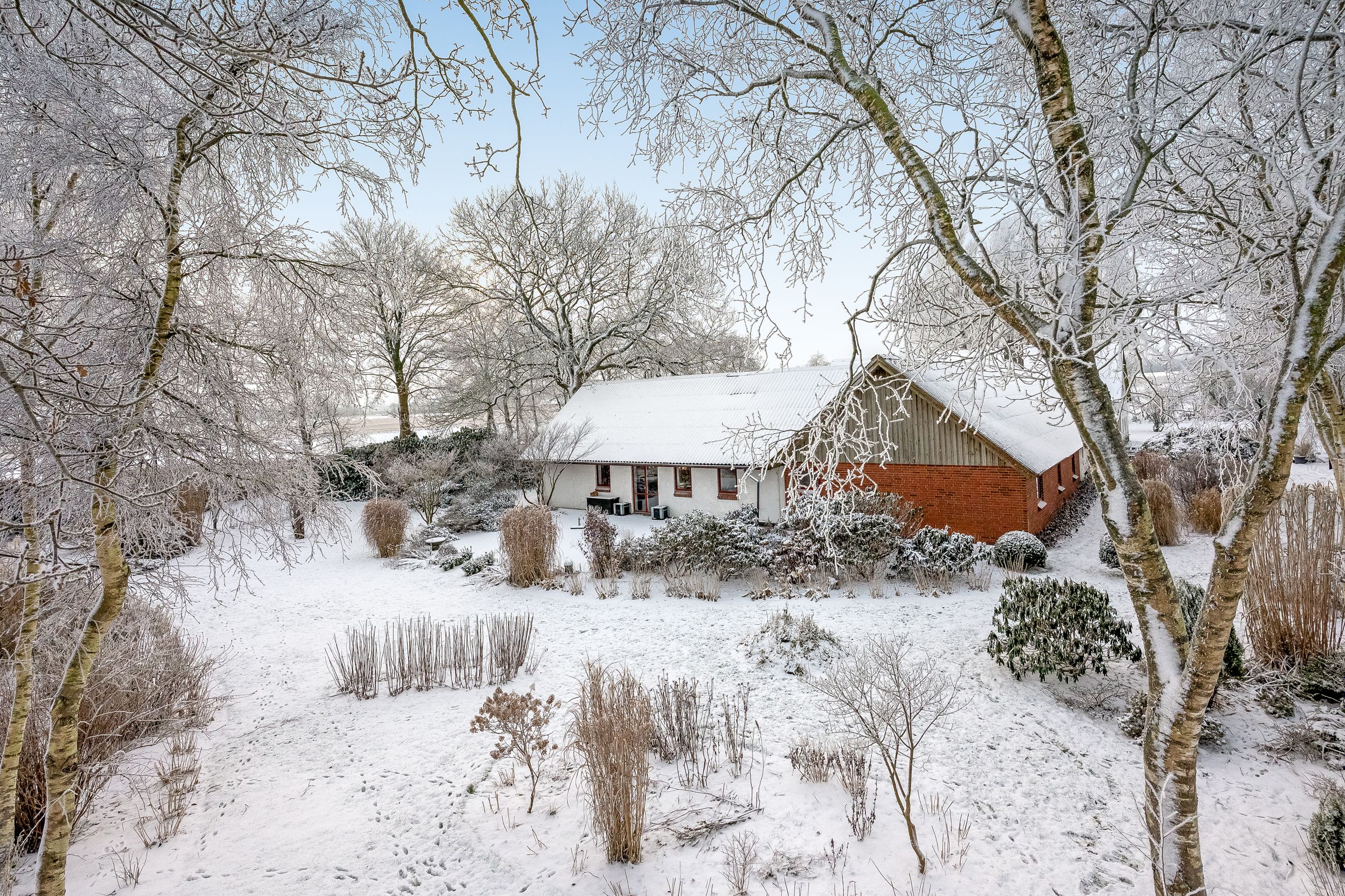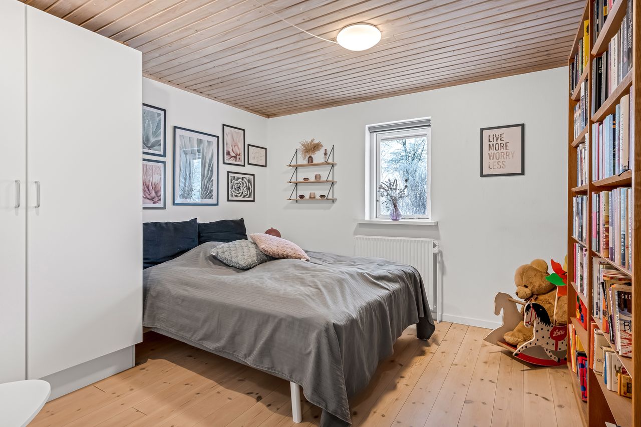 Udendørs venter en smukt anlagt have med flot beplantning, der omkranser ejendommen som en grøn oase. Beliggende få minutters kørsel sydvest for Studsgård og blot ti minutter fra Herning, får du her landlig idyl uden at gå på kompromis med byens bekvemmeligheder. Ejendommens placering trukket tilbage fra vejen sikrer fredfyldte omgivelser og udsigt over de åbne marker – ideelt for dem der søger roen i naturen.