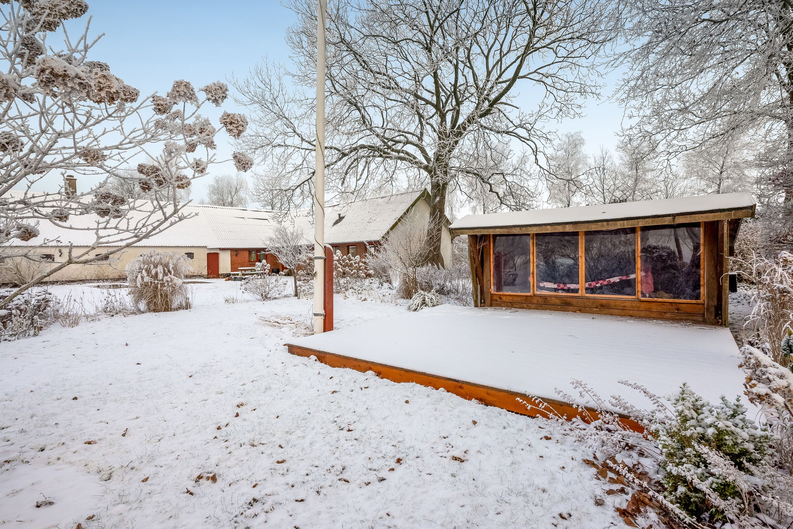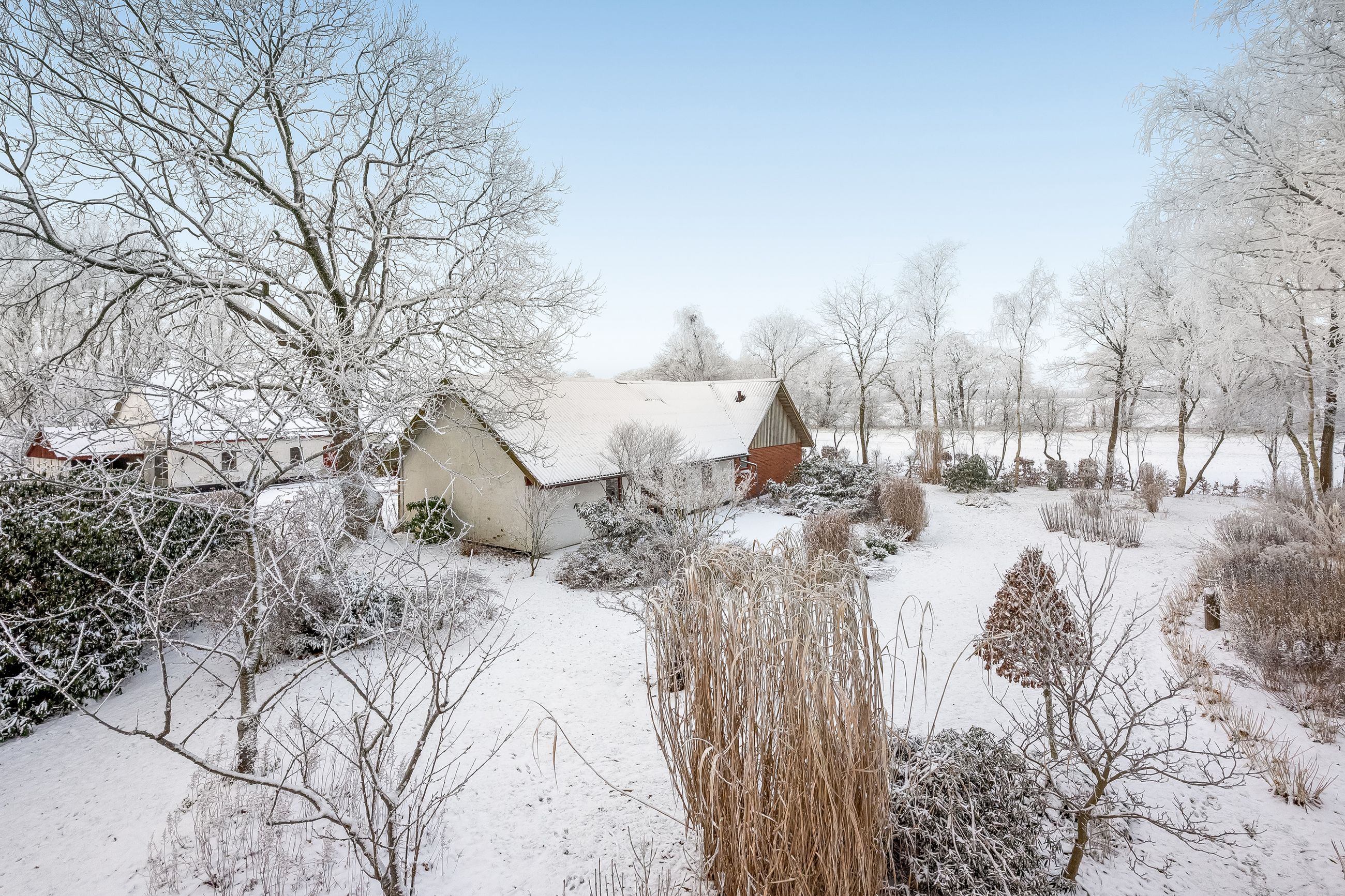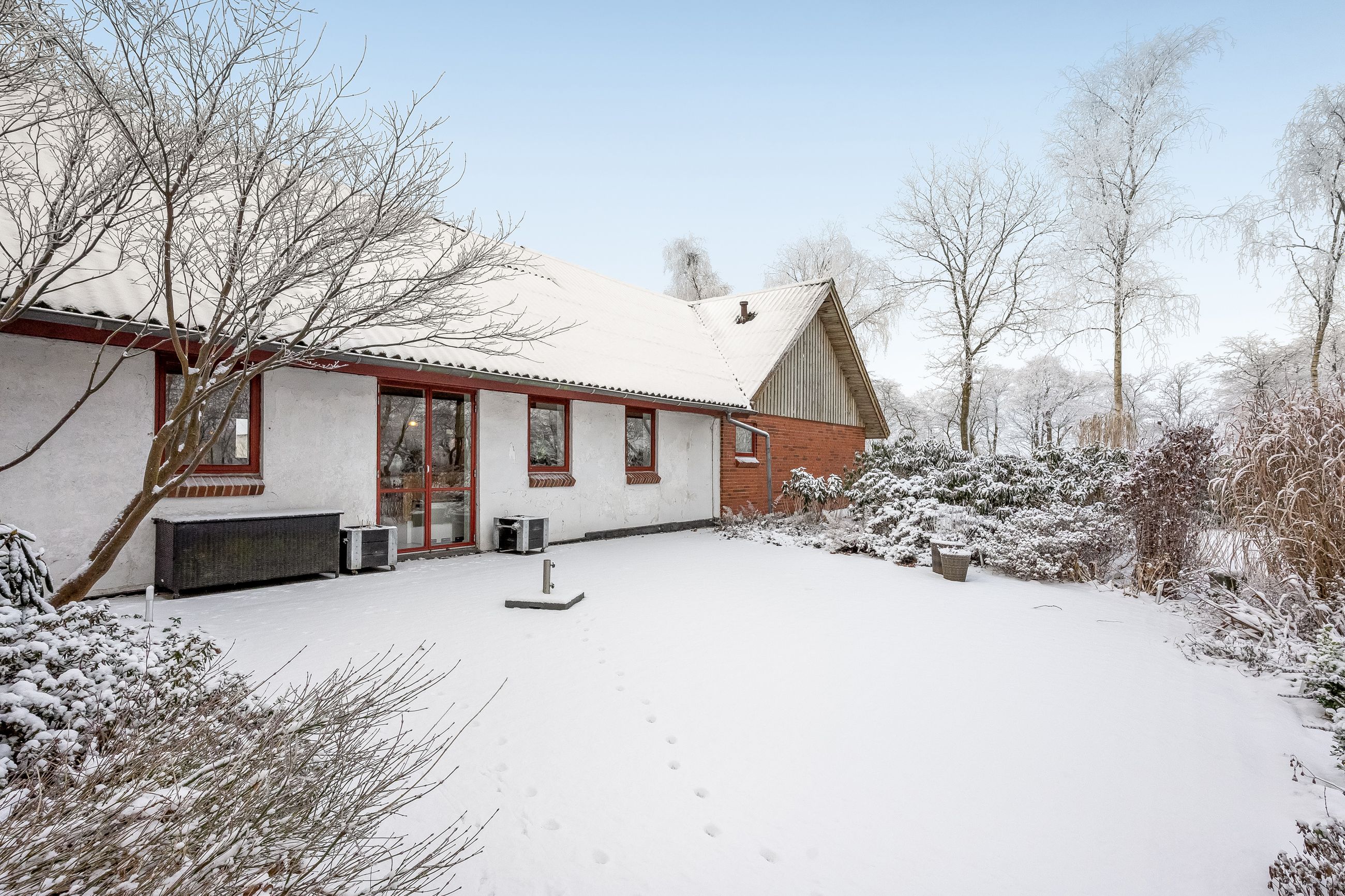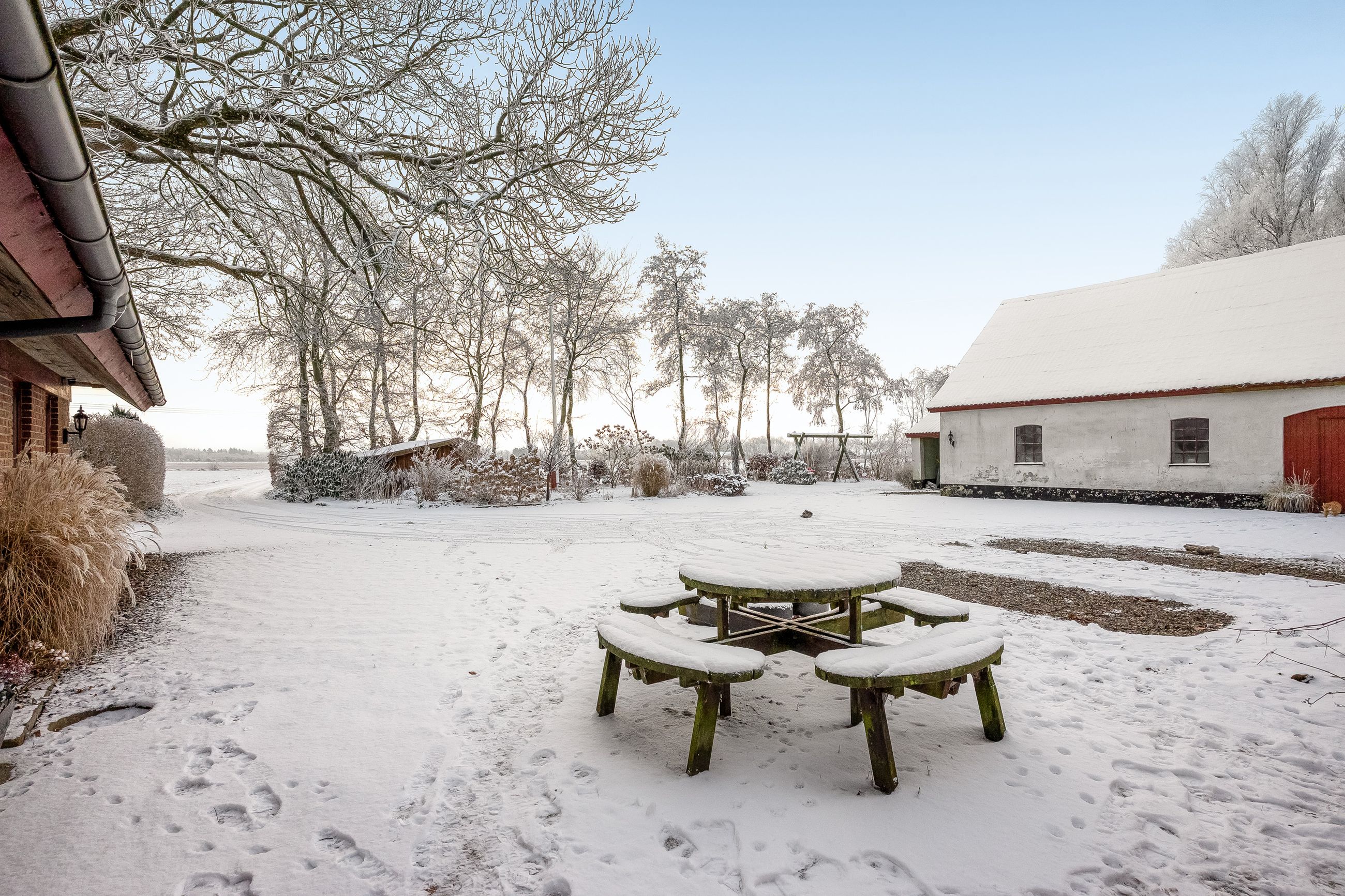 Udendørs venter en smukt anlagt have med flot beplantning, der omkranser ejendommen som en grøn oase. Beliggende få minutters kørsel sydvest for Studsgård og blot ti minutter fra Herning, får du her landlig idyl uden at gå på kompromis med byens bekvemmeligheder. Ejendommens placering trukket tilbage fra vejen sikrer fredfyldte omgivelser og udsigt over de åbne marker – ideelt for dem der søger roen i naturen.
