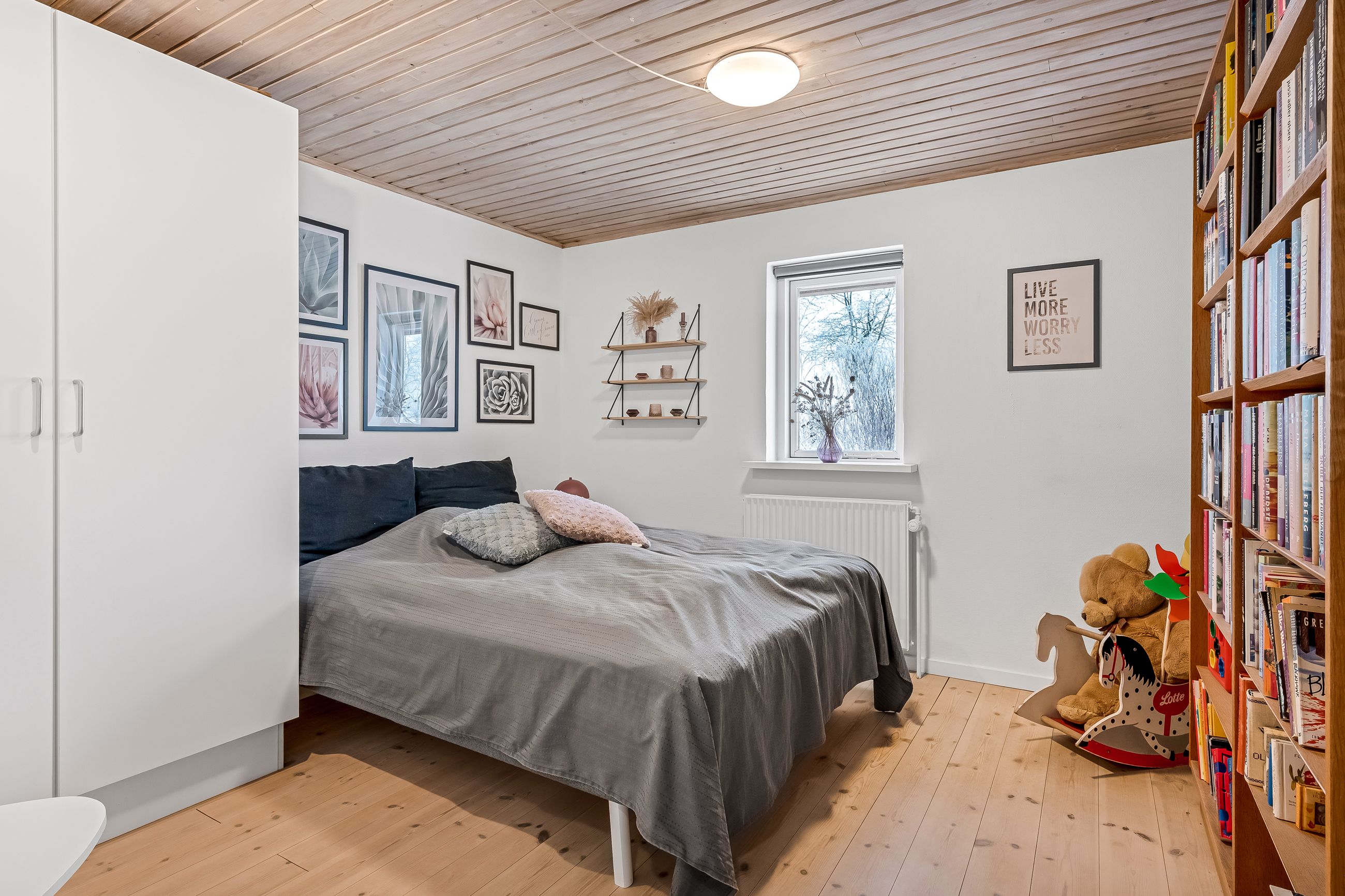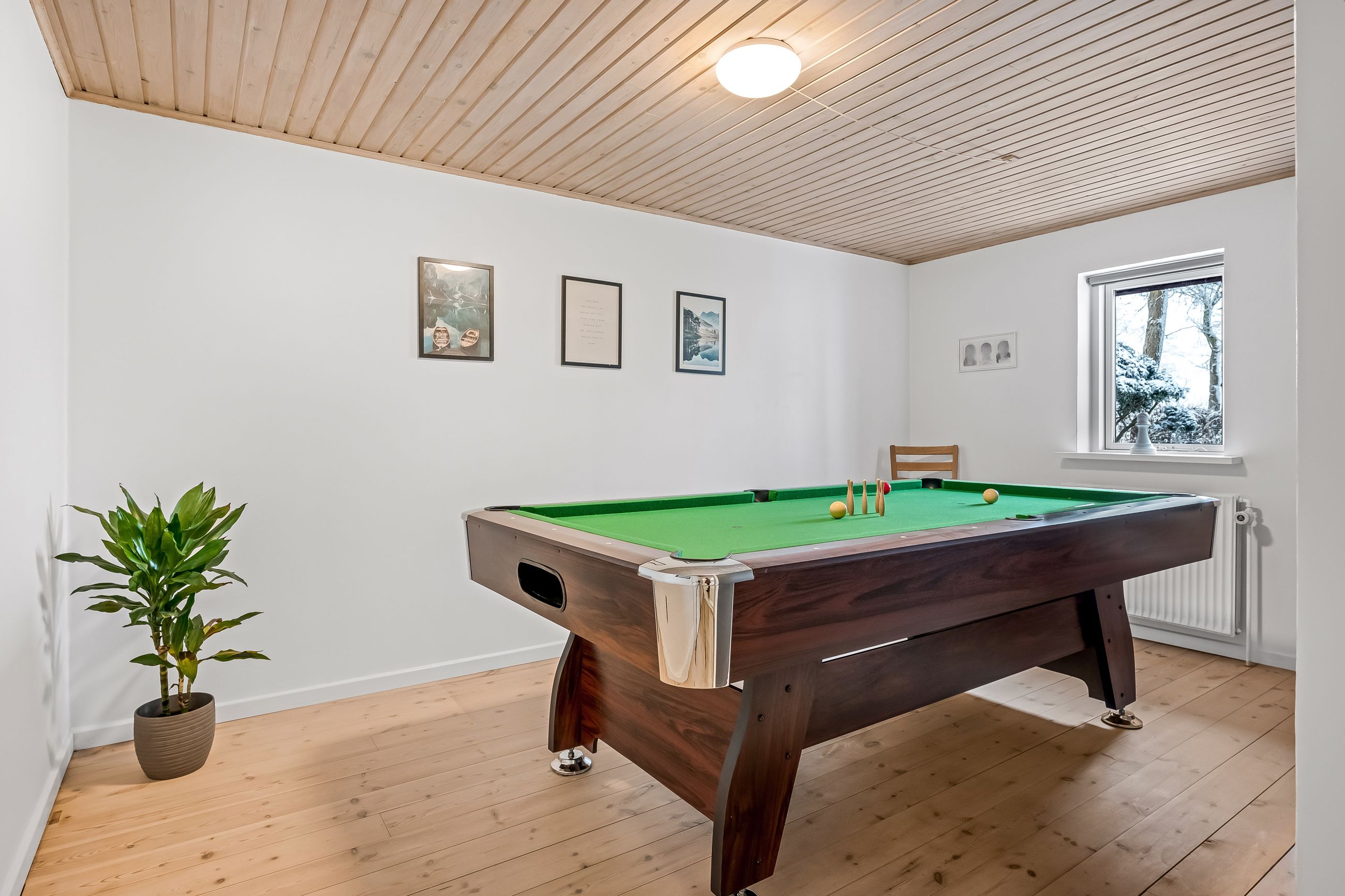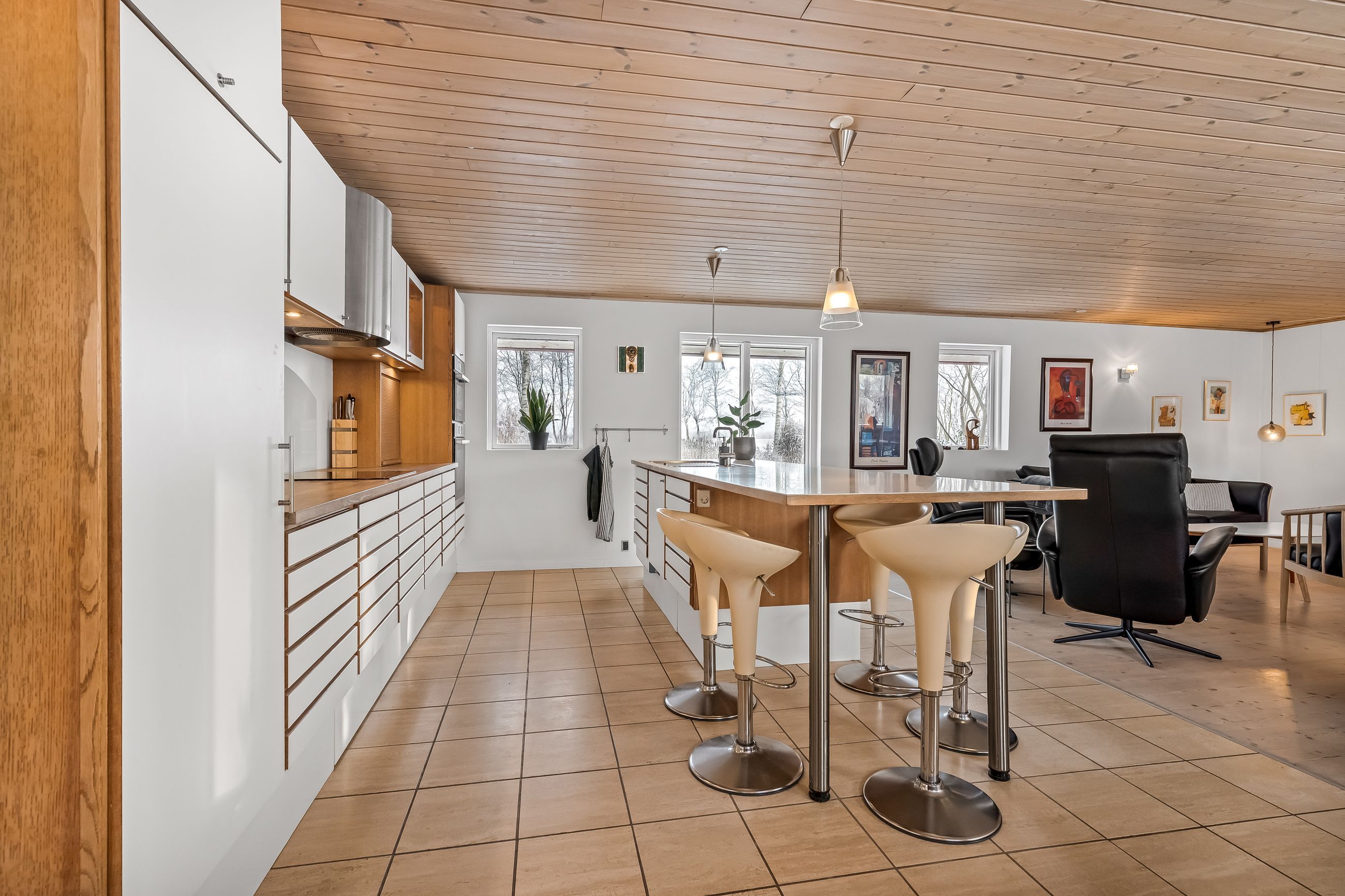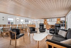 Indenfor byder ejendommen på et praktisk bryggers og en indbydende entre, der leder videre til det store lyse køkken/alrum/stue. Dette område er hjertet af hjemmet med sit gode lysindfald og åbne forbindelse mellem madlavning og ophold. Derudover rummer huset tre rummelige værelser samt et soveværelse, perfekt for familien eller som kontorplads. Badeværelset er funktionelt indrettet med bruseniche.