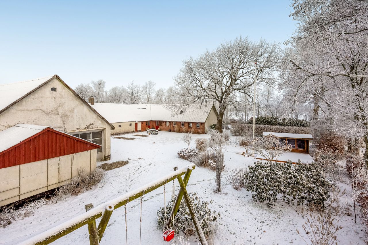 Velkommen til denne charmerende nedlagte 3-længede landejendom, der emmer af historie og muligheder. Med et boligareal på 152 kvadratmeter, tilbyder denne ejendom både sjæl og rum til at skabe dit drømmehjem. Selvom udbygningerne kræver en kærlig hånd, er stuehuset blevet delvist renoveret indvendigt omkring år 2004, hvilket inkluderede et moderne køkken samt ny gulvkonstruktion i det åbne køkken/alrum/stue-område med komfortabel gulvvarme.