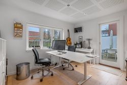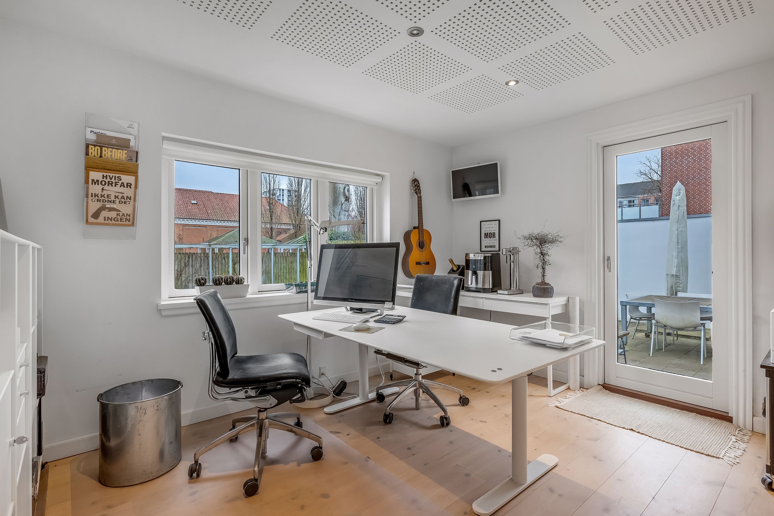 Stueplanet byder på et indbydende køkken/alrum med direkte udgang til en solrig terrasse og en lille hyggelig have. Her kan du nyde morgenkaffen eller holde sommerens grillfester. Det store kontor giver mulighed for hjemmearbejde eller som kreativt rum, mens den rummelige stue inviterer til afslapning med familie og venner. Et praktisk toilet findes også her, hvor der er mulighed for at installere bad.