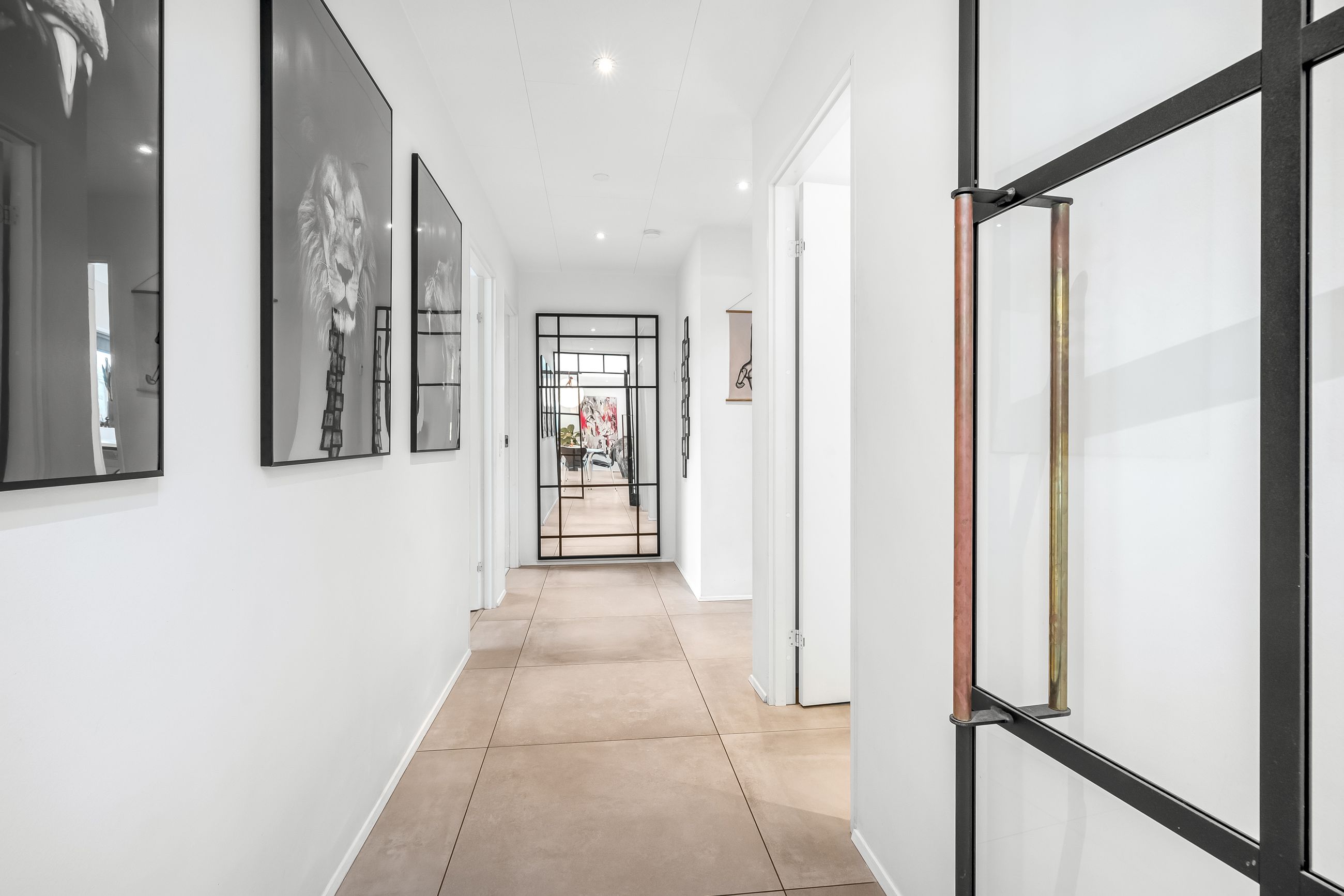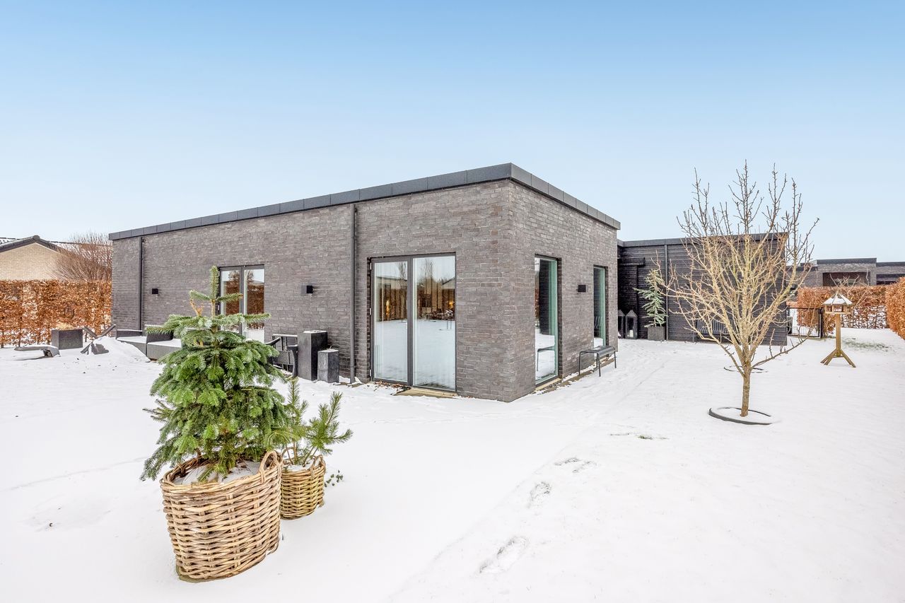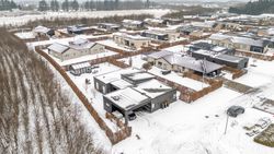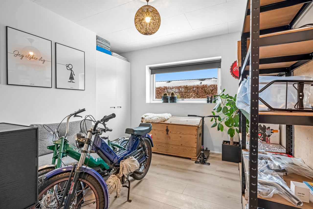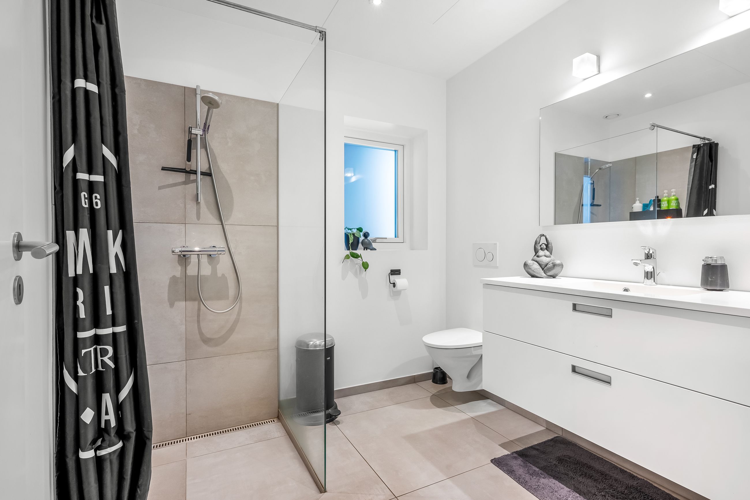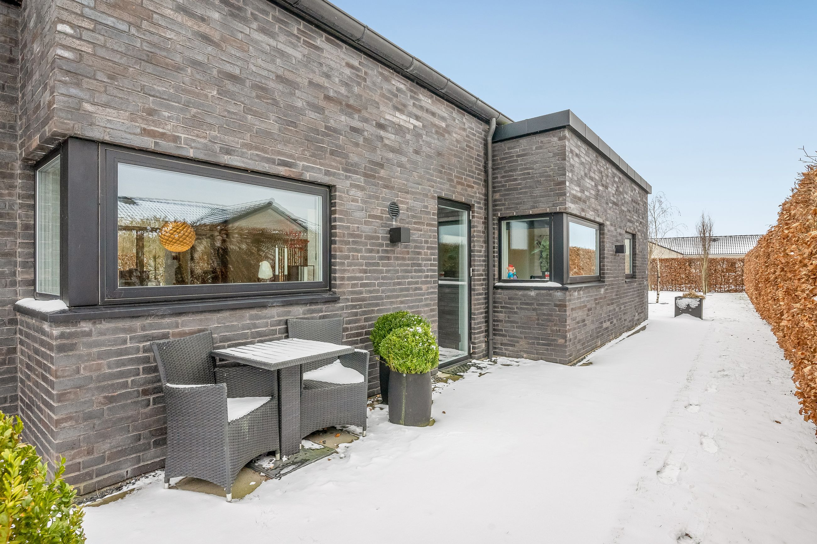 Villaen byder på 4 gode soverum fordelt på separate afdelinger. Det praktiske bryggers har god plads til opbevaring og depotrum, mens det åbne køkken/alrum imponerer med højt til loftet og praktisk viktualierum samt direkte udgang til en stor sydvendt overdækket gårdhave. Overalt i boligen er der Rockfon lofter der sikrer den gode akustik i hjemmet. Alt dette skaber de perfekte rammer for hyggelige familiemiddage eller afslapning efter en lang dag.