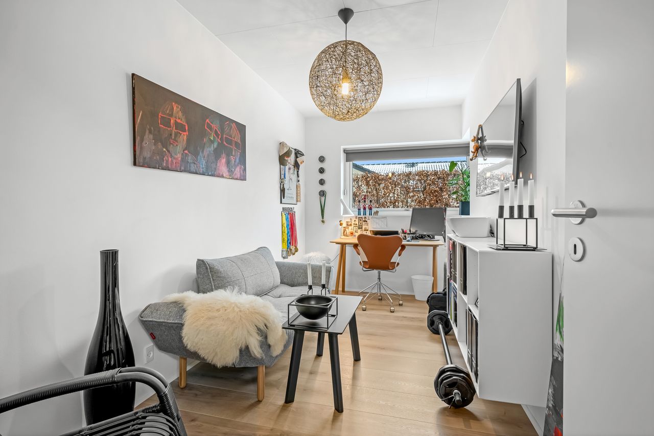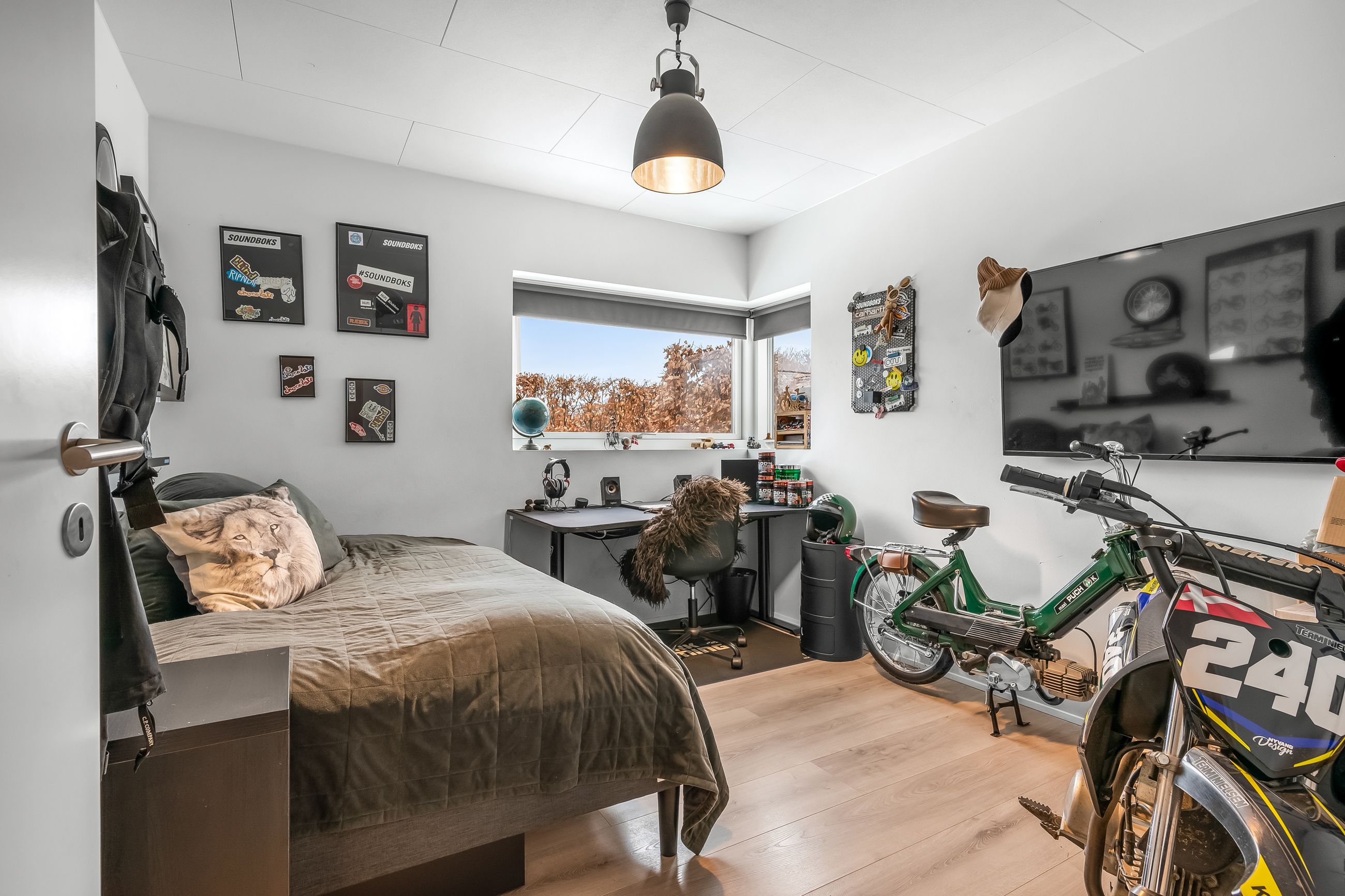 Den lyse stue ligger i åben forbindelse med alrummet, hvilket sikrer et dejligt flow gennem huset. Derudover findes et kontor eller ekstra værelse samt en forældreafdeling med walk-through closet og eget luksuriøst badeværelse – alt sammen designet for at give den ultimative komfort.