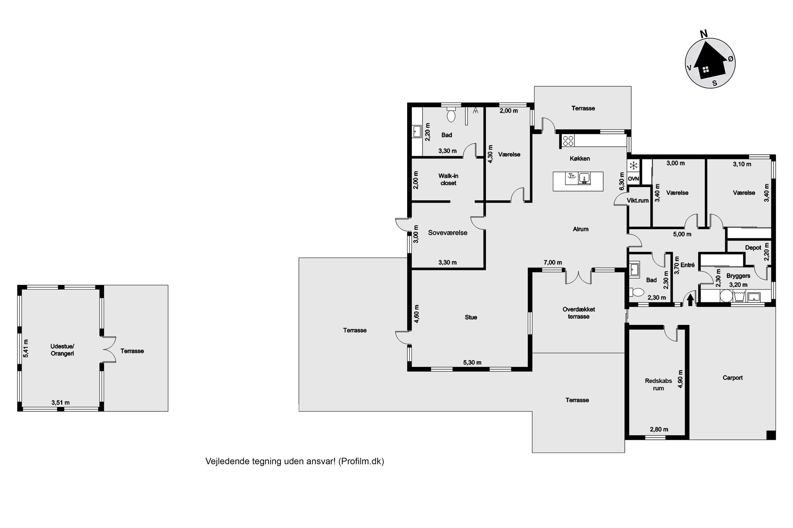 Et af husets absolutte højdepunkter er den 22 kvm. store flotte udestue, som kan benyttes året rundt. Her kan I nyde synet af den smukke syd- og vestvendte have, der er anlagt med græsplæne, prydtræer og flere gode terrasser mod både syd- øst og vest så solen altid kan nydes. Udestuen bliver hurtigt familiens favoritsted uanset årstid. Hertil kommer integreret dobbelt carport og isoleret depotrum/værksted på i alt 52 kvm.