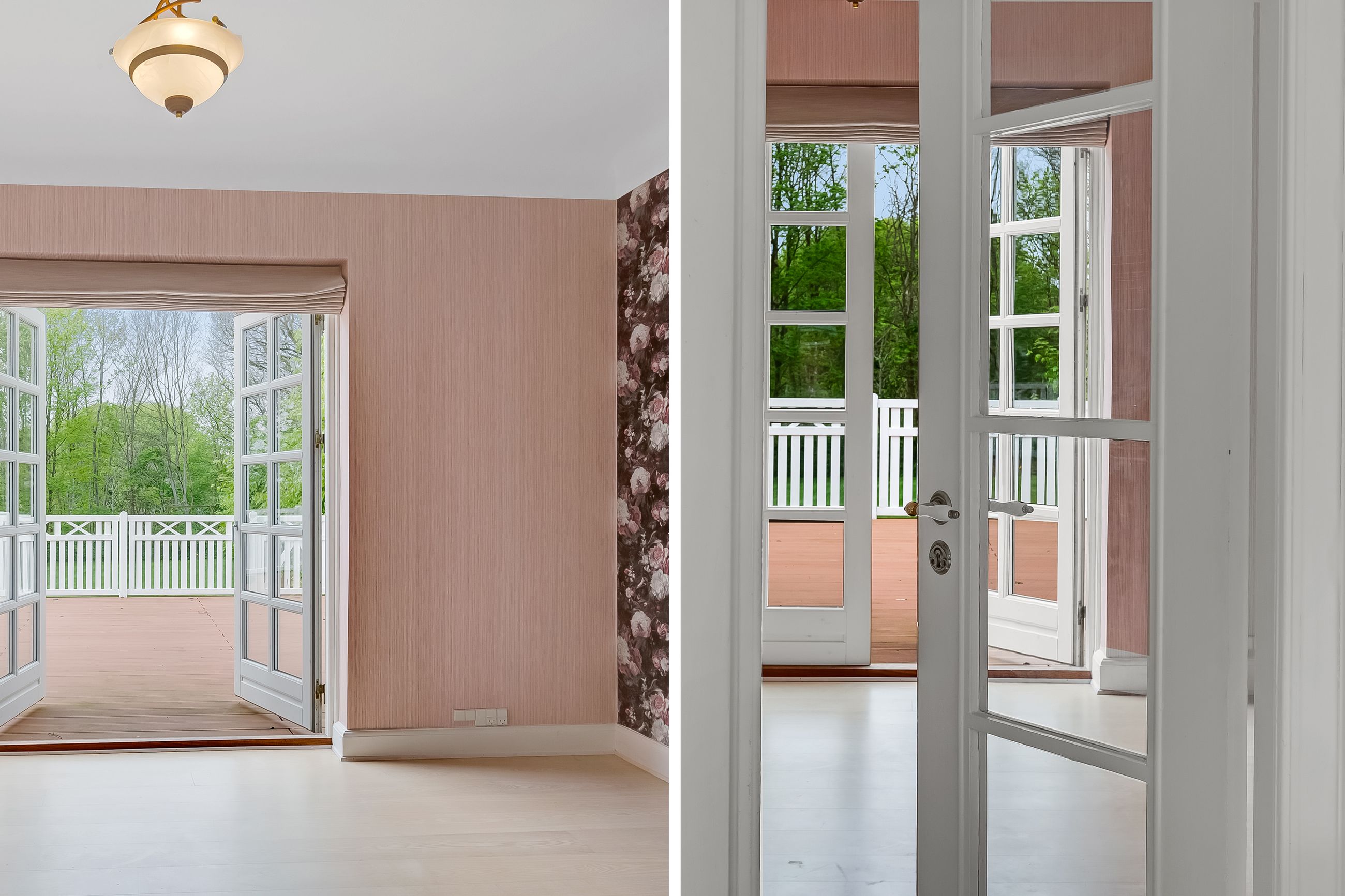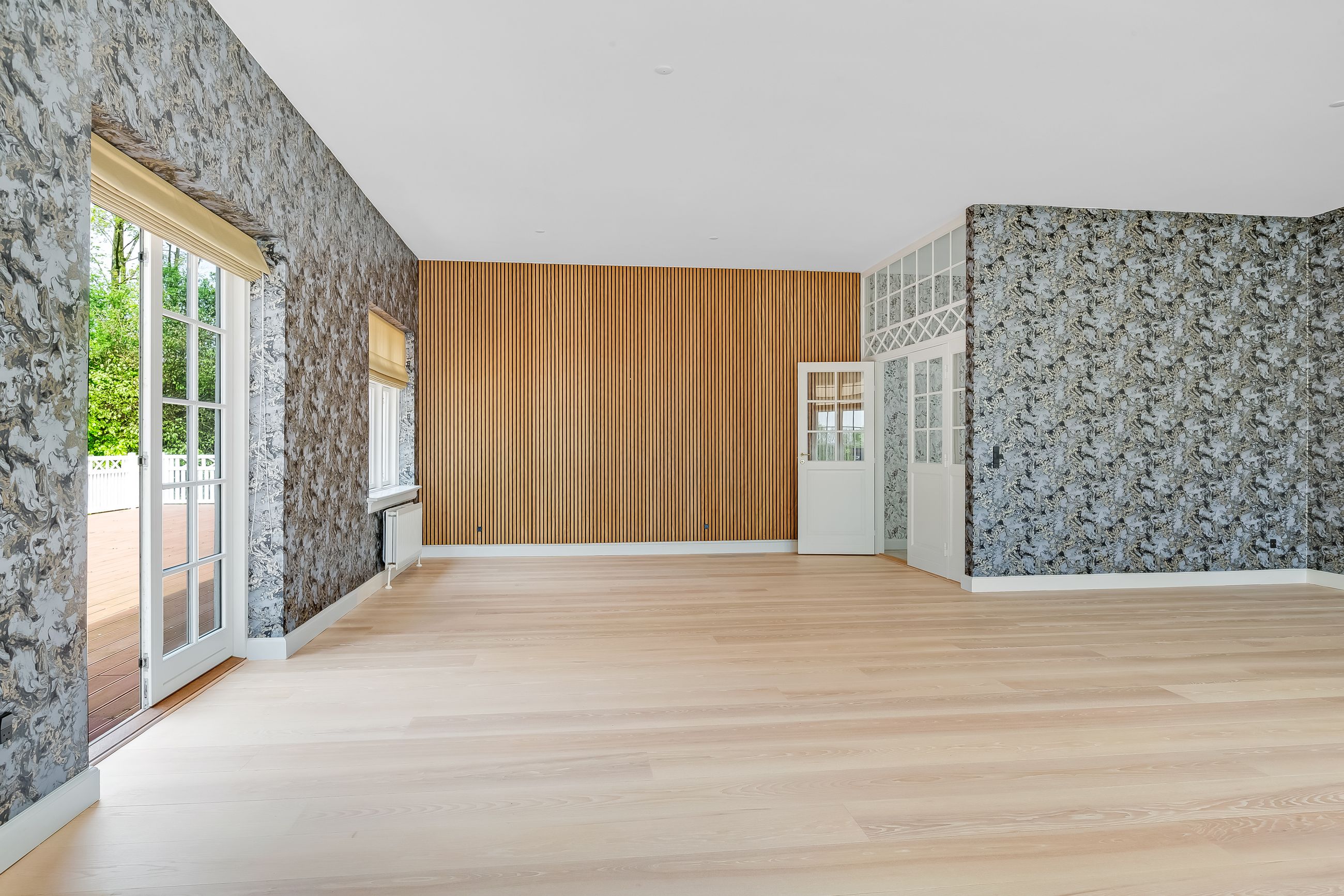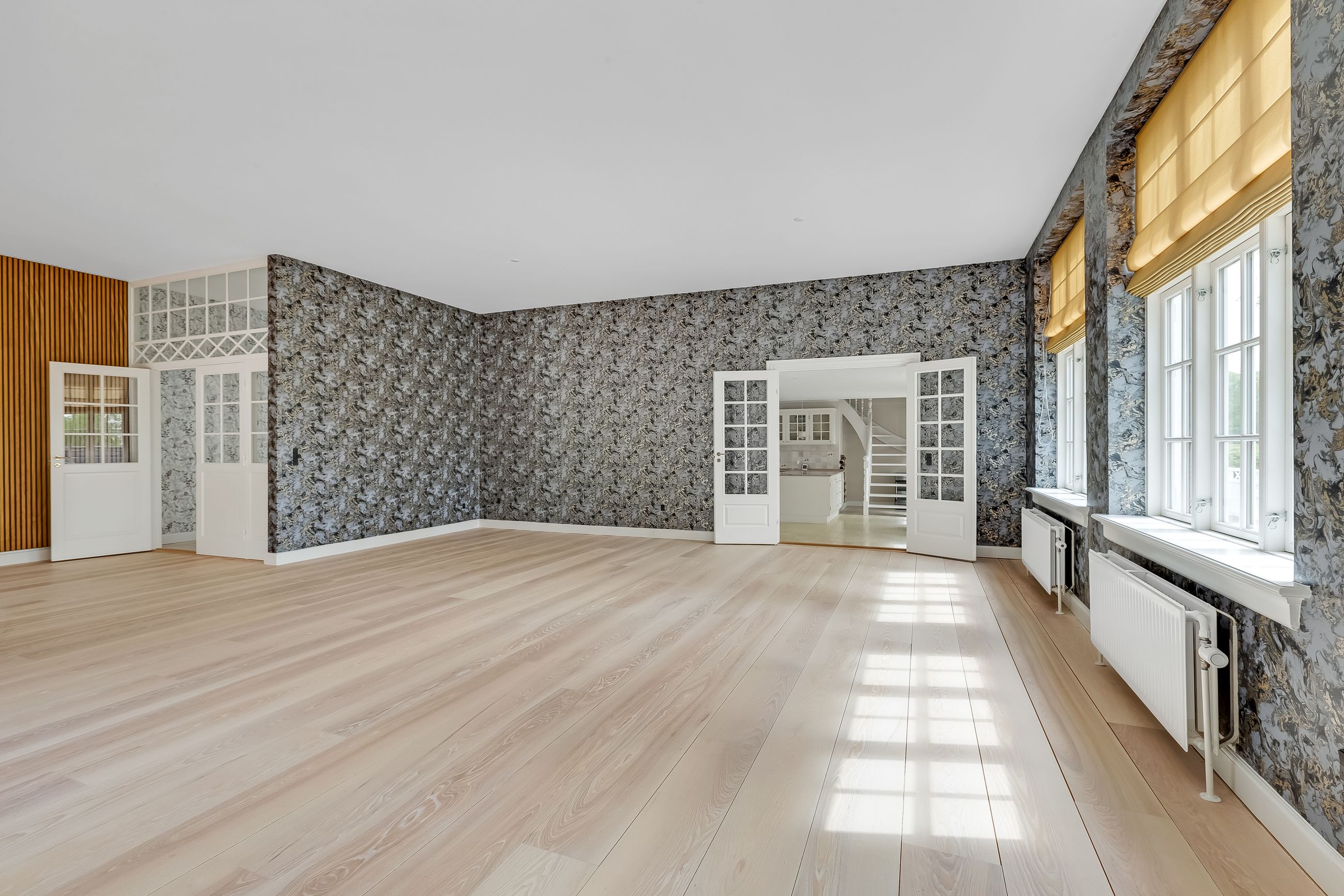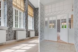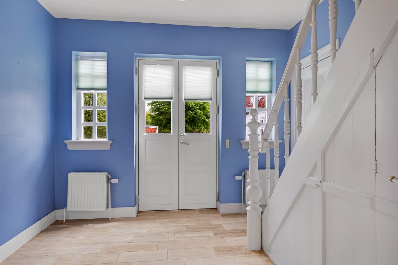 som flotte indgange, højloftede rum med masser af lysindfald. Fra de flotte stuer er der udgang til nyere