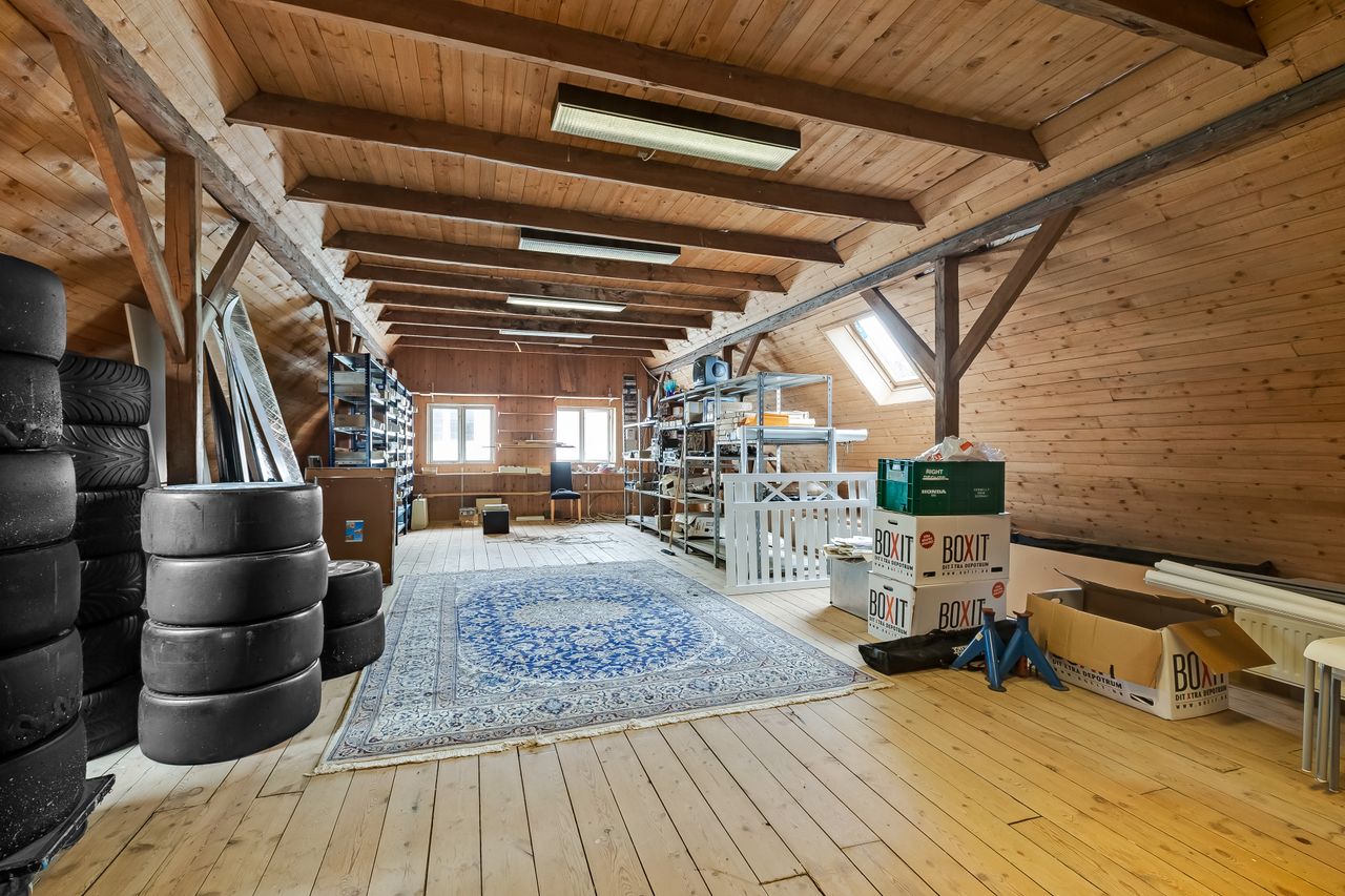af erhvervsdelen og har mange anvendelsesmuligheder. I erhvervsdelen er der ligeledes dobbelt garage