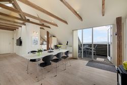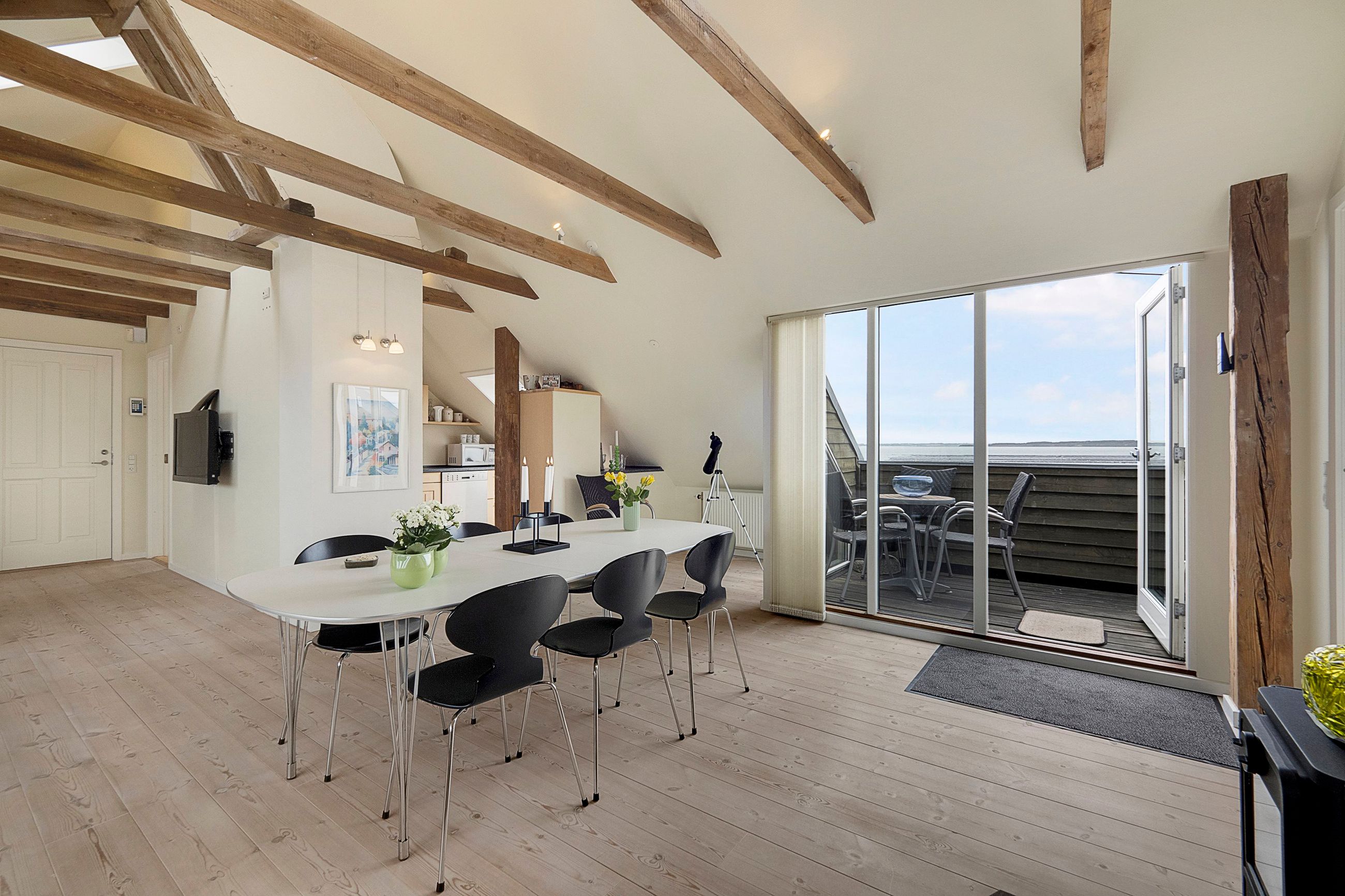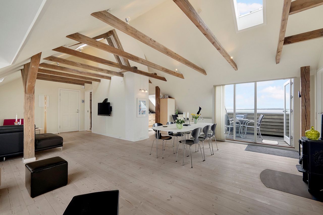 Udsigt i særklasse – mod både Venø Bugt og Nissum Bredning. Nu udbydes en helt særlig og indflytningsklar penthouselejlighed, som ligger i 1. række til stranden i et naturskønt område, hvor I er omgivet af ro og landskab, men stadig tæt på by og hverdagens nødvendigheder. Fra lejlighedens østvendte altan er der uhindret udsigt over bugten, og samtidig har I kort afstand til både hyggeligt, lokalt fiskeleje, en nærliggende golfbane i Humlum og gode surf muligheder.