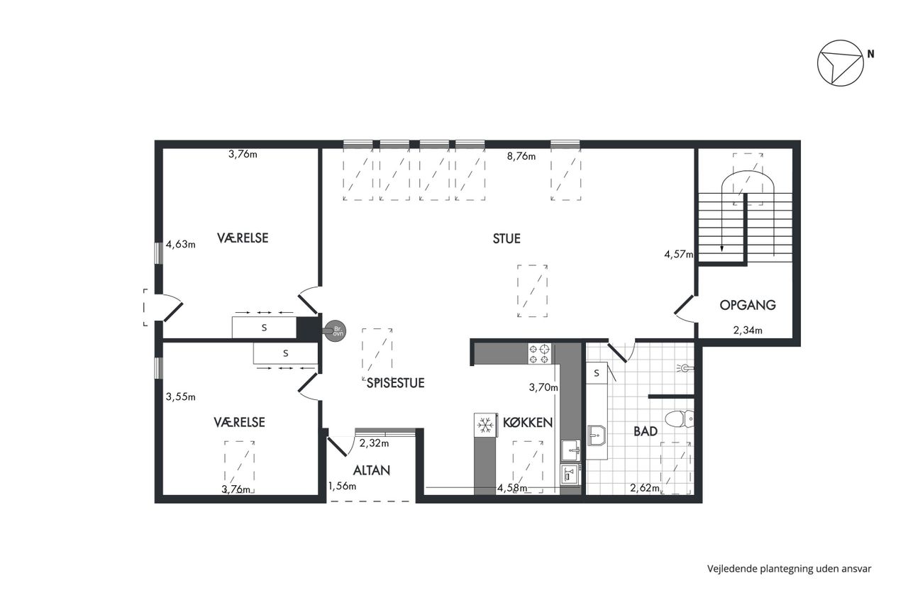 Lejligheden er placeret øverst i en charmerende ejendom fra 1903 og rummer hele 92 veludnyttede kvadratmeter. Lejligheden har et tinglyst areal på 136 m2, heraf 18 m2 garage med el-port og 15 m2 praktisk udhus/anneks.