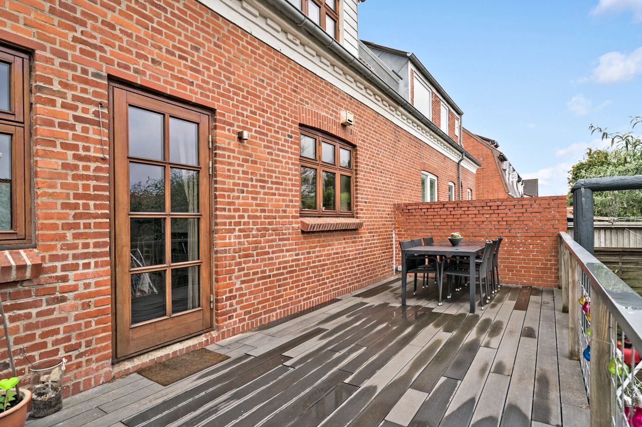 Her på Jyllandsgade 31 udbydes et rækkehus, som kan huse både par og familier i forskellige størrelser. Der er således tale om en bolig i flere plan, hvor der både er mulighed for at anvende faciliteterne i den nuværende forfatning, men hvor der ligeledes kan omstruktureres efter egne behov.