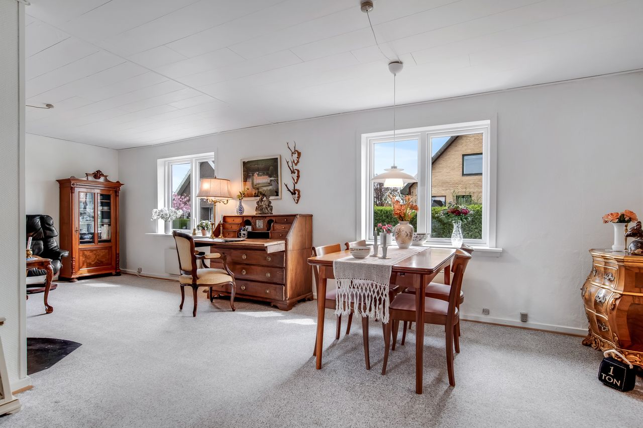 sydvestvendt dagligstue samt spisestue med adgang til et rummeligt køkken. Efter