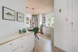 Boligen har en særdeles gennemtænkt planløsning. Det store køkken i åben forbindelse til stuen er hjemmets naturlige samlingspunkt for hygge, samvær og festlige lejligheder. Stueplanet rummer desuden tre gode værelser, et kontor samt et badeværelse.