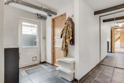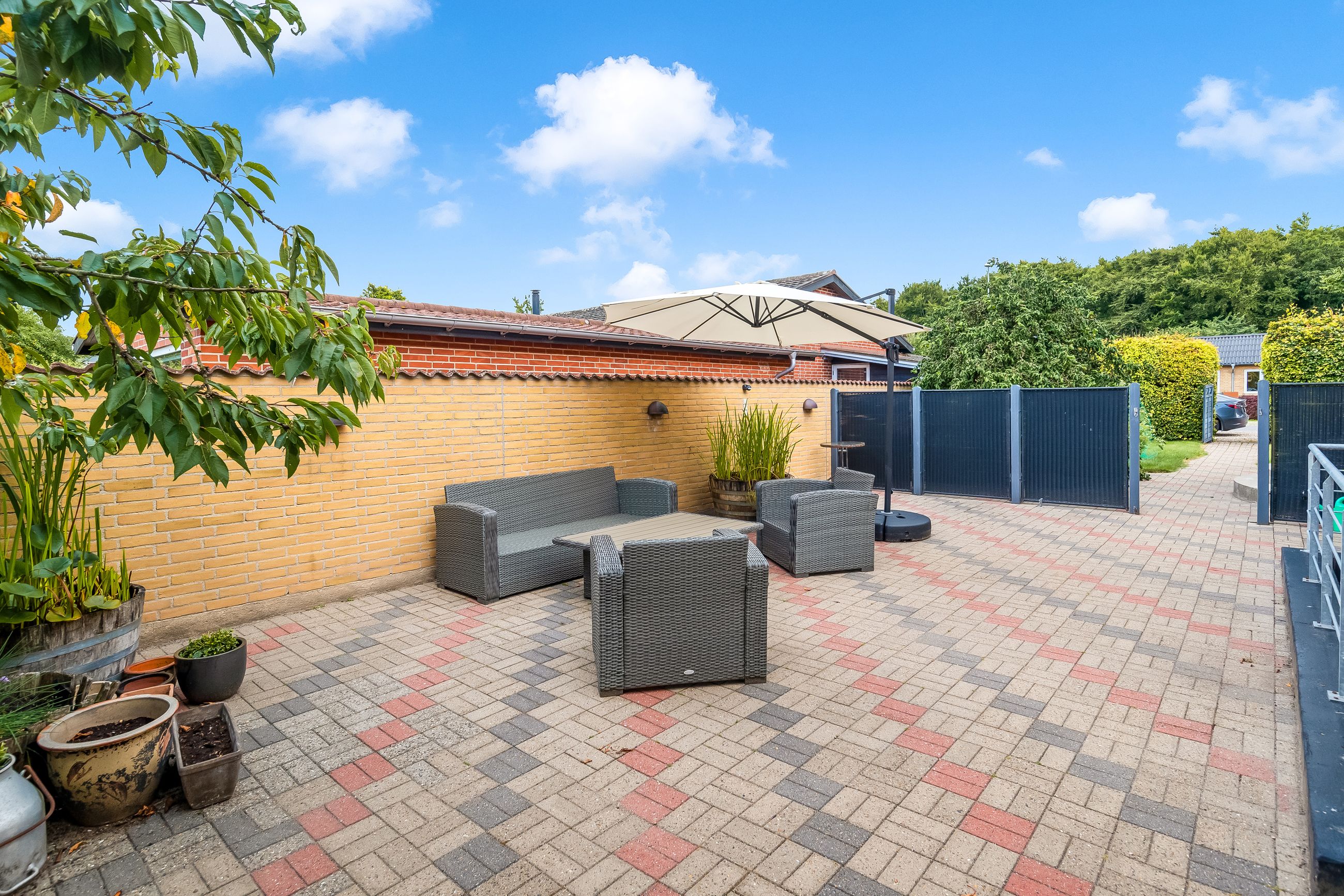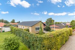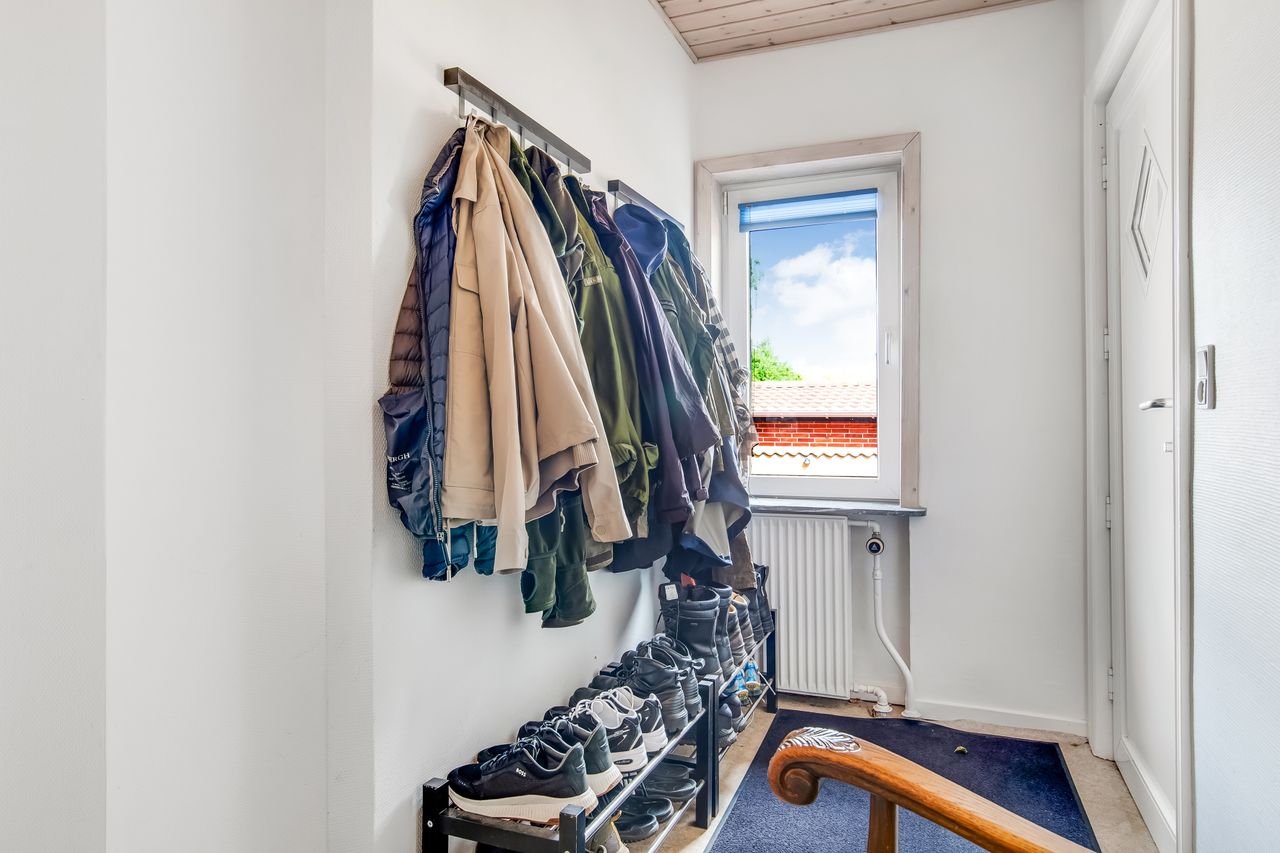 Udenfor venter en hyggelig og velanlagt have, der giver rig mulighed for udendørs aktiviteter. Her kan I nyde solen på terrassen, grille med venner og familie eller lade børnene lege frit på græsplænen. Haven er omkranset af høje hække, der skaber privatliv og en hyggelig atmosfære. Idomvej 32 ligger ideelt for den travle familie. Med kun få minutters gang til Sønderlandsskolen og nærliggende daginstitutioner bliver morgenrutinerne lette og stressfri. Samtidig er der kun en kort tur til Holstebros centrum, hvor I kan udforske byens brede udvalg af butikker, hyggelige caféer og kulturelle tilbud.