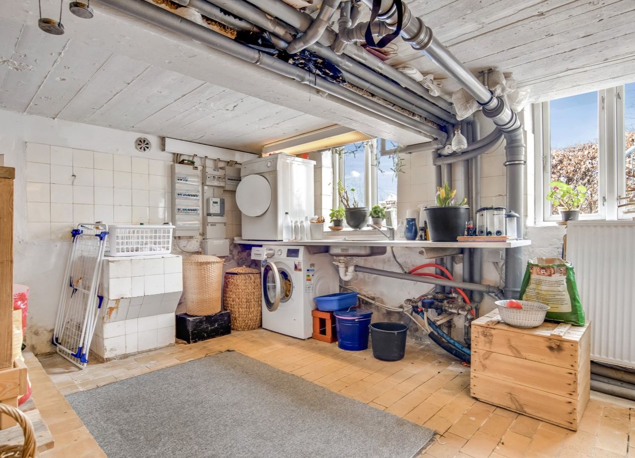 Derudover er der en kælder med god loftshøjde, hvilket giver ekstra plads og mulighed for