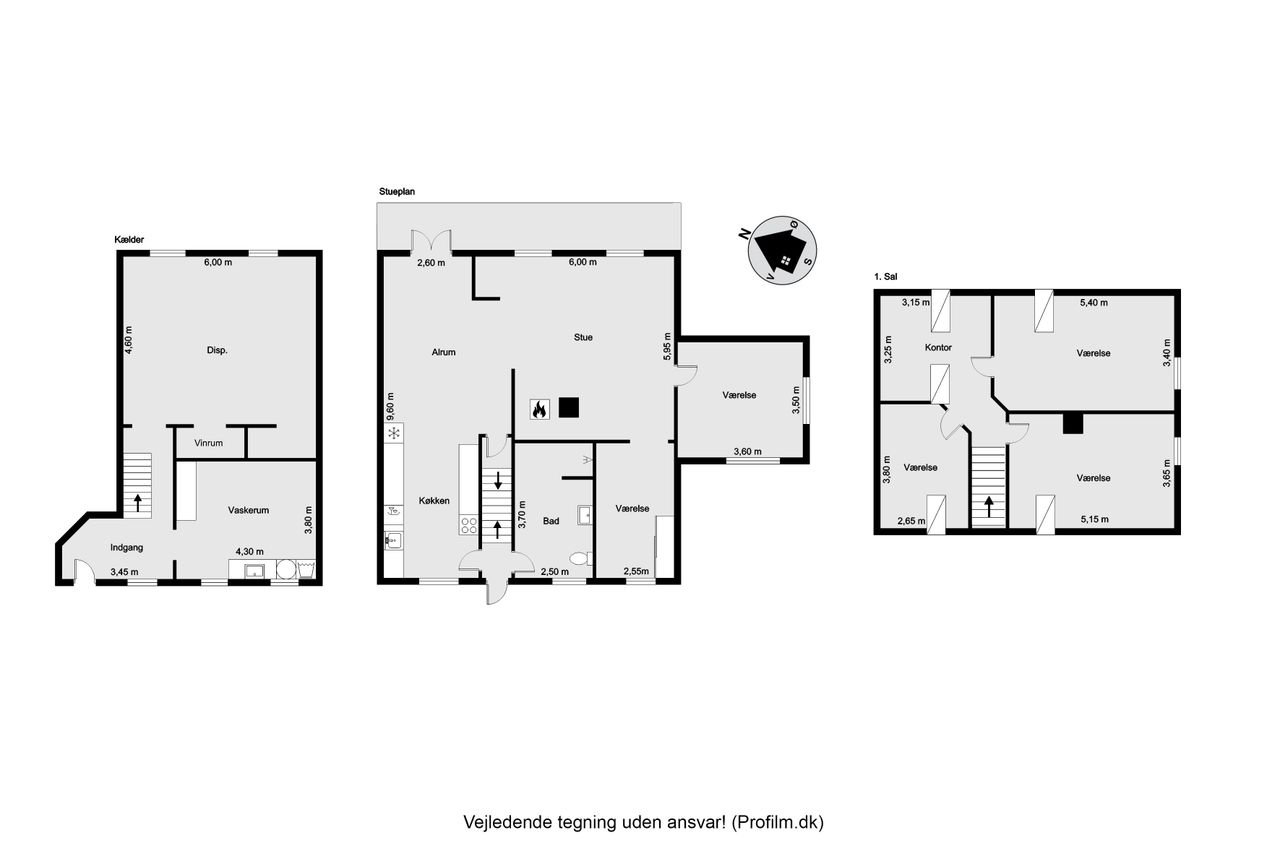 og stueplan – alle med god plads og naturligt lys. Èn charmerende trappe fører til 1. salens værelser