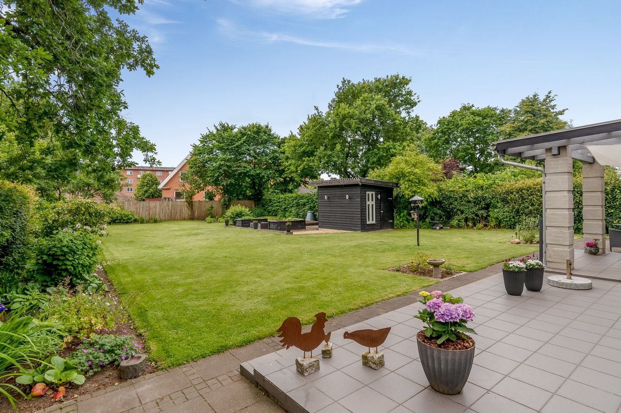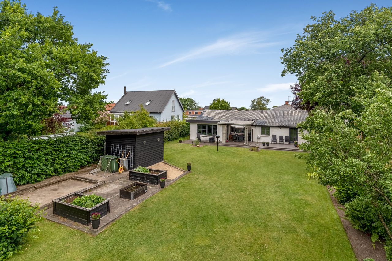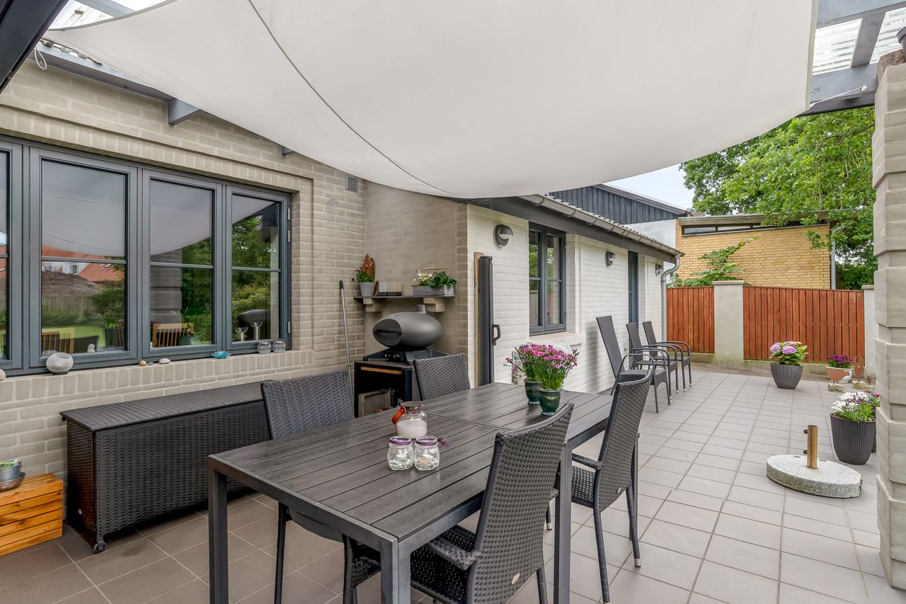 Udenfor finder man en lukket og solrig have med flere gode rum til både boldspil, solbadning, køkkenhave og bålhygge. Haven er sydvestvendt og har et hyggeligt gårdhavemiljø, der skaber god stemning i de varme måneder. Til boligen hører også et integreret redskabsskur med plads til opbevaring.
