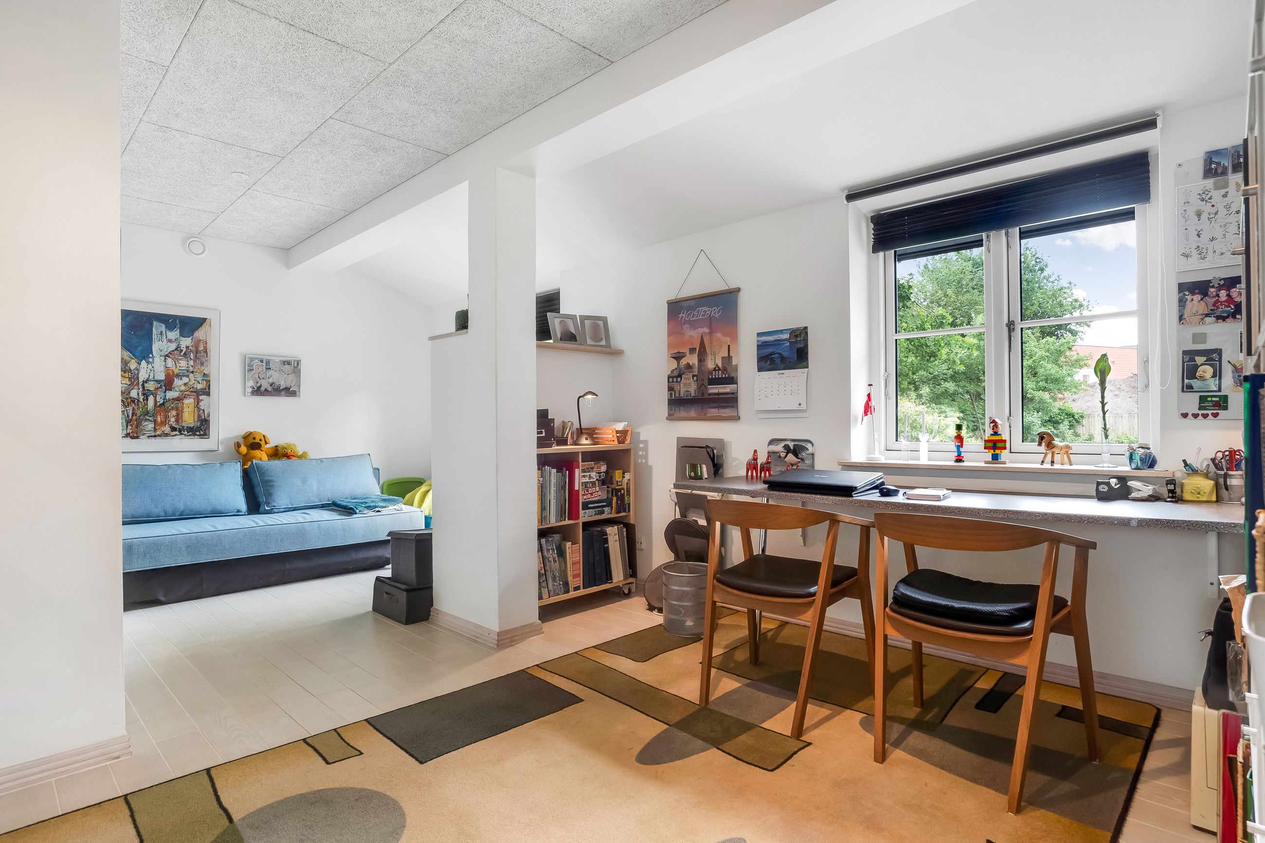 Kvarteret er roligt og velfungerende med et godt mix af børnefamilier, unge og mangeårige beboere. Med både Rolf Krake Skole og friskole i nærheden, og med daginstitutioner og indkøb inden for gå- eller cykelafstand, er det en oplagt base for hverdagen. Samtidig er der få minutters gang til både bymidten og grønne områder ved skov og å.