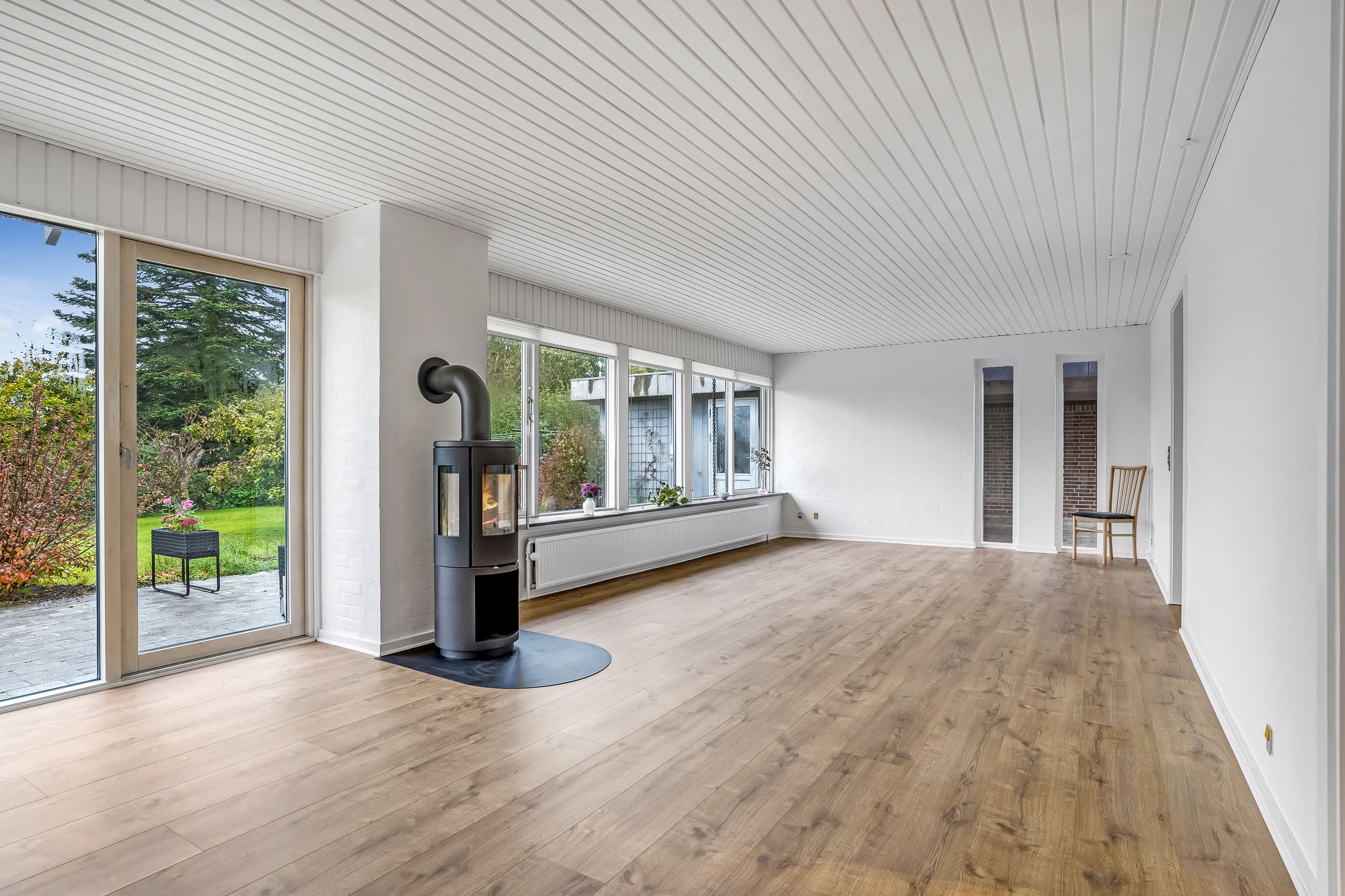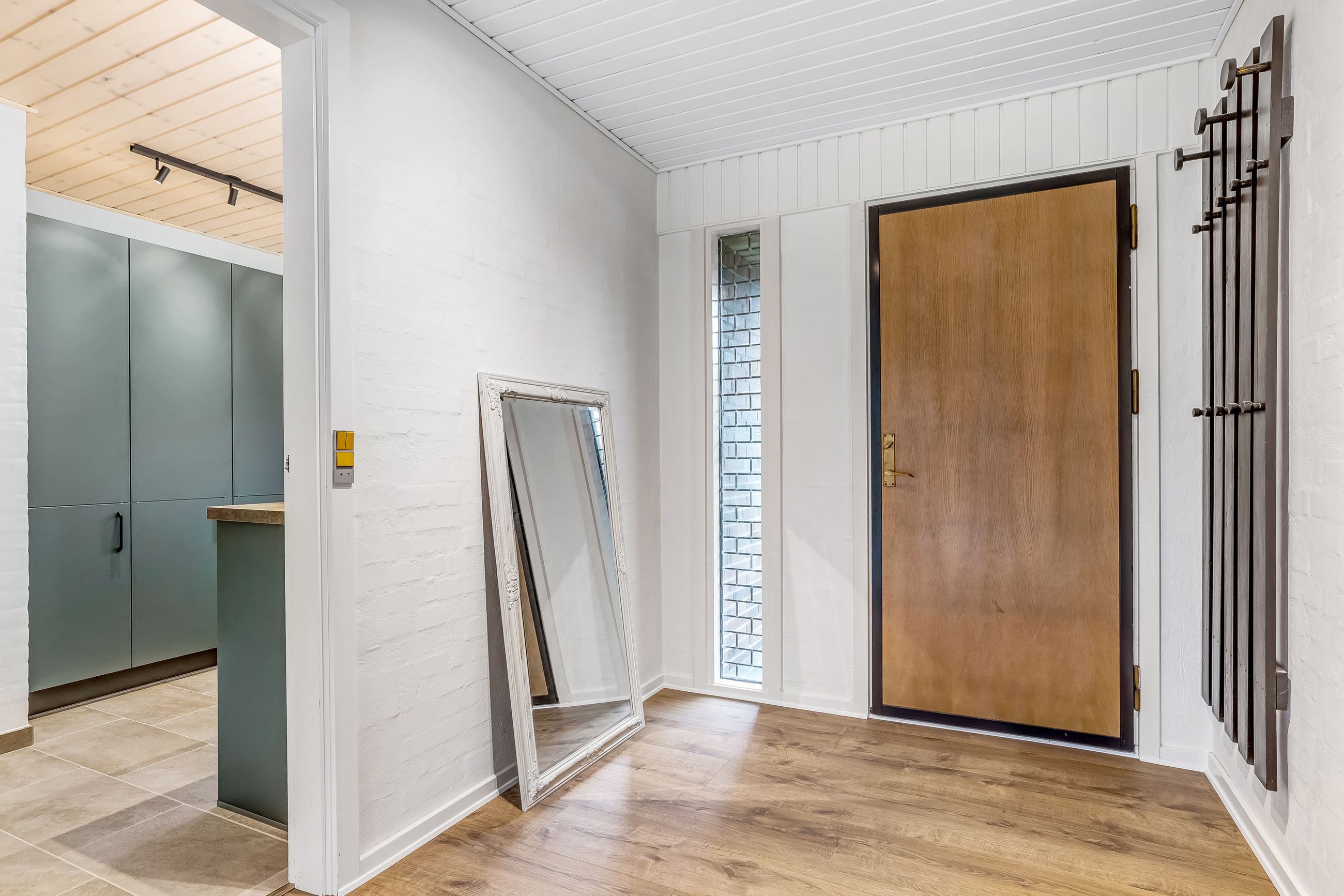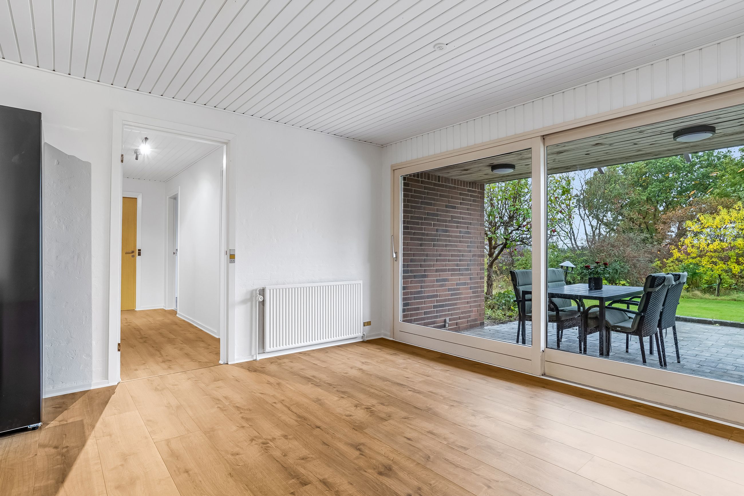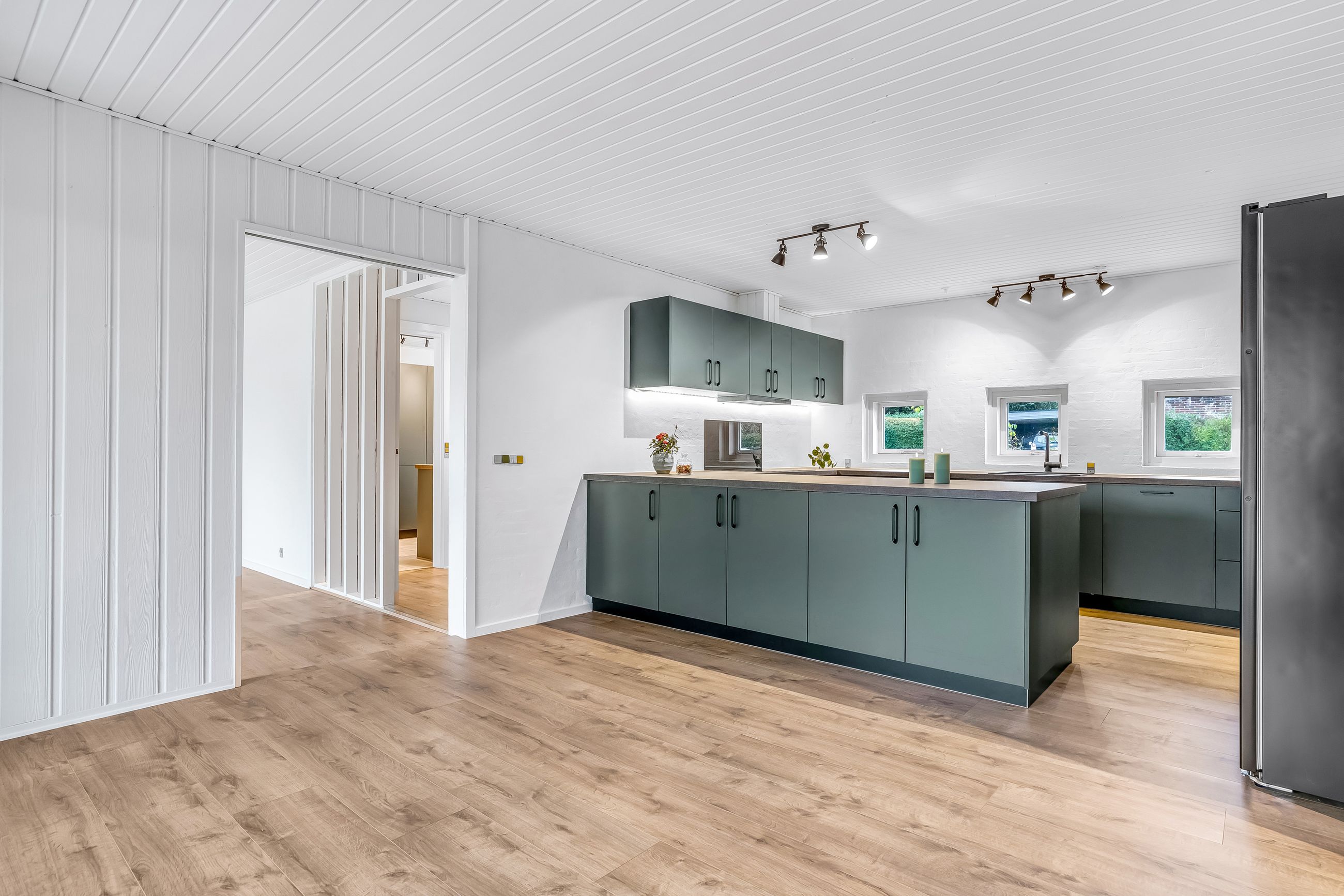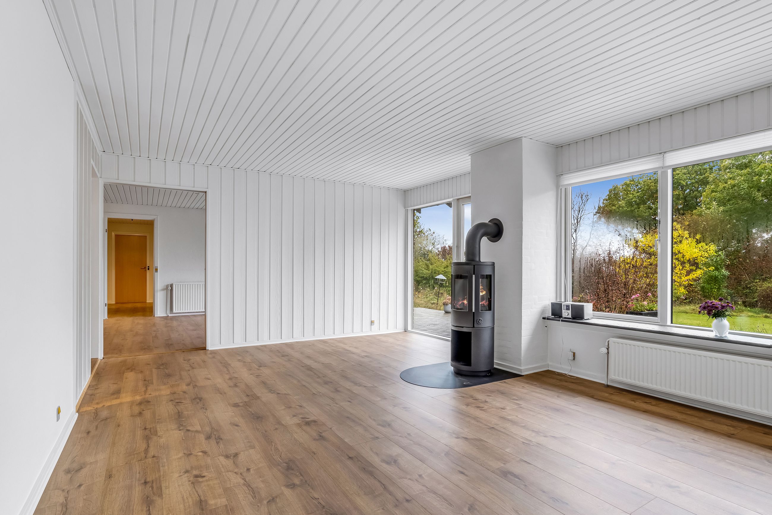 Hjemmet byder på en familievenlig planløsning, hvor et nyistandsat køkken/alrum er opført i åben forbindelse med dagligstuen. I den sydlige ende af huset venter en børneafdeling med 3 gode værelser, et badeværelse og et bryggers, mens den anden ende af huset består af et soveværelse, et badeværelse samt en entré.
