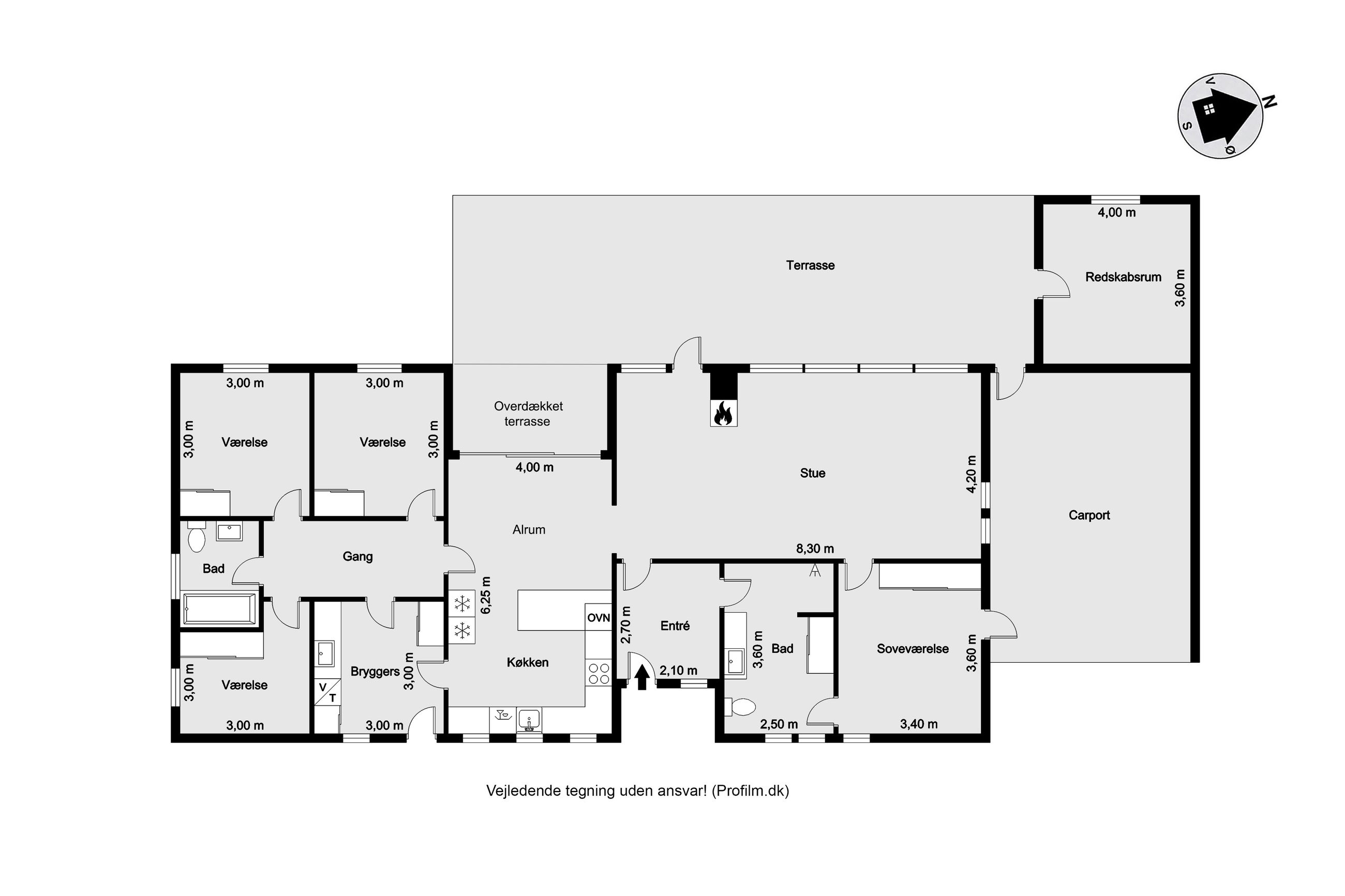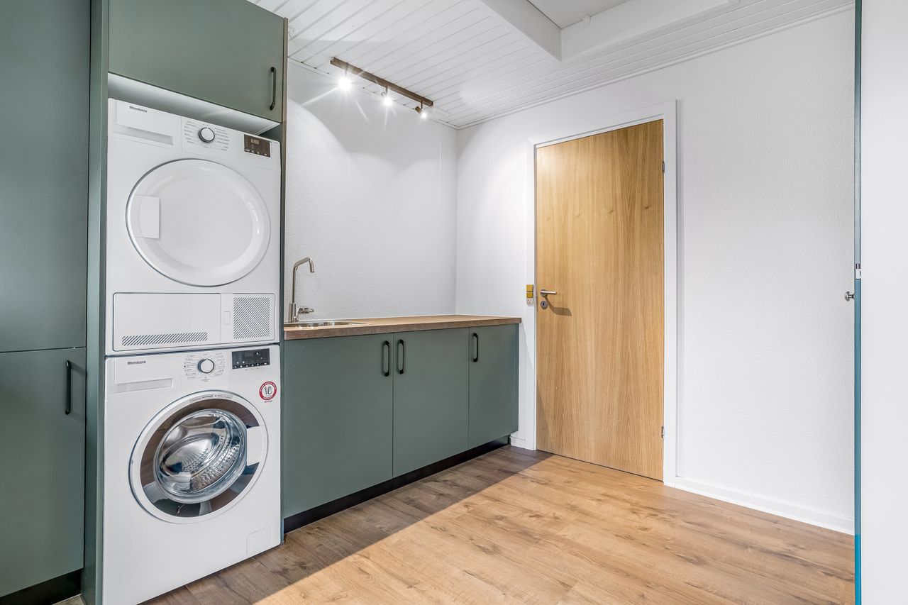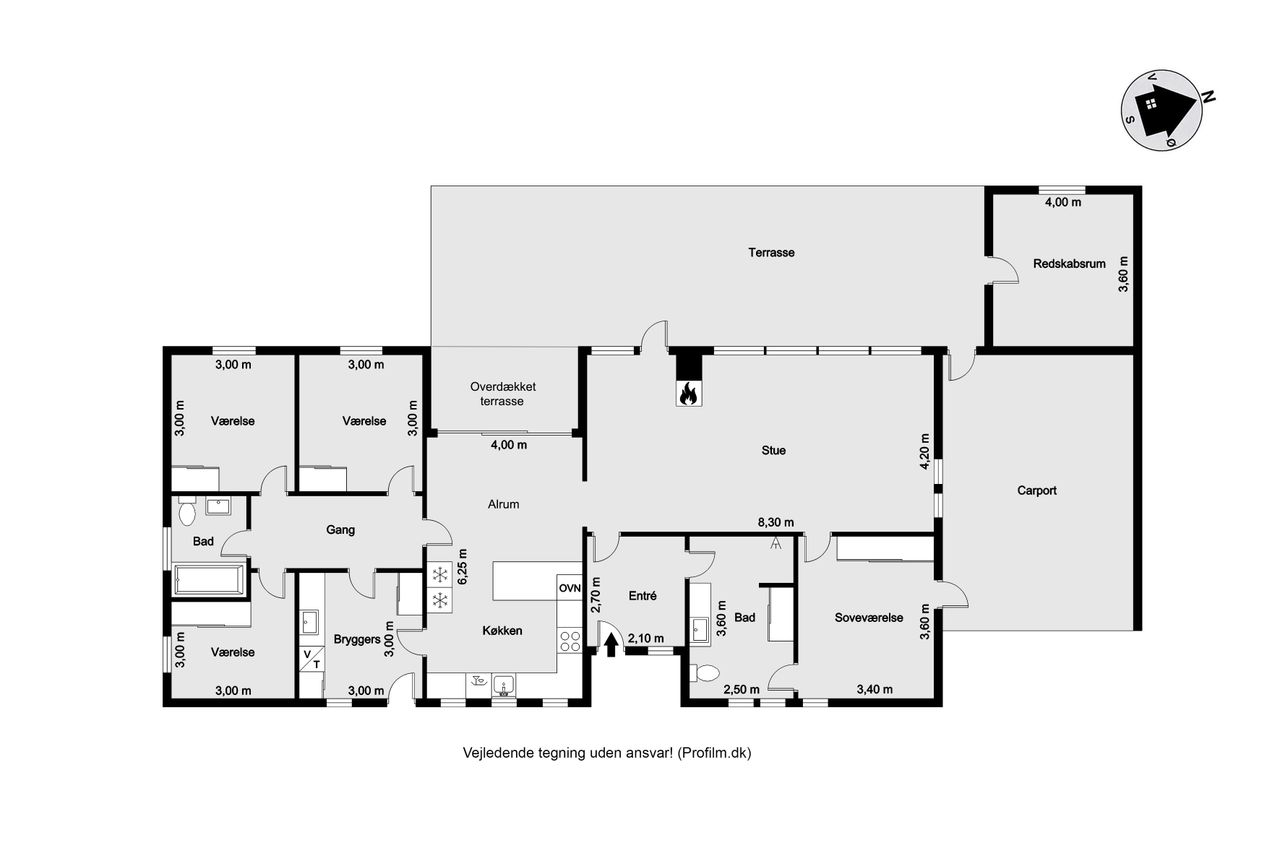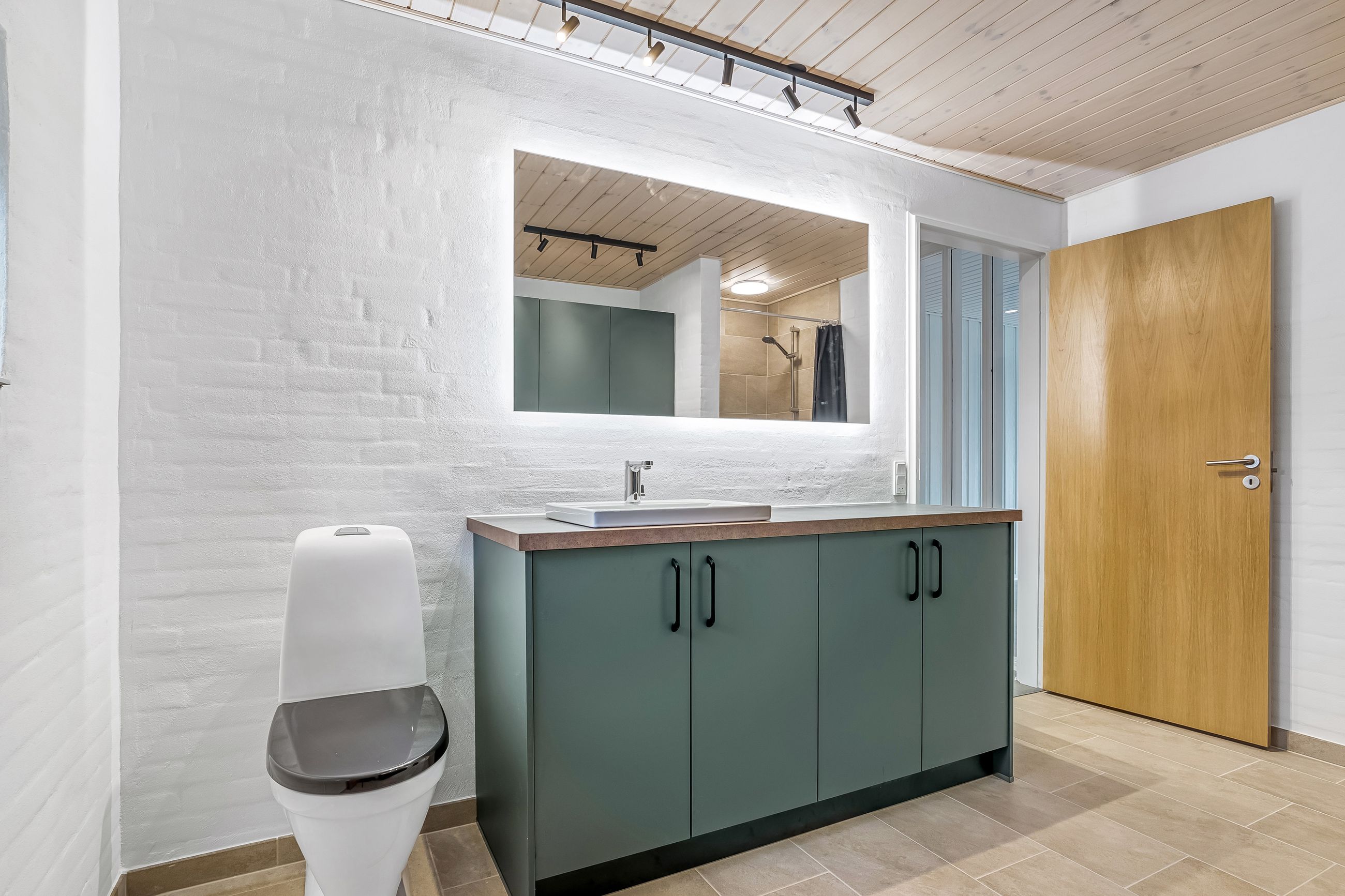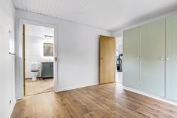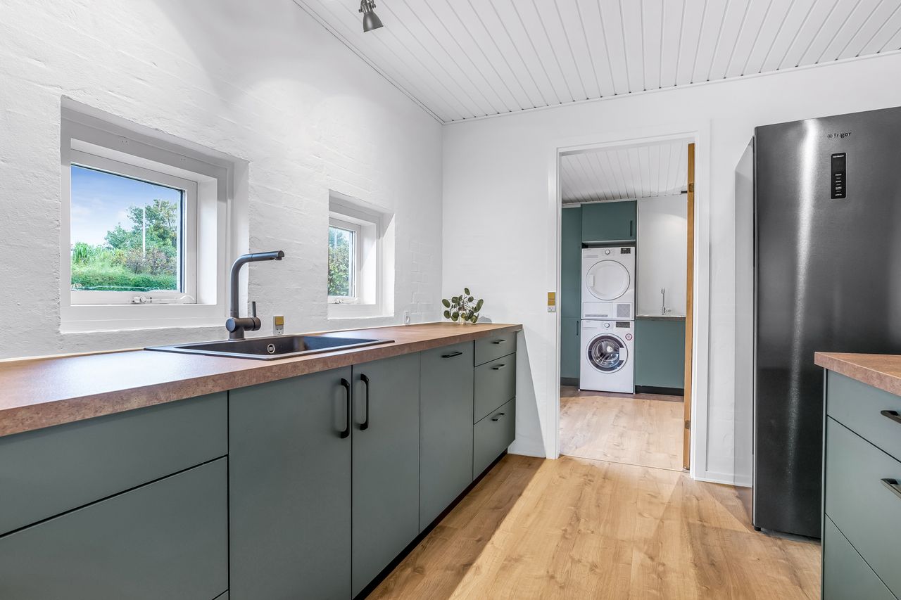 Hjemmet byder på en familievenlig planløsning, hvor et nyistandsat køkken/alrum er opført i åben forbindelse med dagligstuen. I den sydlige ende af huset venter en børneafdeling med 3 gode værelser, et badeværelse og et bryggers, mens den anden ende af huset består af et soveværelse, et badeværelse samt en entré.