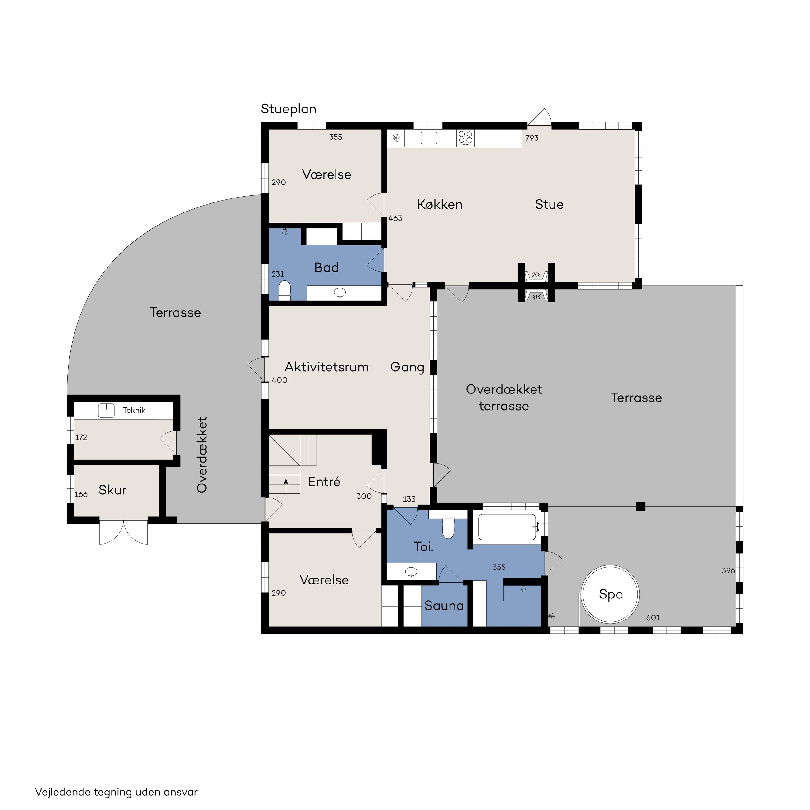 Huset fremstår overalt yderst velholdt og i god stand. Huset rummer alt det I har brug for, for at holde en skøn og afslappende ferie for hele familien. Der kan bl.a. nævnes, at der er spa både ude og inde, legetårn, trampolin, hyggeligt bålsted, poolbord mv. Ellers er der rig mulighed for at nyde solens stråler fra den dejlige terrasse, og nyde udsigten over åbne marker. Alt i alt er dette bare et hus, som må og skal ses.