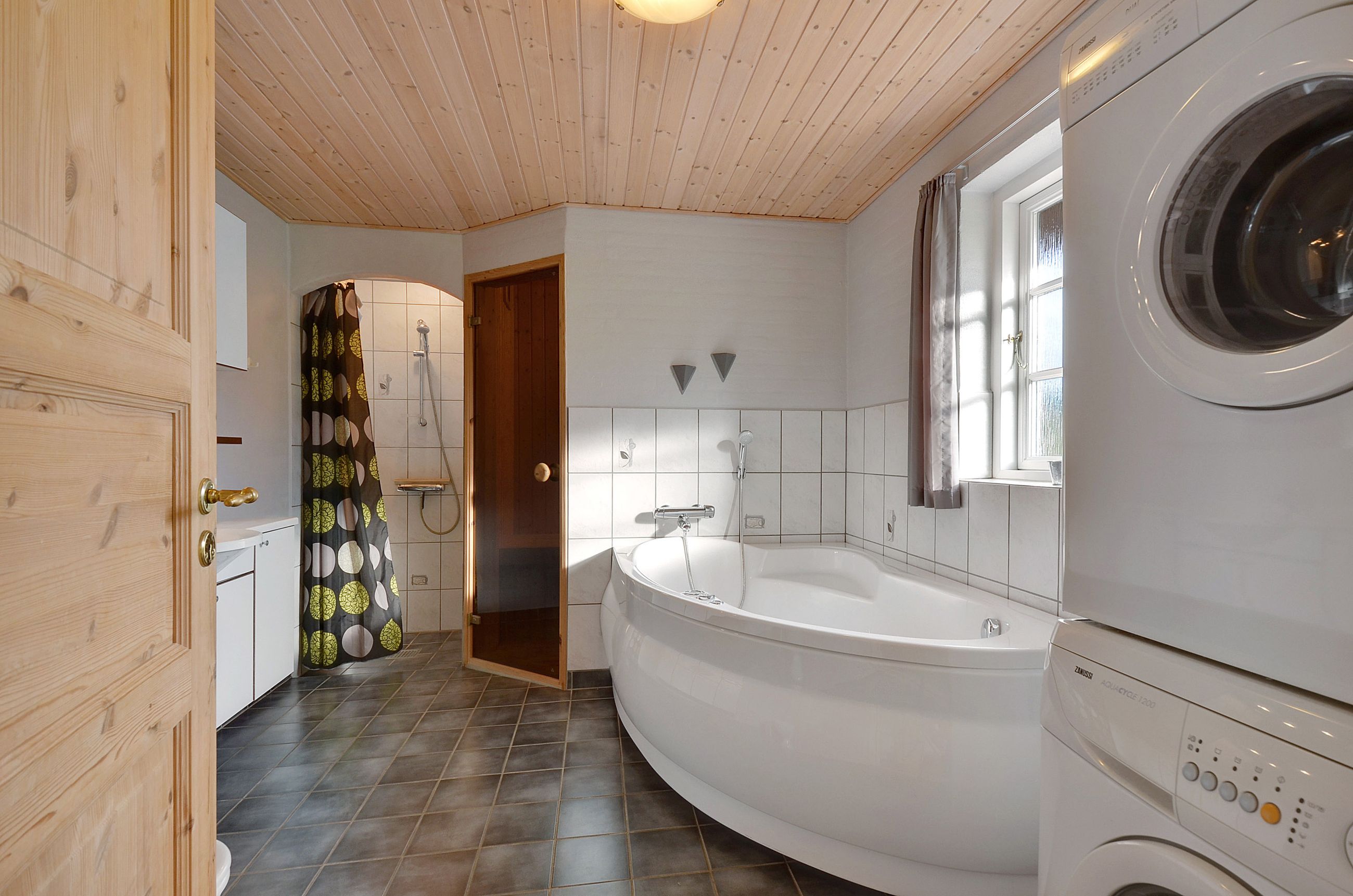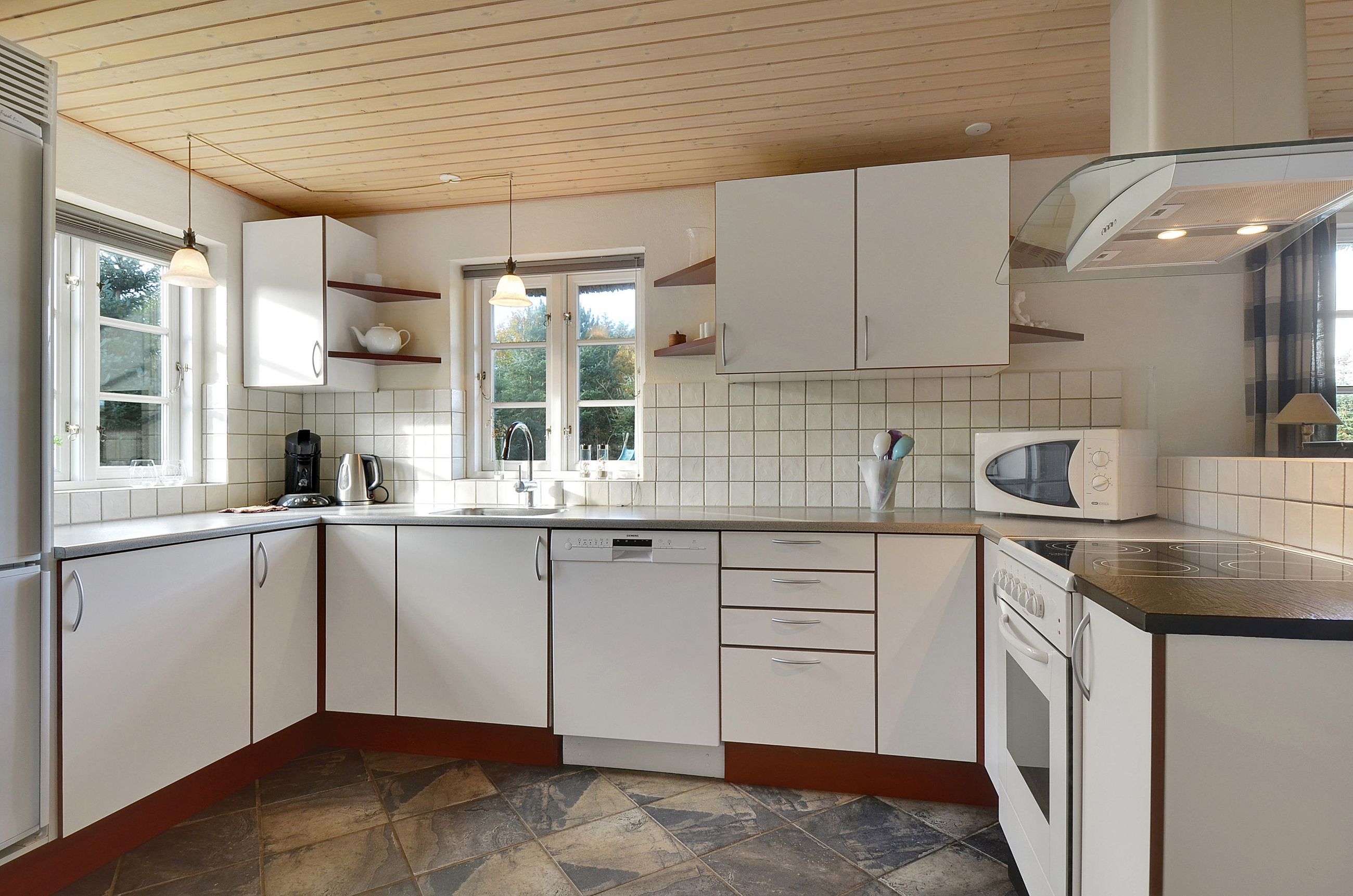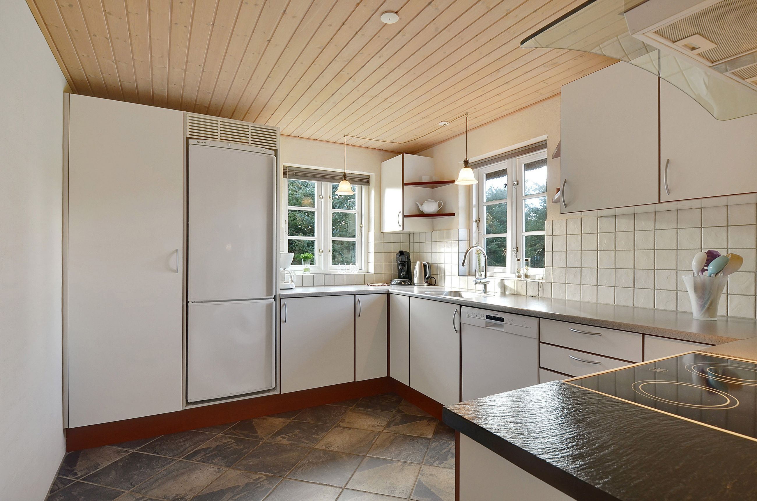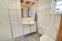 Selve huset, opført i mursten med stråtag, rummer pænt køkken med spiseplads. Herfra er der udgang til den gode terrasse. God opholdsstue med brændeovn og ligeledes med udgang til terrassen. 3 gode værelser, hvoraf det ene har direkte adgang til badeværelse. Ekstra badeværelse med sauna, spa og vaskesøjle. Entré med varmepumpe. Der er tilhørende integreret udhus med plads til bl.a. grill, haveredskaber mv. Et rigtig godt hus, som er velegnet til såvel eget brug som udlejning.