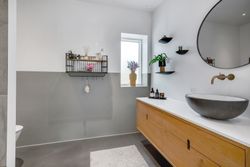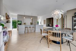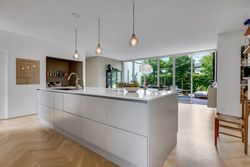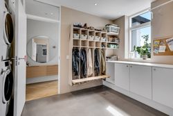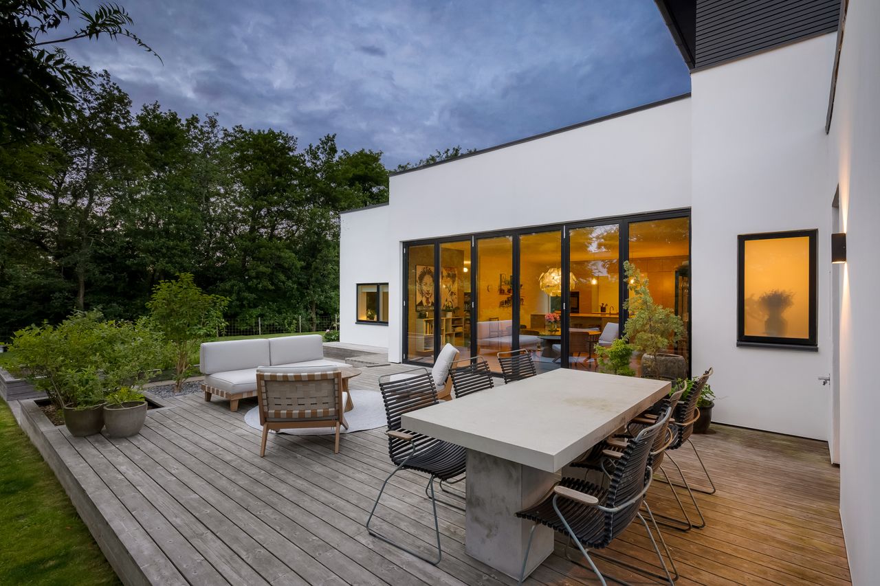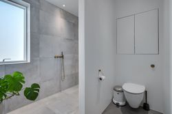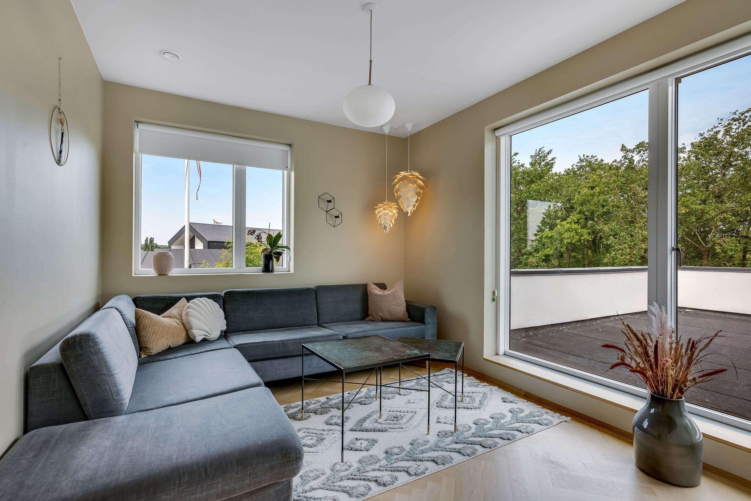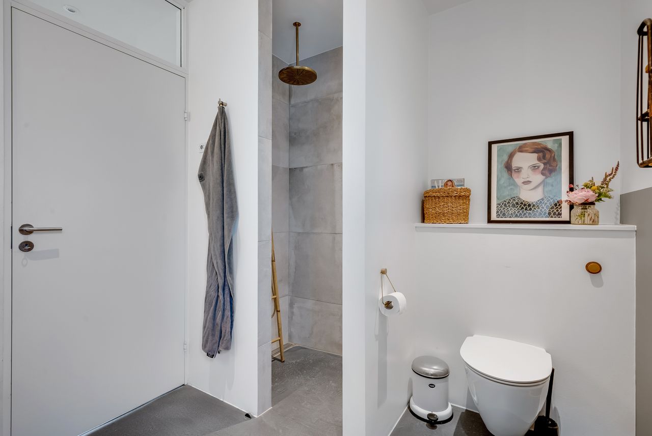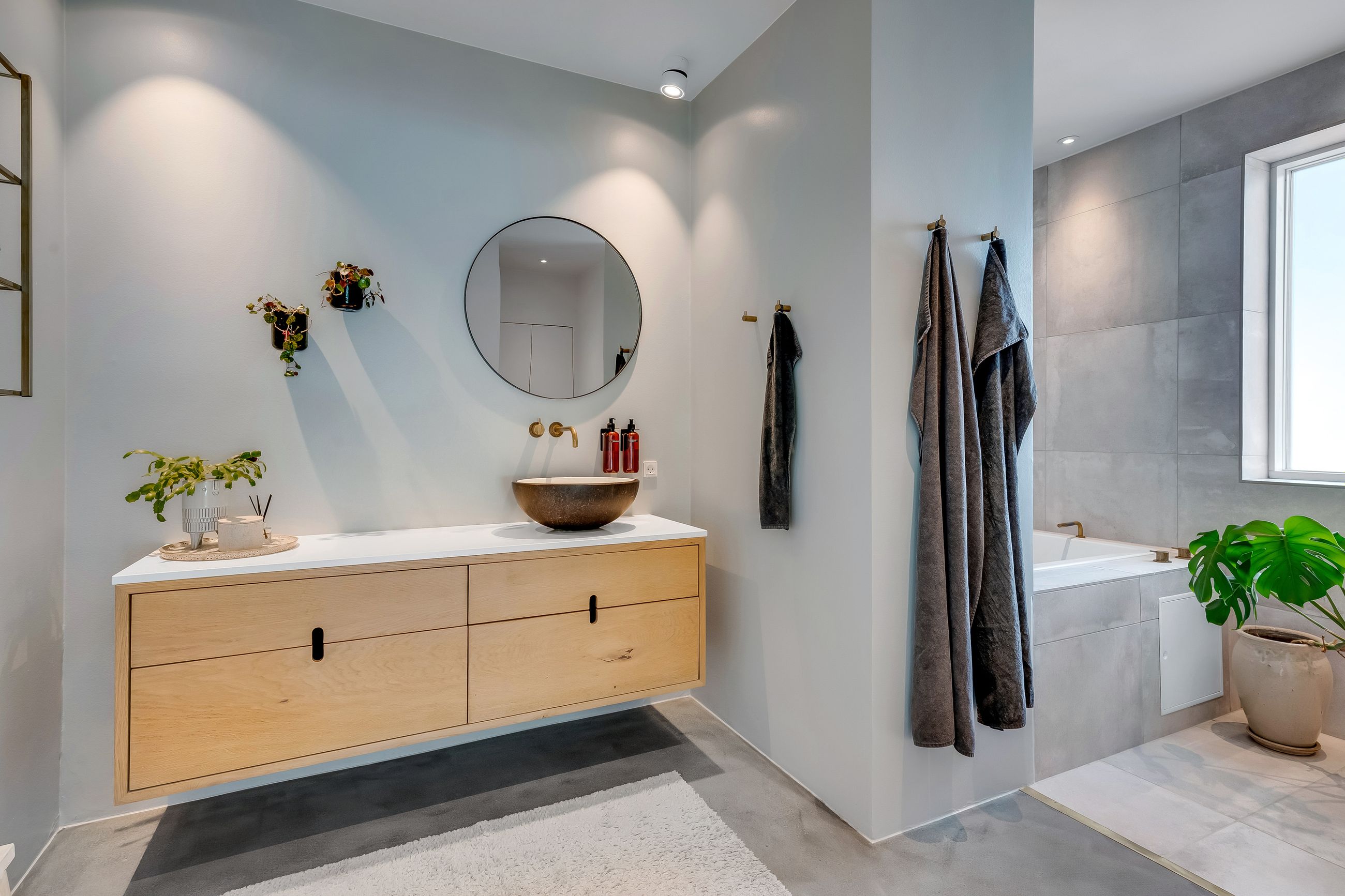 Ejendommen fremstår med et strømlinet og velgennemtænkt udtryk – både ude og inde. Her er der virkelig kræset for detaljerne, og materialevalget emmer af kvalitet og æstetik.