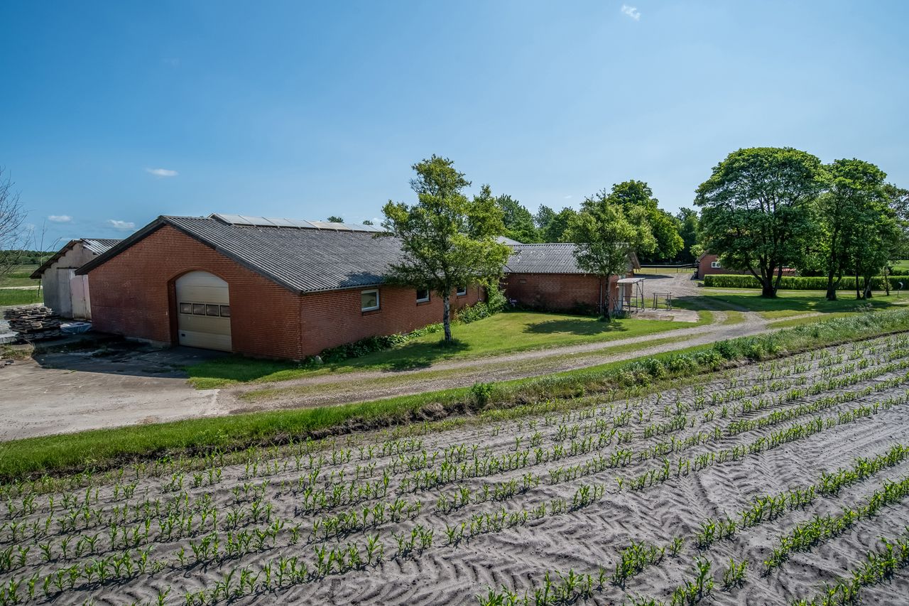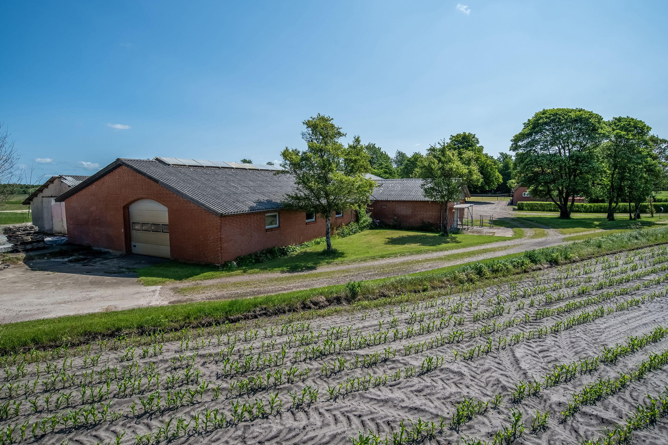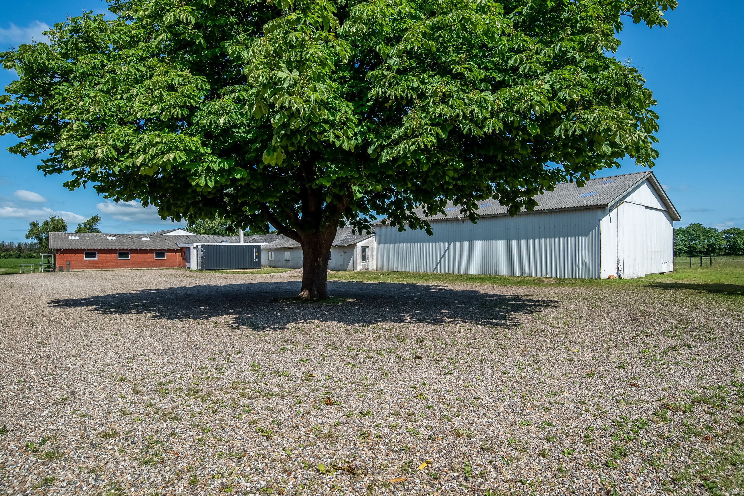 Til ejendommen hører en række anvendelige udbygninger, herunder to maskinhuse, staldbygninger med påbegyndt etablering af 4 hestebokse, fyrrum, flere disponible rum, værksted, garage/skur samt et isoleret sadelrum. Vestligst på grunden findes en rummelig lade på ca. 540 m2. Faciliteterne rummer således oplagte rammer for hestehold, løsdrift og opbevaring, men også for værksted eller anden fritidsbrug.
