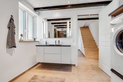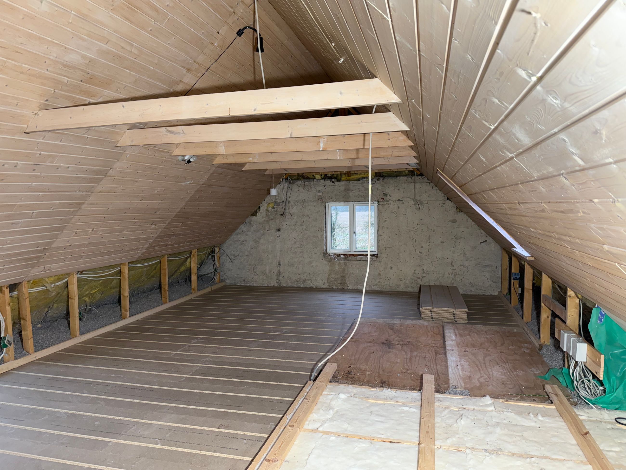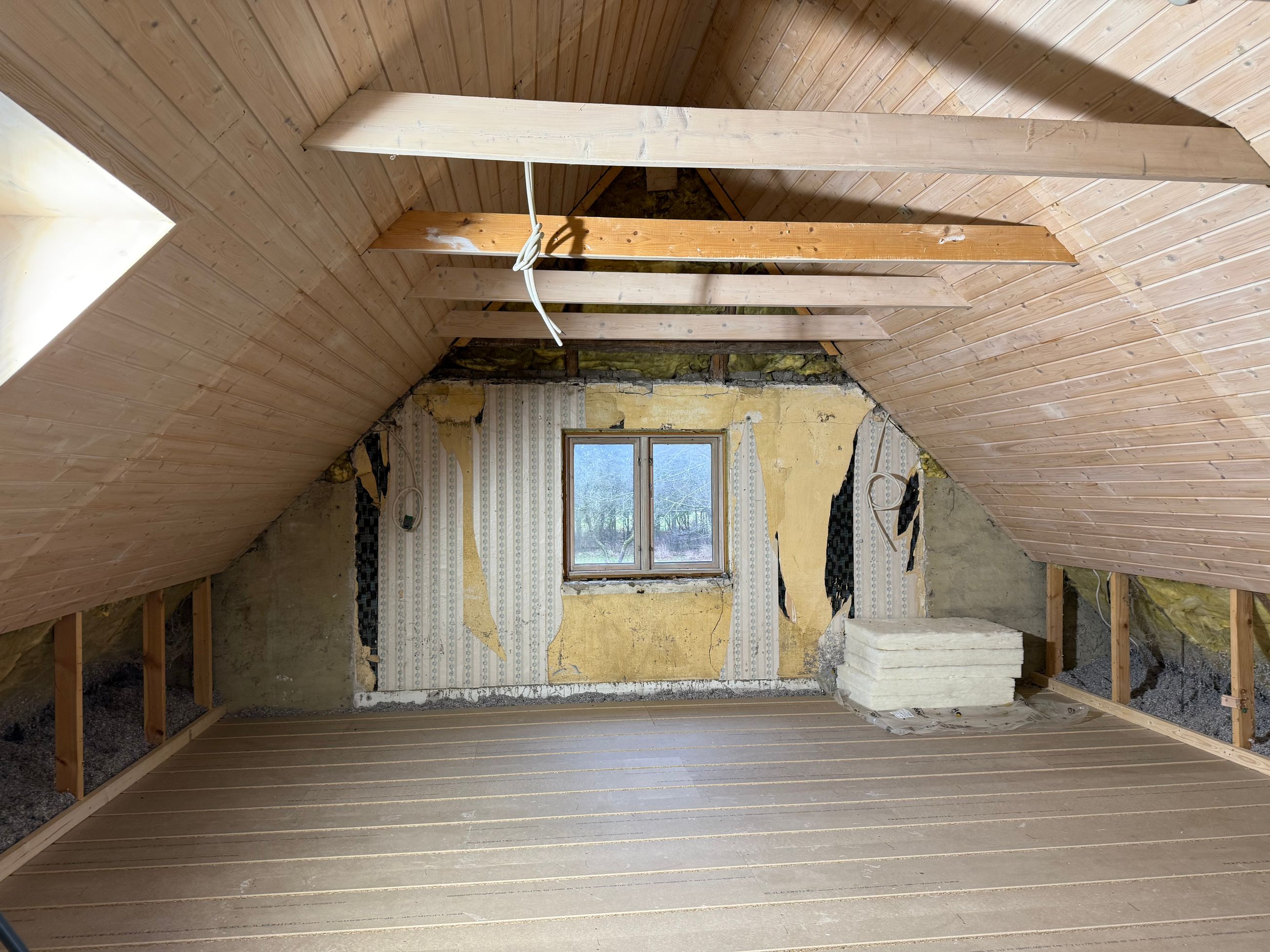 Førstesalen fremstår som et råt loftrum, klar til at blive udnyttet efter behov. Der foreligger et forslag til plantegning, som viser mulighed for etablering af bl.a. værelser og badeværelse.
