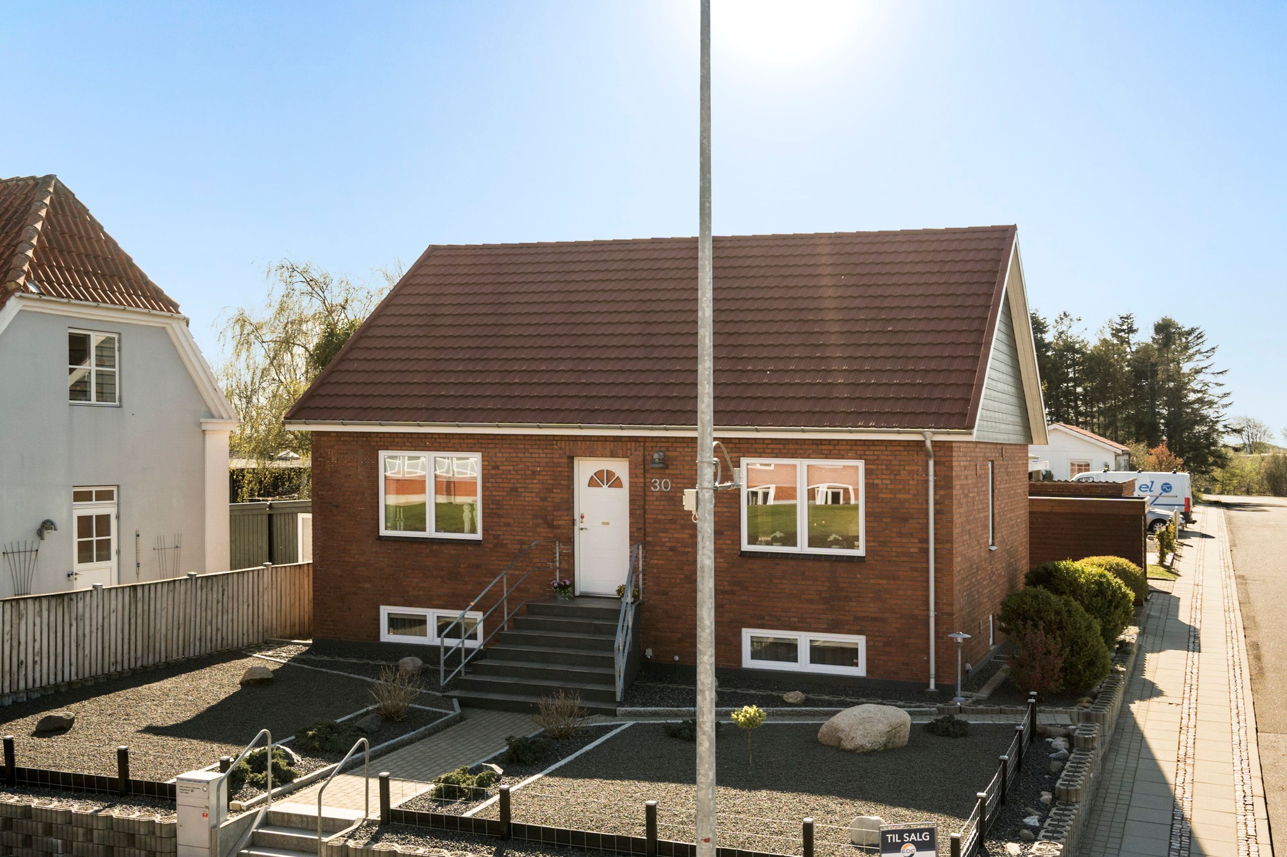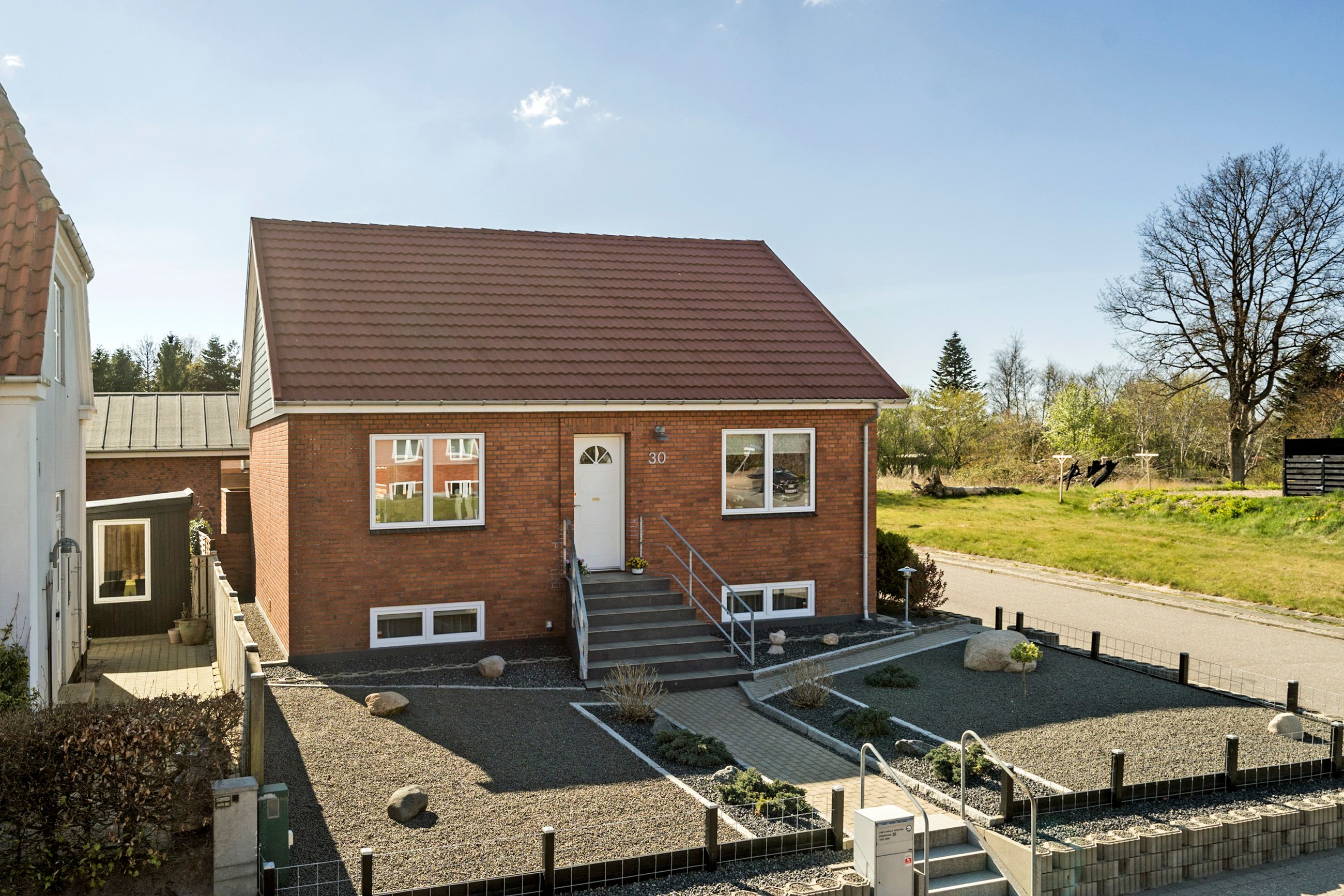 På Søndergade 30 i Vemb udbydes nu en ejendom, hvor både pris, praktik og plads danner et fornuftigt samspil. Der er tale om en bolig i to plan inkl. en rigtig god kælder i boligstandard, som indeholder både stort vaskerum/bryggers samt eget badeværelse. Stueplanet indeholder alle de fornødne rum til hverdagen og har bl.a. en stor dobbeltstue egen udgang til sydvestvendt terrasse. Boligens fortsætter til fordelingsgang, som binder hele stueplanet sammen med adgang til køkken, badeværelse, soveværelse og kontor. Boligen fik lagt nyt ståltag i 2010, har løbende fået skiftet vinduer, gavle og tagrender og har derudover gennemgået gode løbende moderniseringer i begge plan, hvilket i dag resulterer i, at der er tale om en indflytningsklar bolig, hvor der fortsat er mulighed for - og budget til - at sætte eget præg alt efter drømme og præferencer. Ejendommens størrelse strækker sig til 355 m2, som udover boligen rummer hele to garager samt en dejlig terrasse og stort fliseareal mod sydvest. Dette betyder, at der er tale om en ejendom med minimalt udendørs vedligehold samt gode sekundære bygninger til aktivitet, opbevaring mv. Ejendommen er placeret i den sydlige del af Vemb med kort afstand til grønne områder og Storåen såvel som indkøb og byens øvrige fornødenheder.