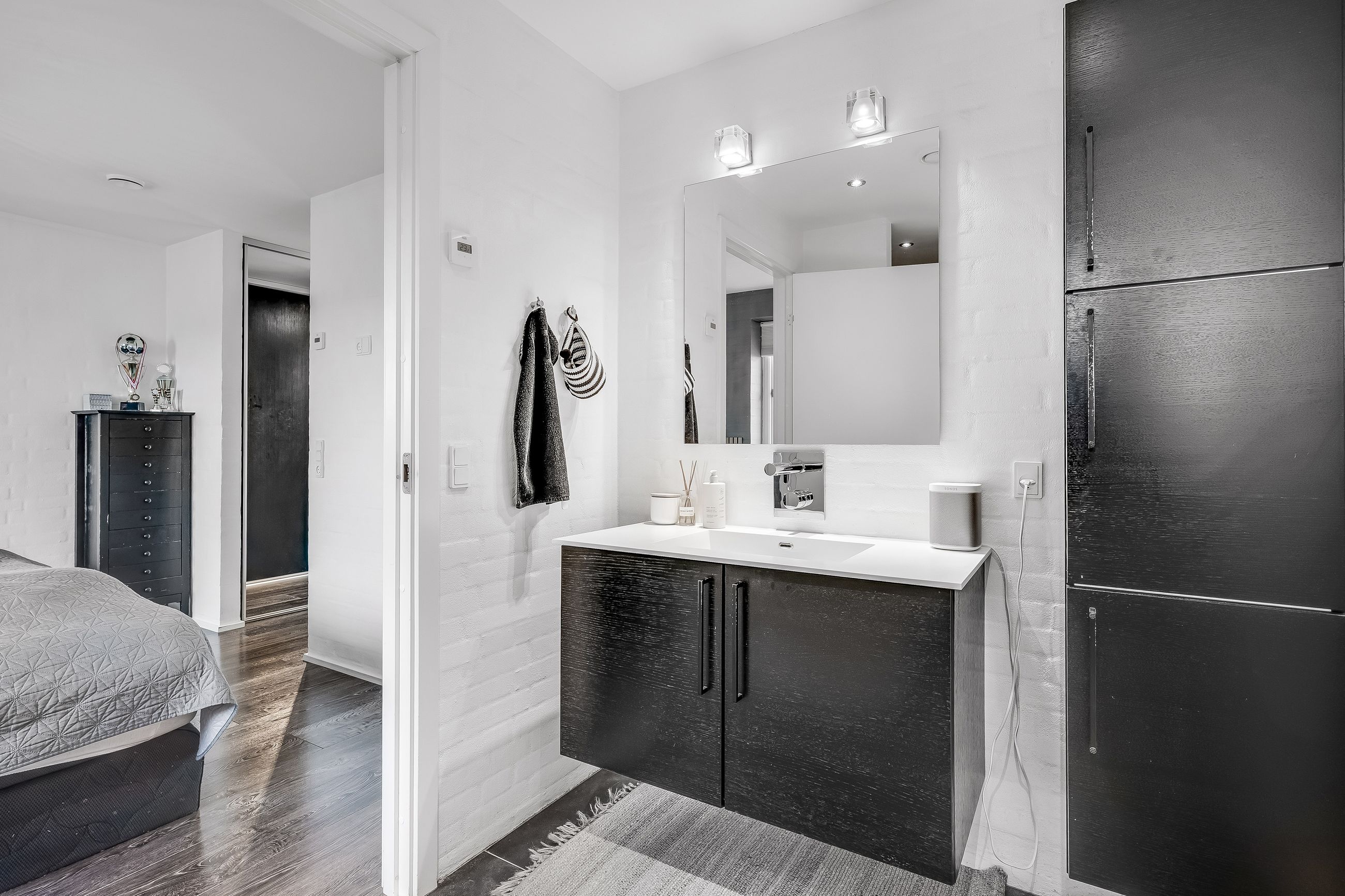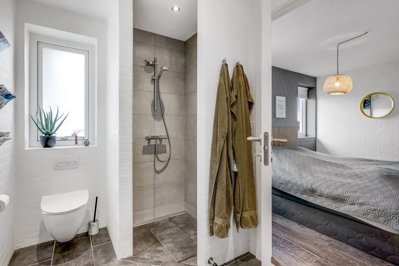 Forældreafdelingen indeholder soveværelse, gennemgangs walk-in-closet samt eget badeværelse.