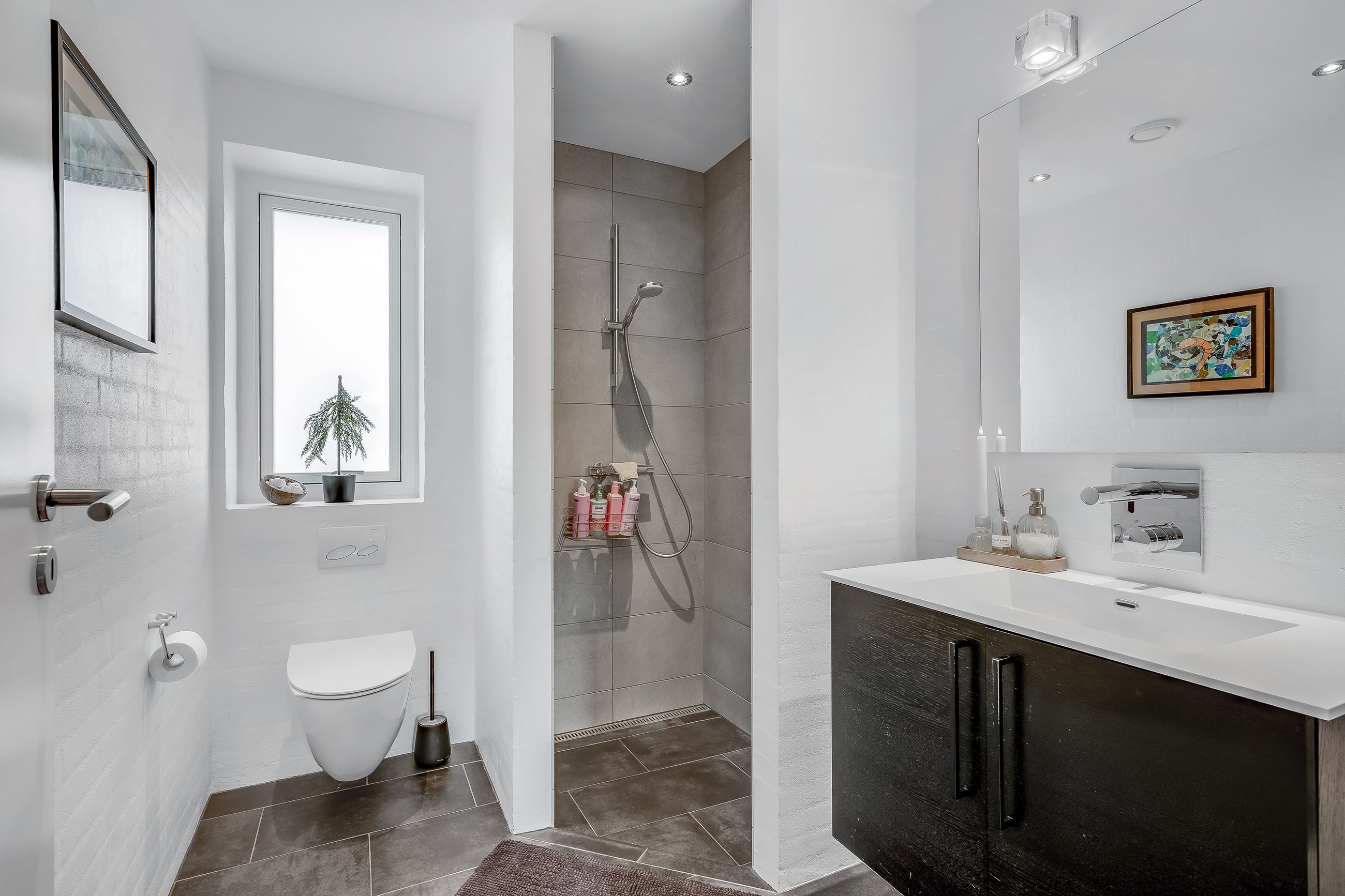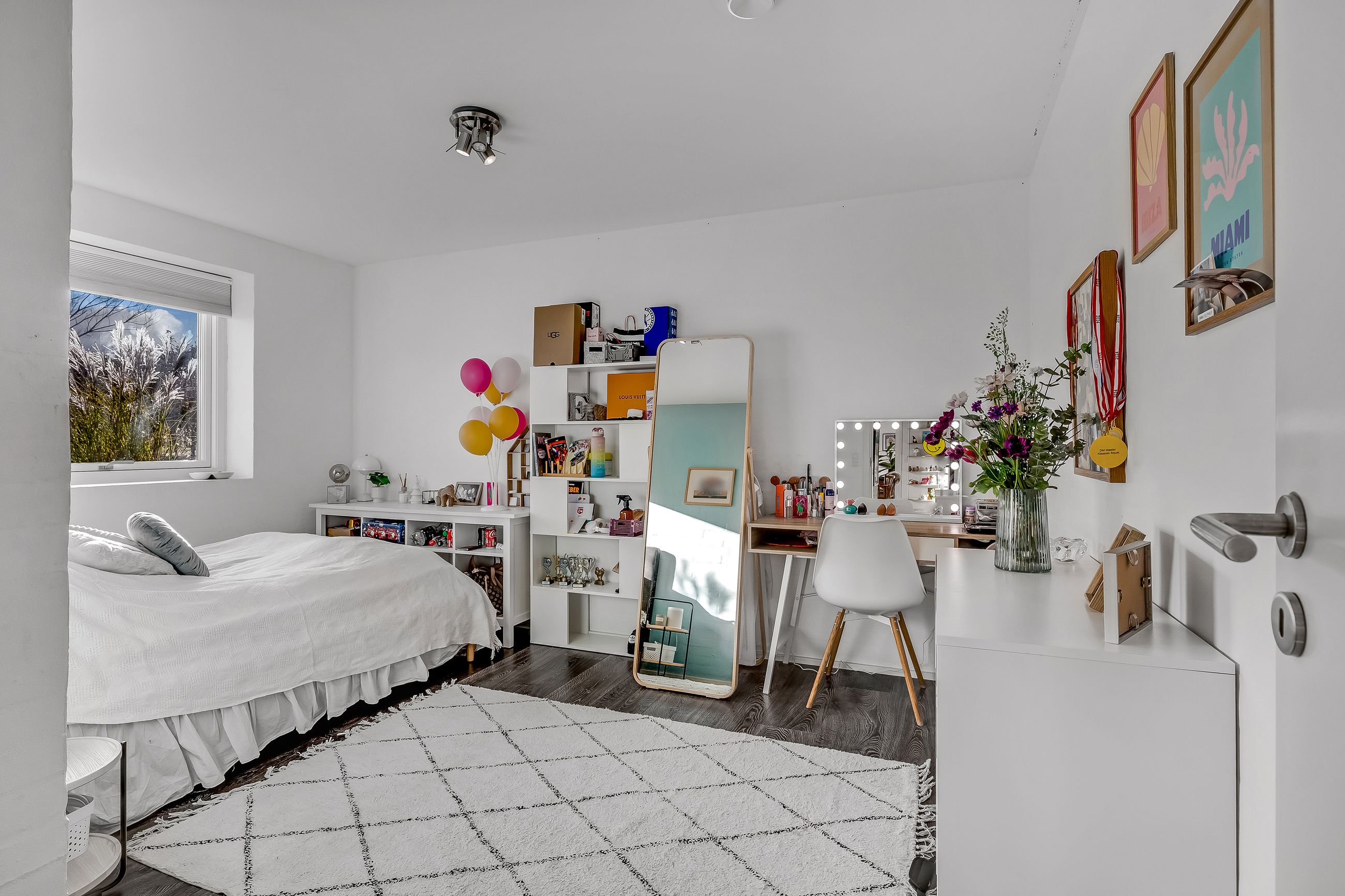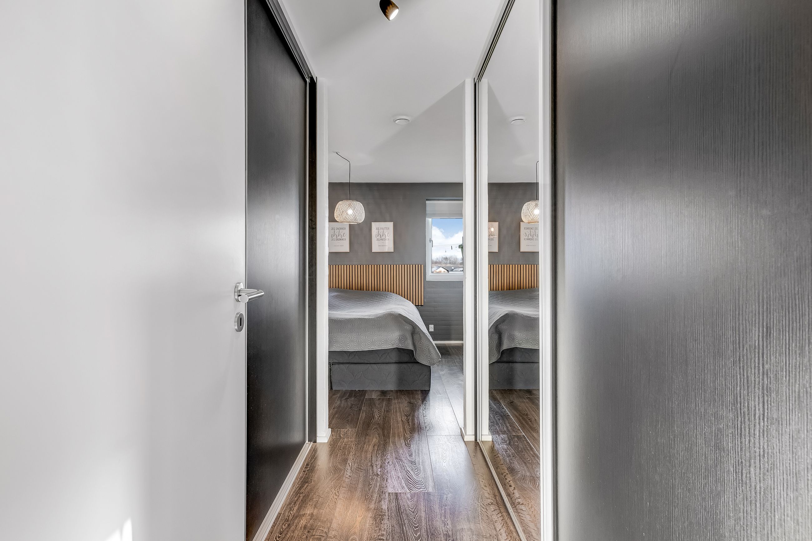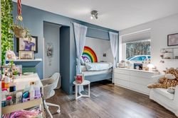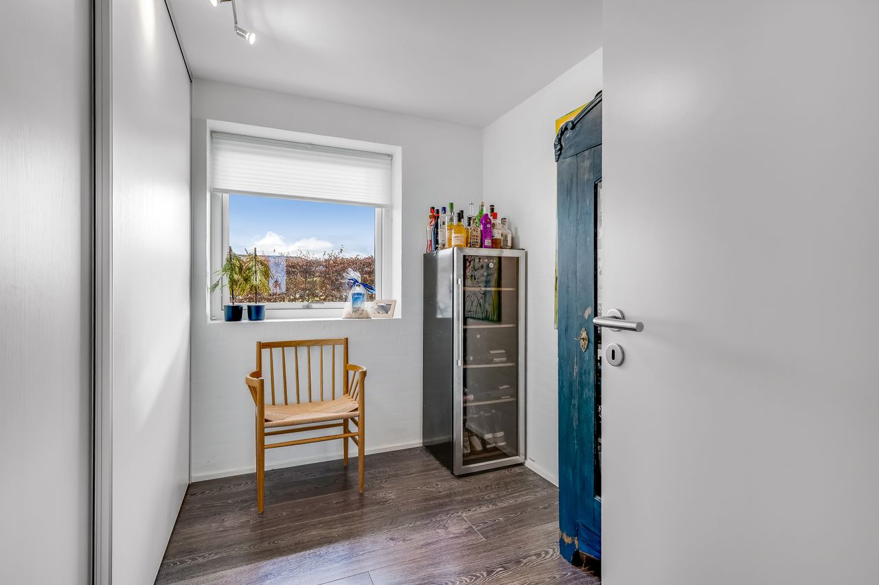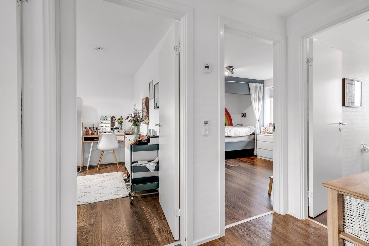 Børneafdelingen rummer en fordelingsgang med adgang til to værelser, kontor samt badeværelse – ideelt til både børn, hjemmearbejde eller hobby.