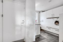 Boligen fremstår med en gennemtænkt planløsning, hvor hver kvadratmeter er udnyttet optimalt. Der bydes velkommen i entré med direkte forbindelse til bryggers – en praktisk løsning i hverdagen for den aktive familie.