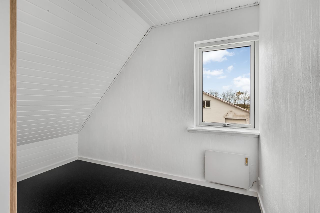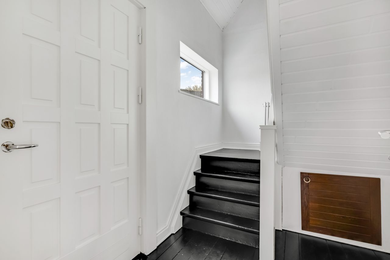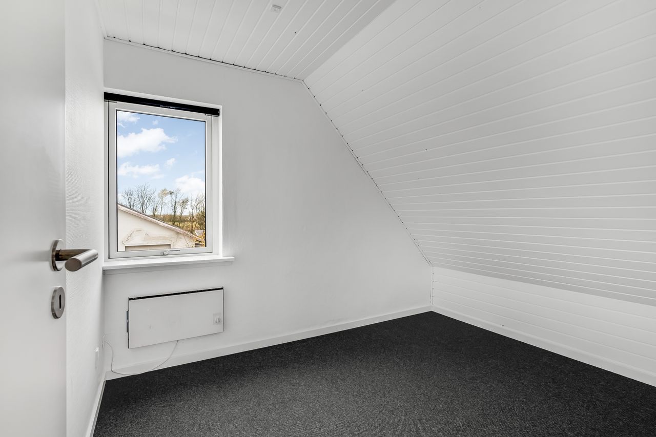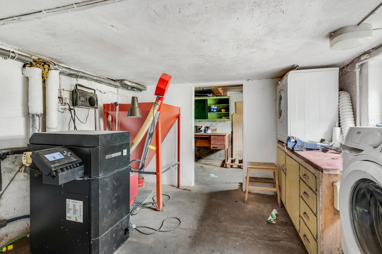 1. sal fungerer som værelsesafdeling med hele tre gode værelser samt et toilet, hvilket betyder, at boligen kan danne rammerne i hverdagen for både enlige, par eller små familier. Boligen har desuden en god kælder, hvor bryggers/fyrrum/værksted på praktisk vis er adskilt fra boligdelen.