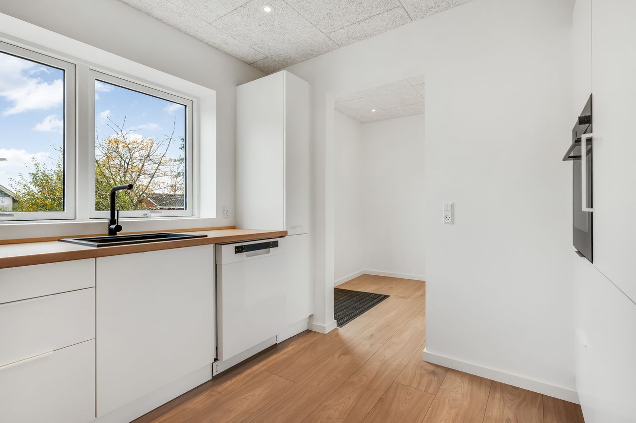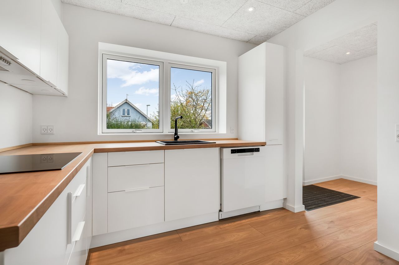 Her har du chancen for at blive den nye ejer af en bolig, som har gennemgået markante forbedringer med bl.a. nyt køkken, bad, gulve, troldtektlofter, vinduer med 3-lagsglas, efterisolering - ja, generelt en gennemgribende moderniseret stueetage med lækre, lyse nuancer og masser af plads. Dette er "fællesskabsetagen", hvor der er god plads til hyggeligt samvær både i køkkenet og den meget rummelige stue.