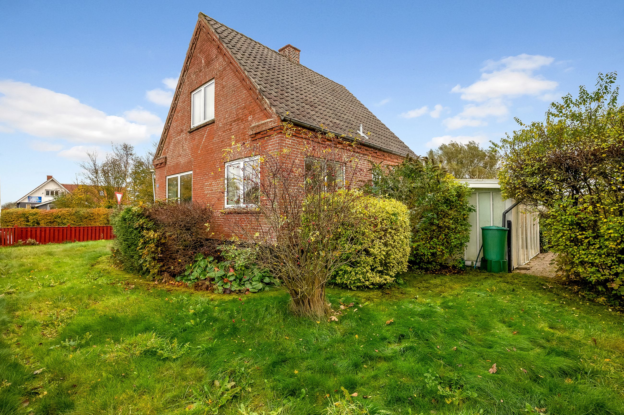 Den i alt 550 m2 ejendom består udover boligbygningen også af en udestue, en garage og herudover gode parkeringsforhold i indkørslen samt en mindre, overskuelig have. Ejendommen er beliggende små 10 minutters kørsel fra Holstebro og har desuden endnu kortere afstand til mindre byer med indkøbsmuligheder som Hjerm og Borbjerg - herudover få minutters kørsel til Holstebromotorvejen.