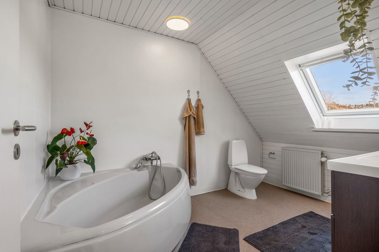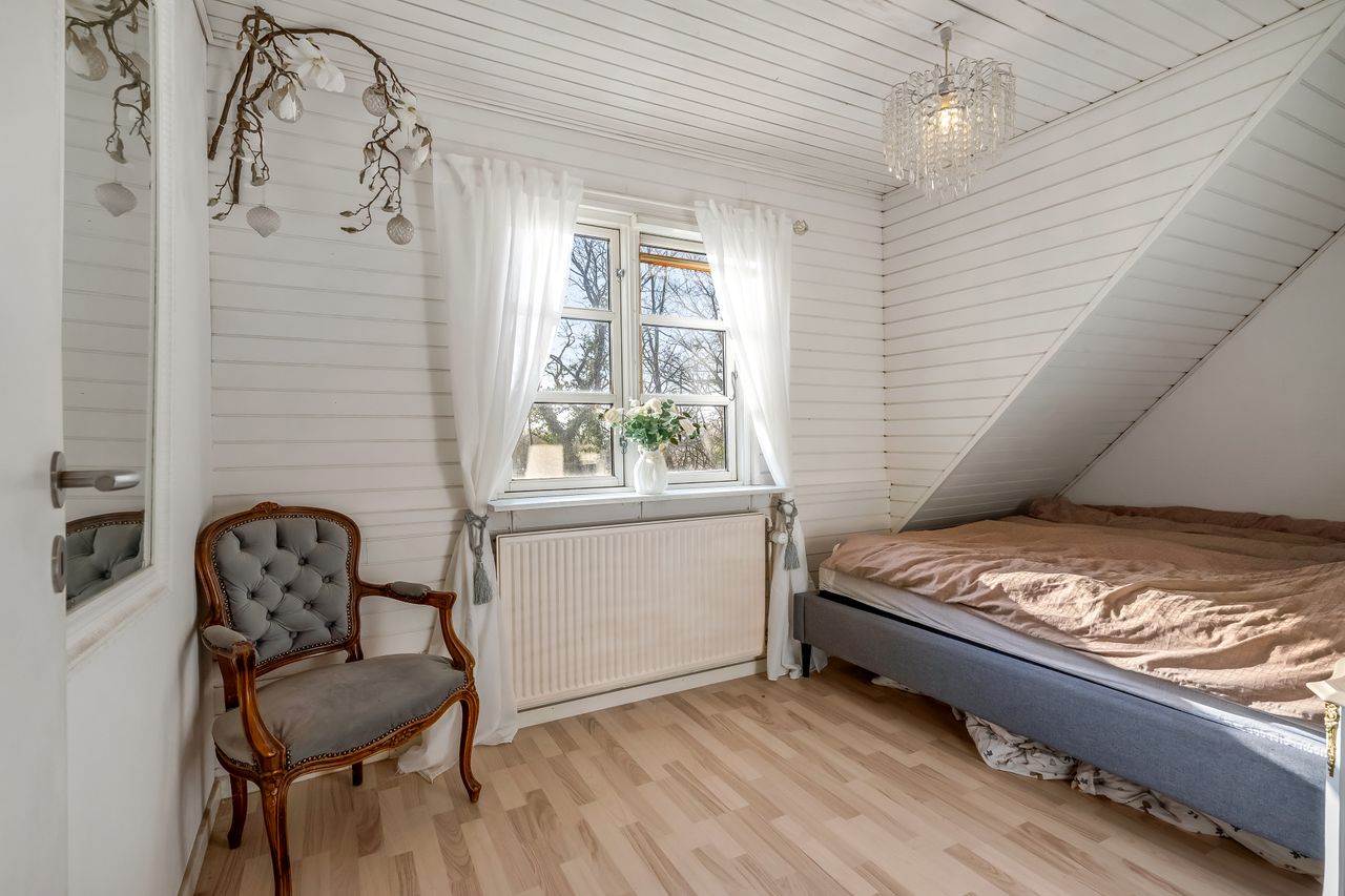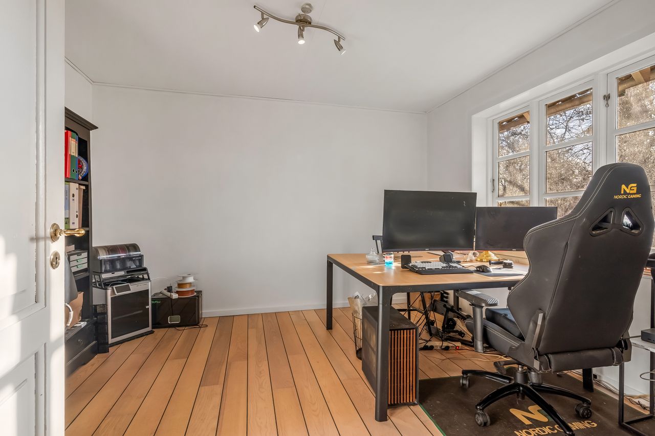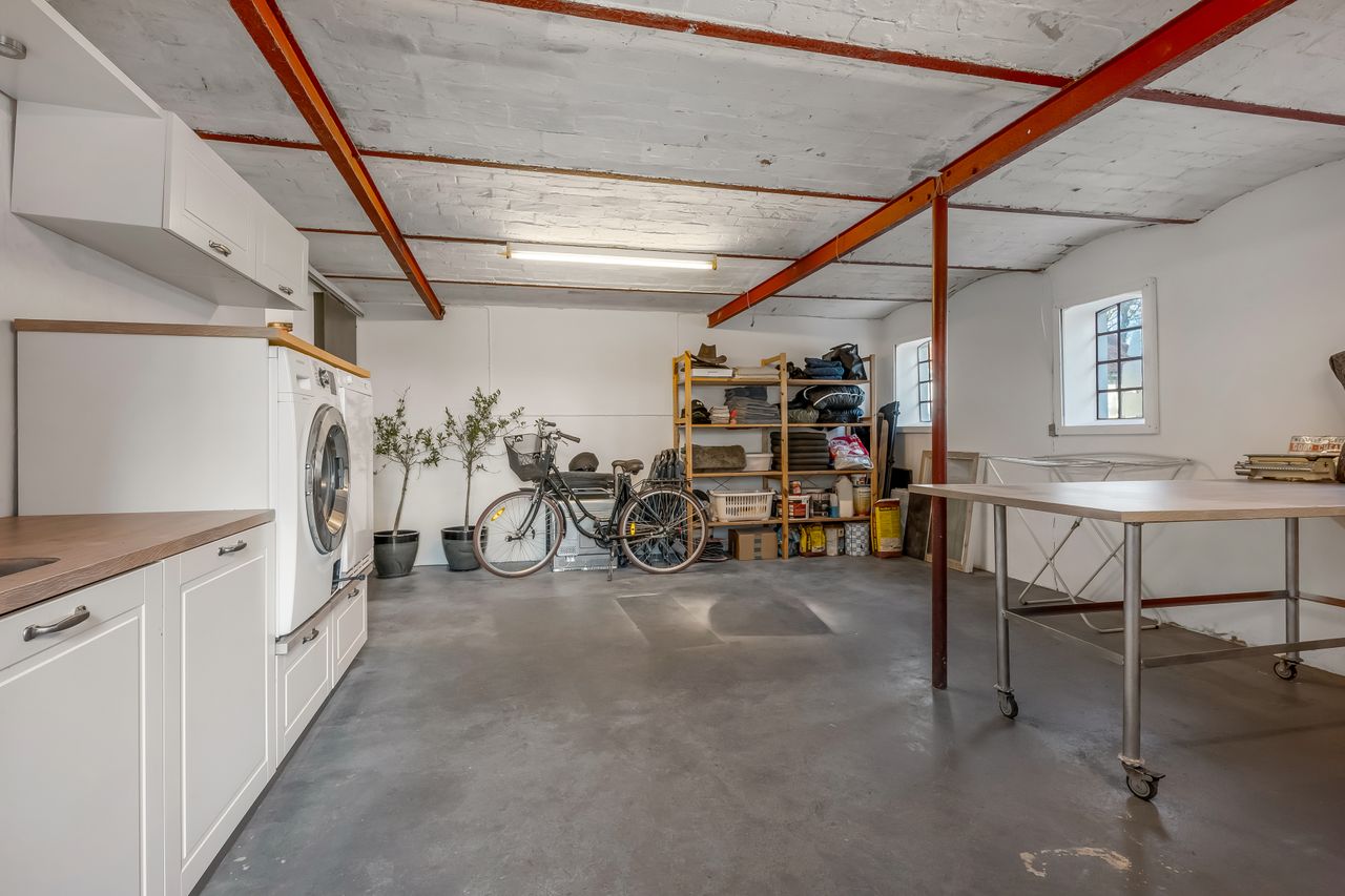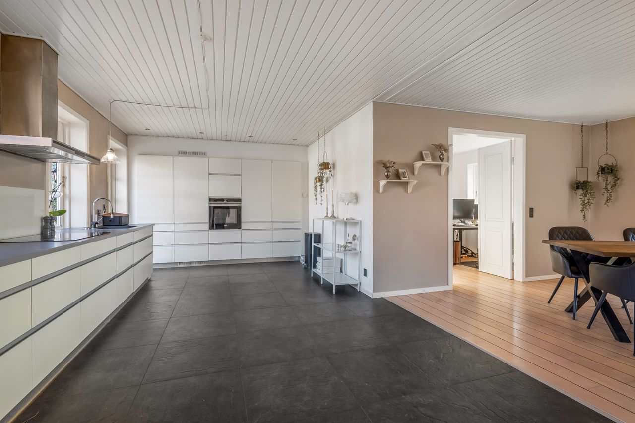 Stuehuset er i stueplan indrettet med entré, badeværelse og et værelse. Køkkenet fremstår lyst og tidløst og ligger i åben forbindelse med alrum og stue, hvilket skaber et naturligt samlingspunkt i boligen. Her er gode indretningsmuligheder samt et behageligt lysindfald. Fra stuen er der direkte udgang til haven og en stor terrasse, som giver fine rammer for udelivet.