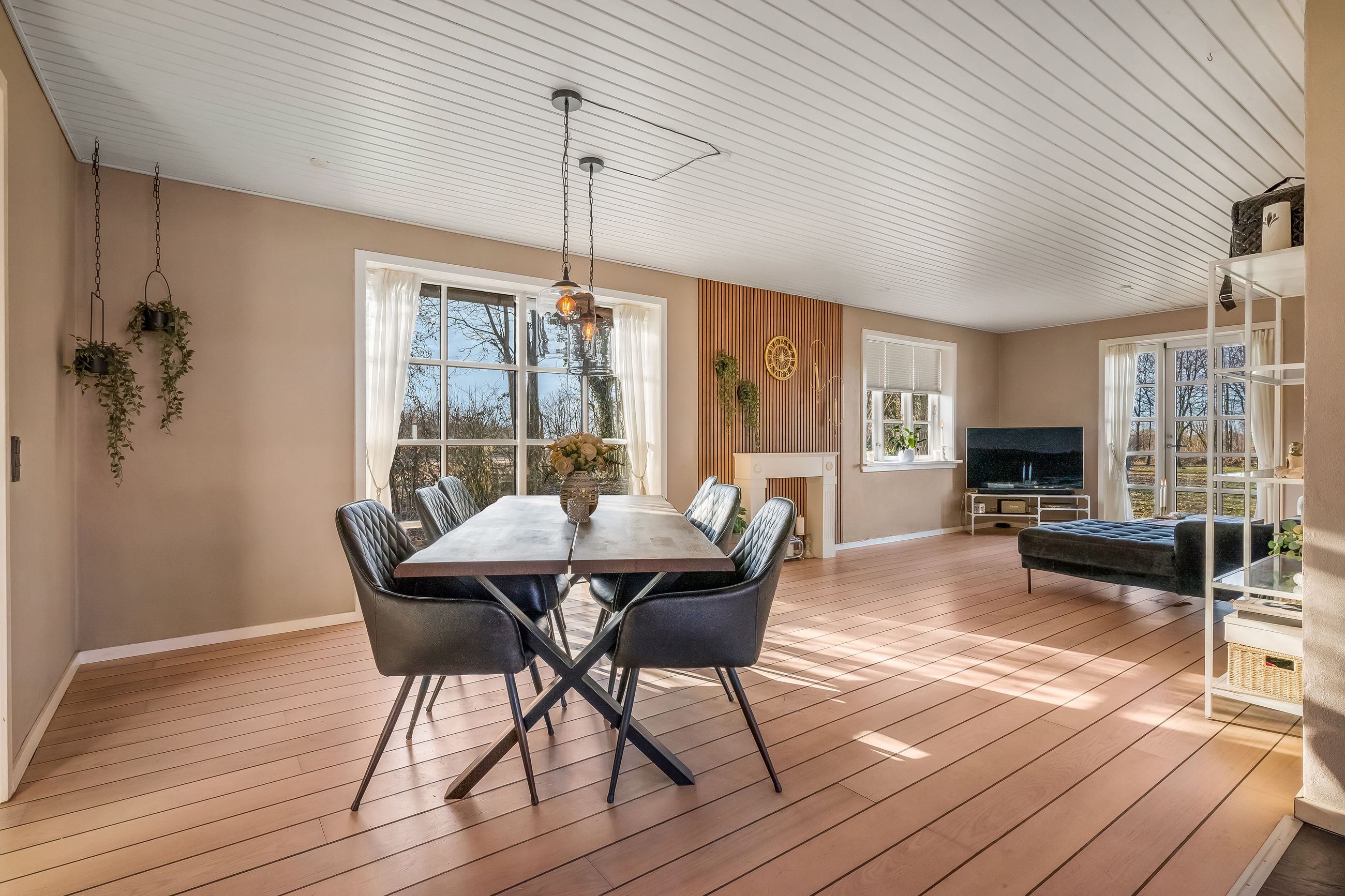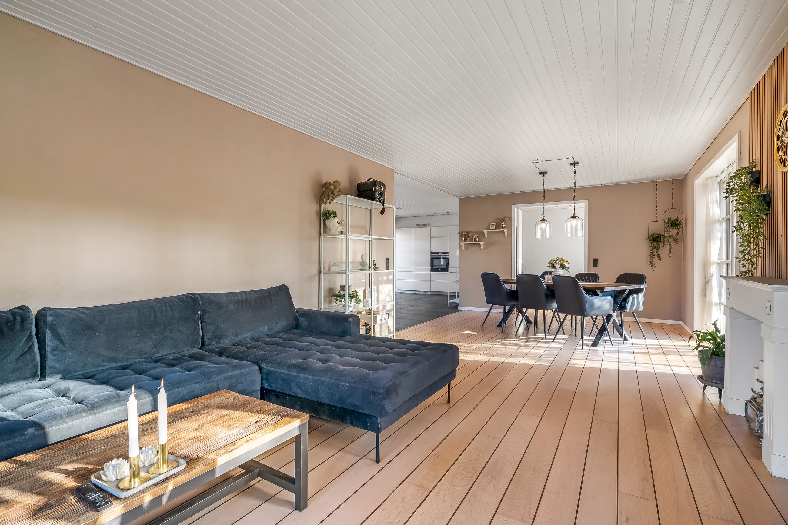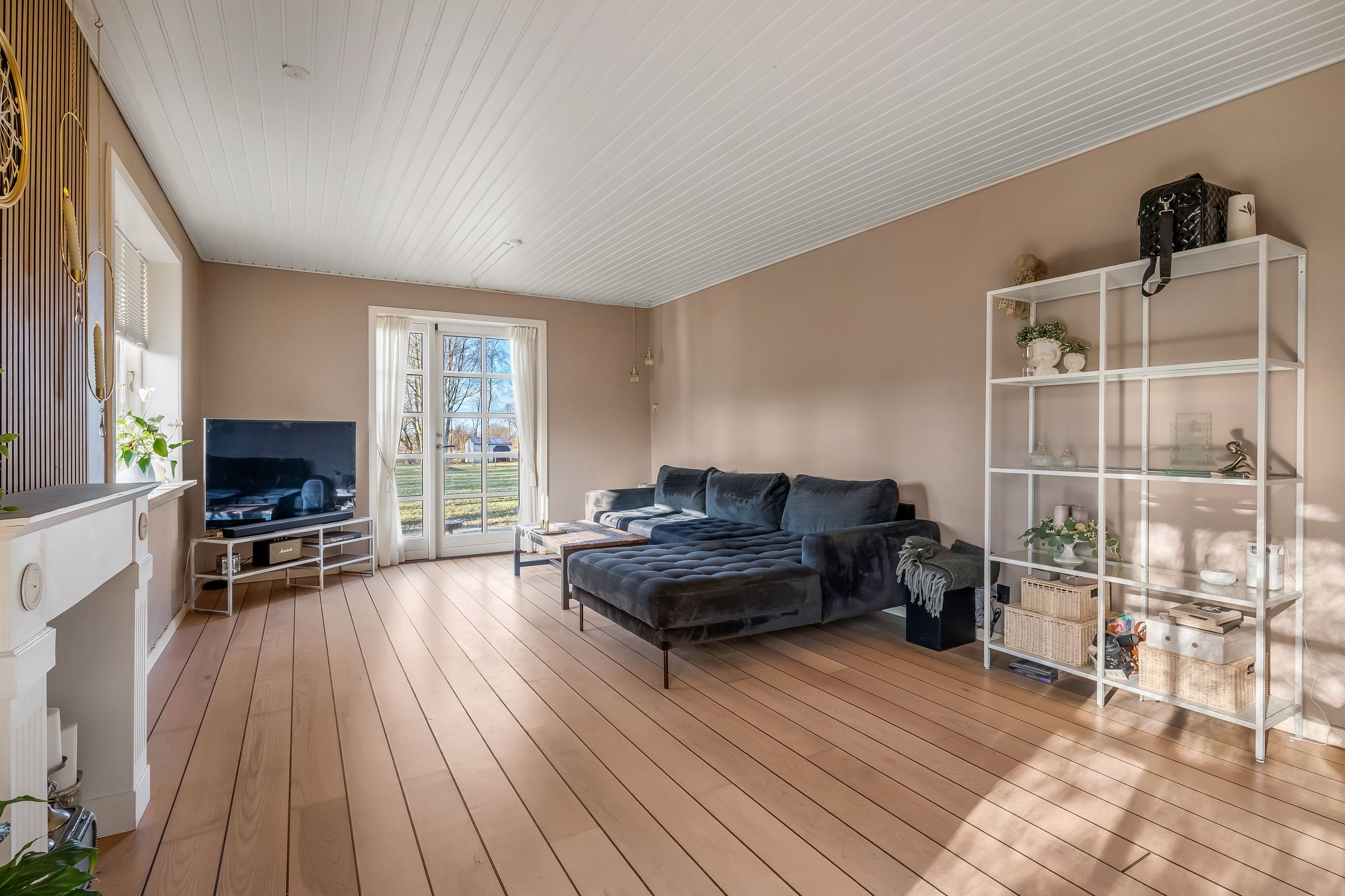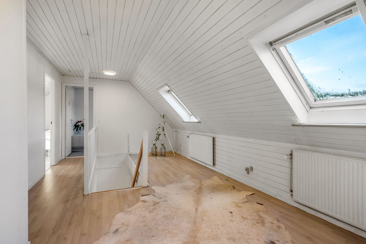 Stuehuset er i stueplan indrettet med entré, badeværelse og et værelse. Køkkenet fremstår lyst og tidløst og ligger i åben forbindelse med alrum og stue, hvilket skaber et naturligt samlingspunkt i boligen. Her er gode indretningsmuligheder samt et behageligt lysindfald. Fra stuen er der direkte udgang til haven og en stor terrasse, som giver fine rammer for udelivet.