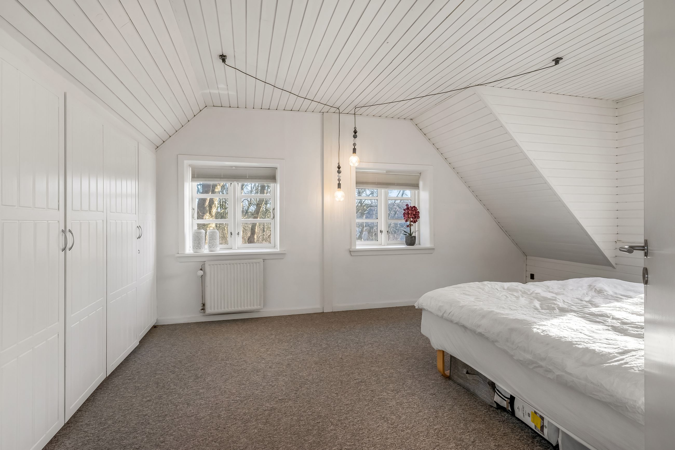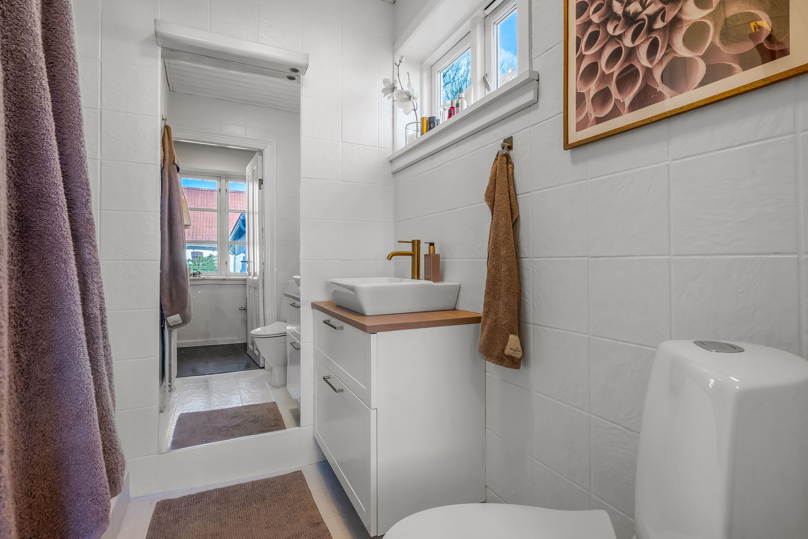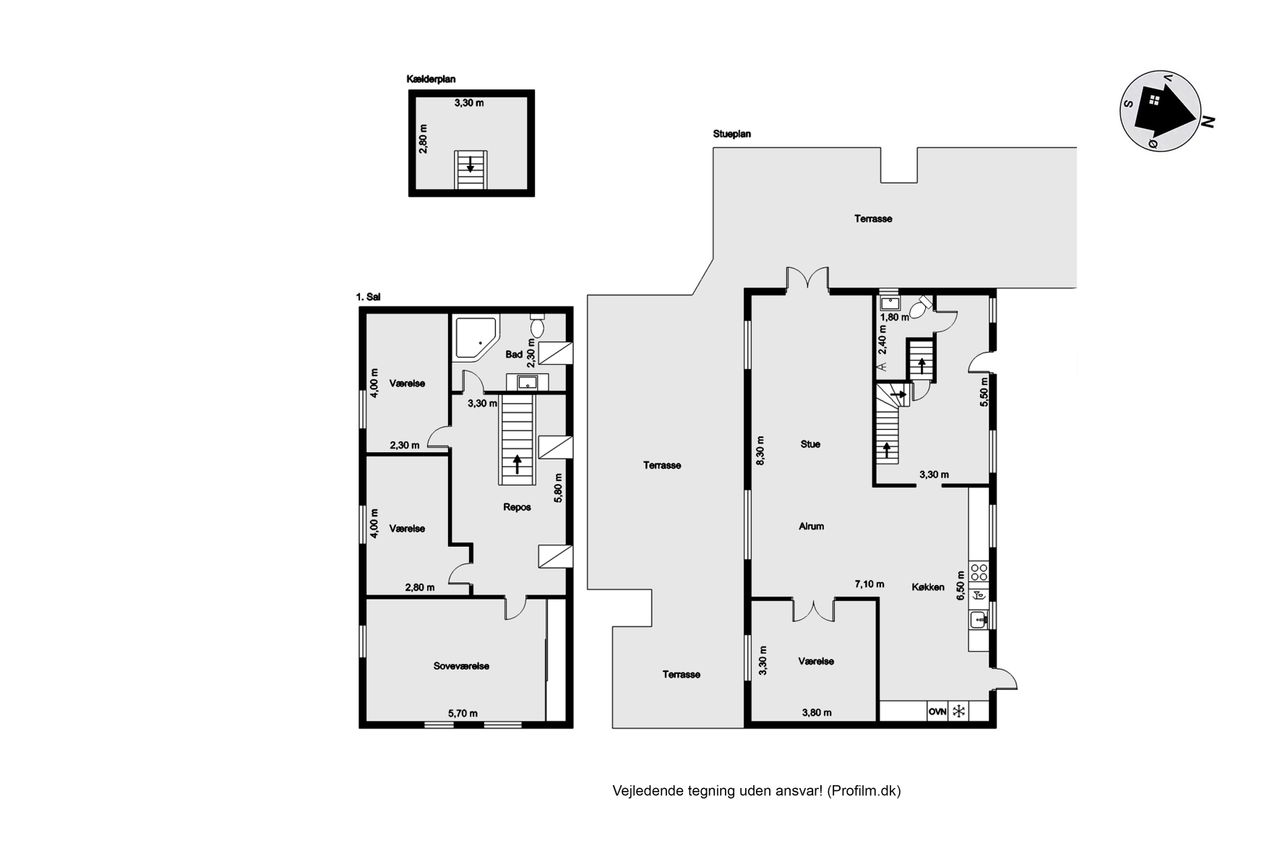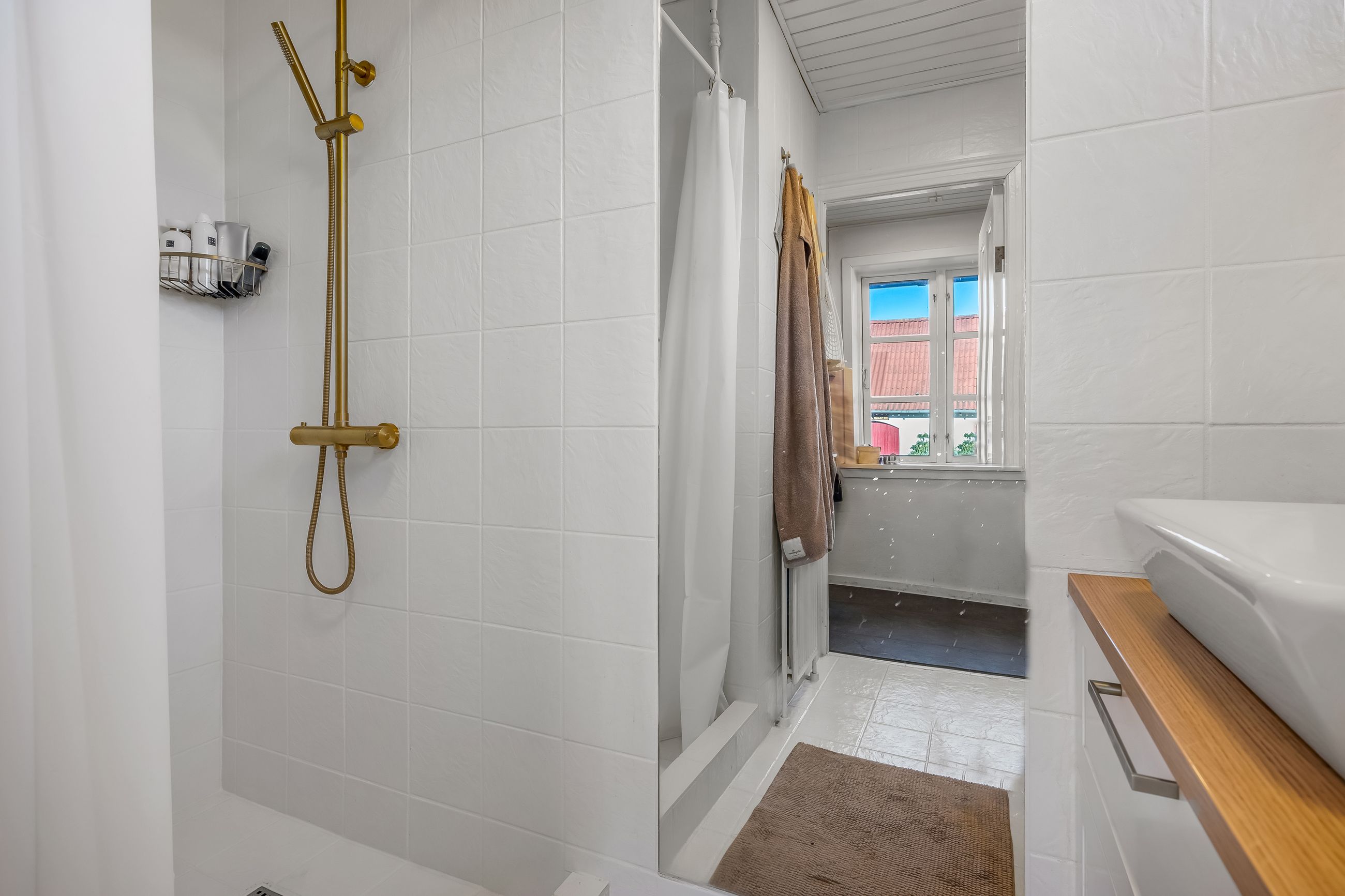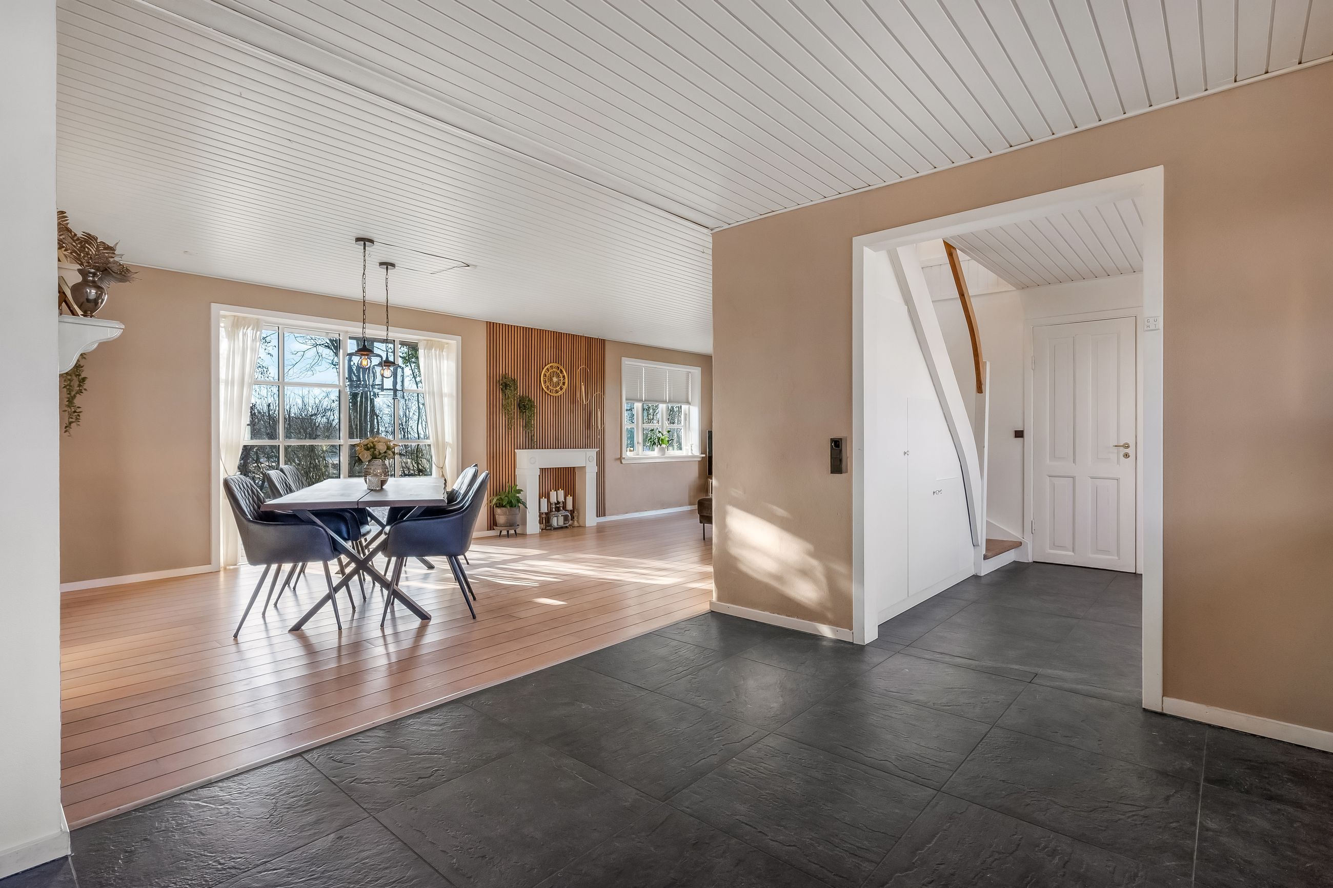 Stuehuset er i stueplan indrettet med entré, badeværelse og et værelse. Køkkenet fremstår lyst og tidløst og ligger i åben forbindelse med alrum og stue, hvilket skaber et naturligt samlingspunkt i boligen. Her er gode indretningsmuligheder samt et behageligt lysindfald. Fra stuen er der direkte udgang til haven og en stor terrasse, som giver fine rammer for udelivet.