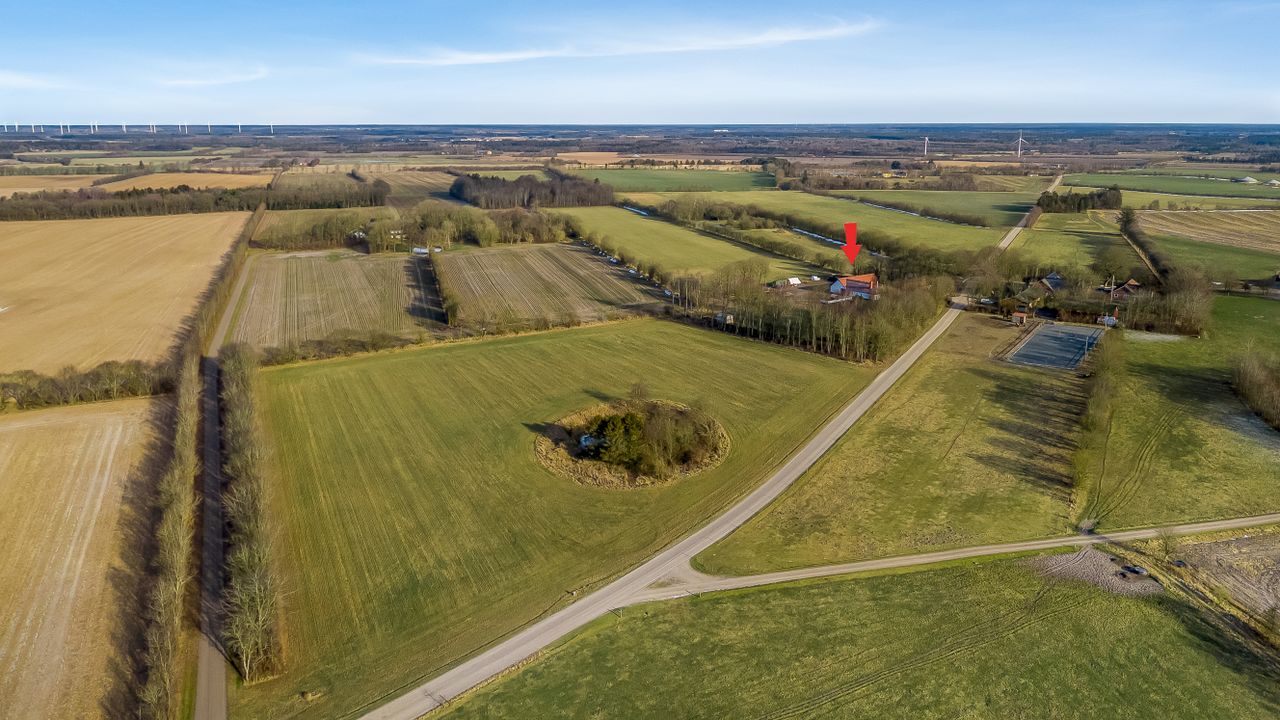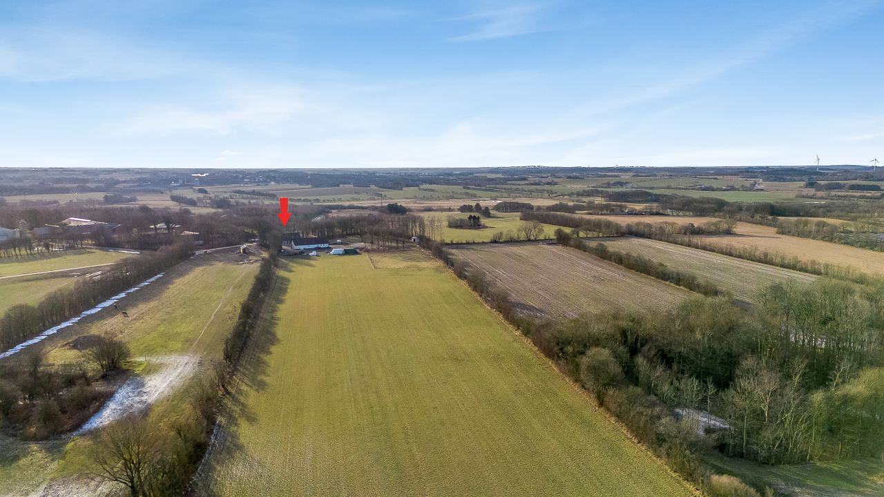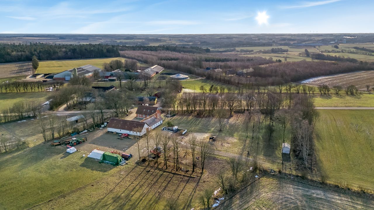 Ejendommen er beliggende i rolige og landlige omgivelser med kort afstand til Aulum, hvor der findes indkøbsmuligheder, skole, daginstitutioner og fritidsaktiviteter. Området kombinerer natur og åbne vidder med en praktisk hverdag, og der er samtidig overskuelig køreafstand til Herning og Holstebro.