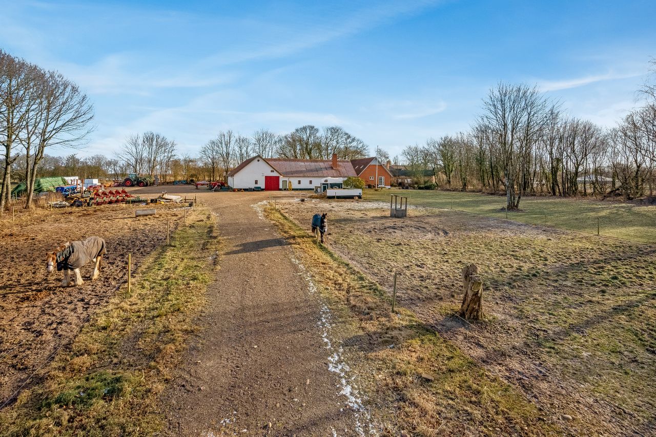 På Varhedevej 9 i Aulum udbydes denne hesteejendom med ca. 3,7 hektar jord, der giver gode muligheder for både dyrehold og pladskrævende fritidsinteresser. Ejendommen fremstår løbende moderniseret og rummer et indflytningsklart stuehus samt en række anvendelige udbygninger.